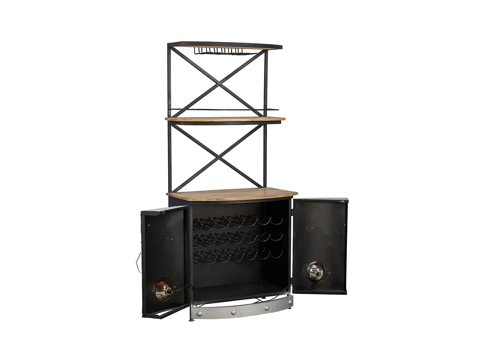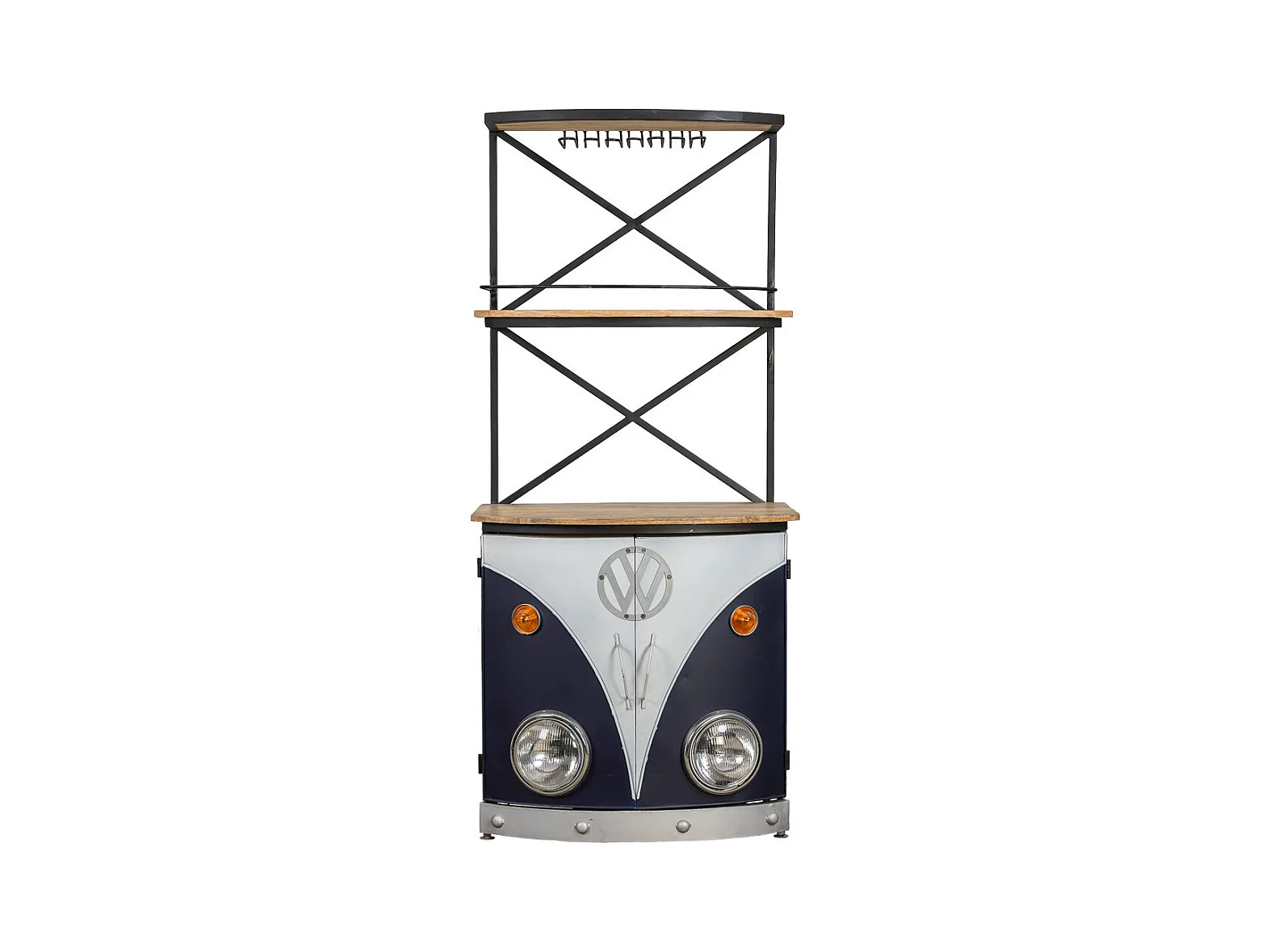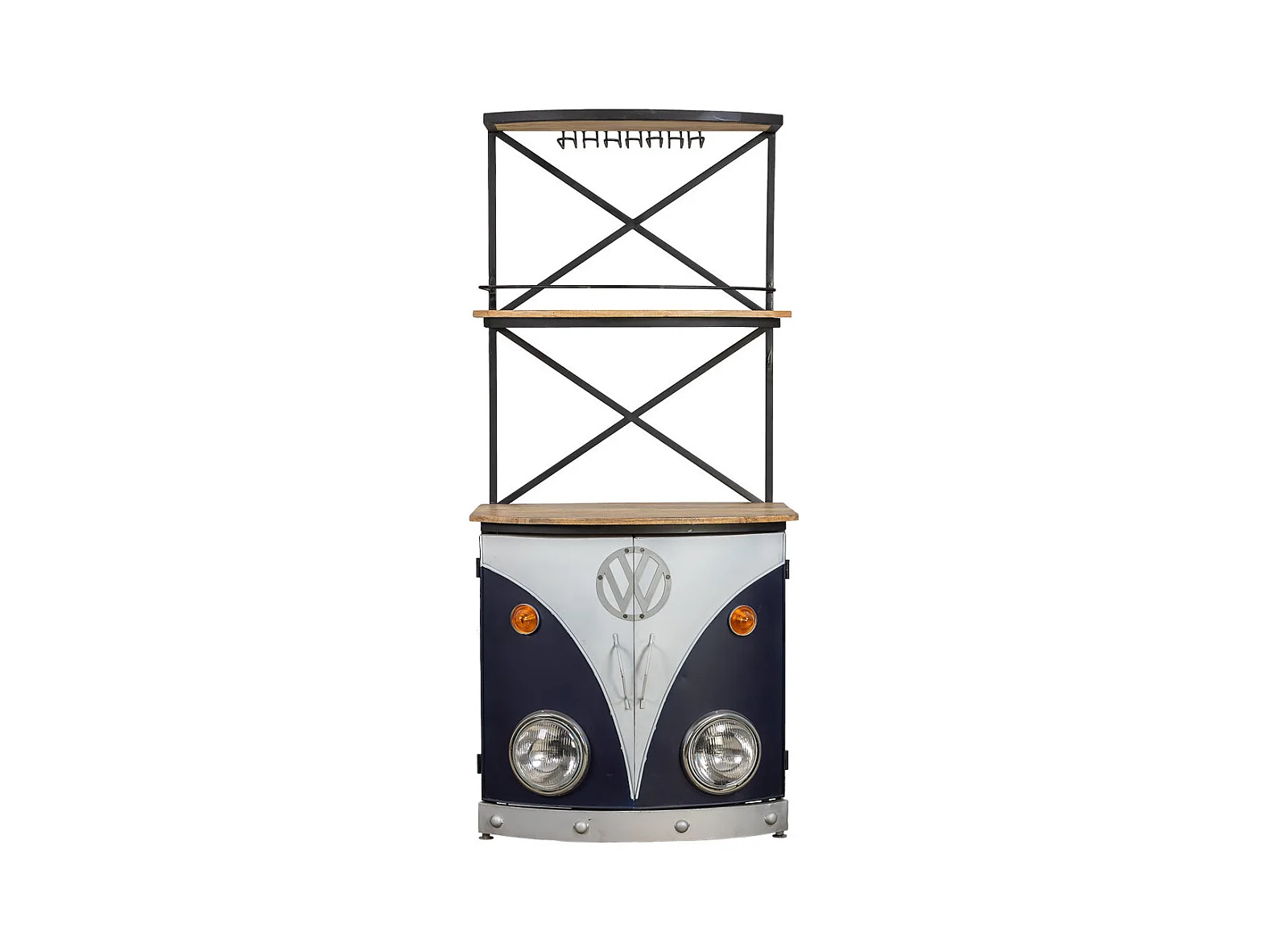 Van-Flaschenregal aus Holz und blauem Metall, 75 x 60 x 180 cm