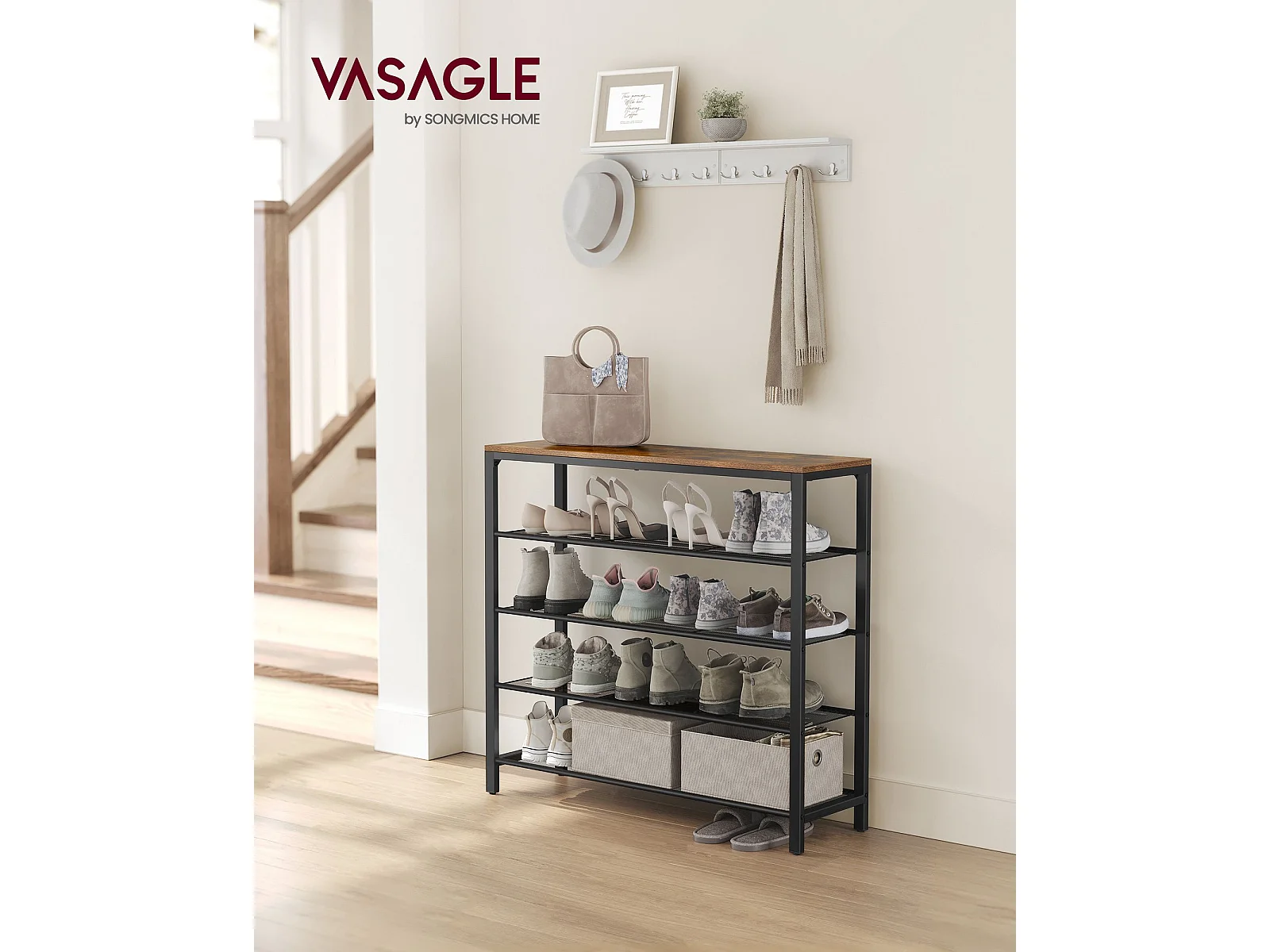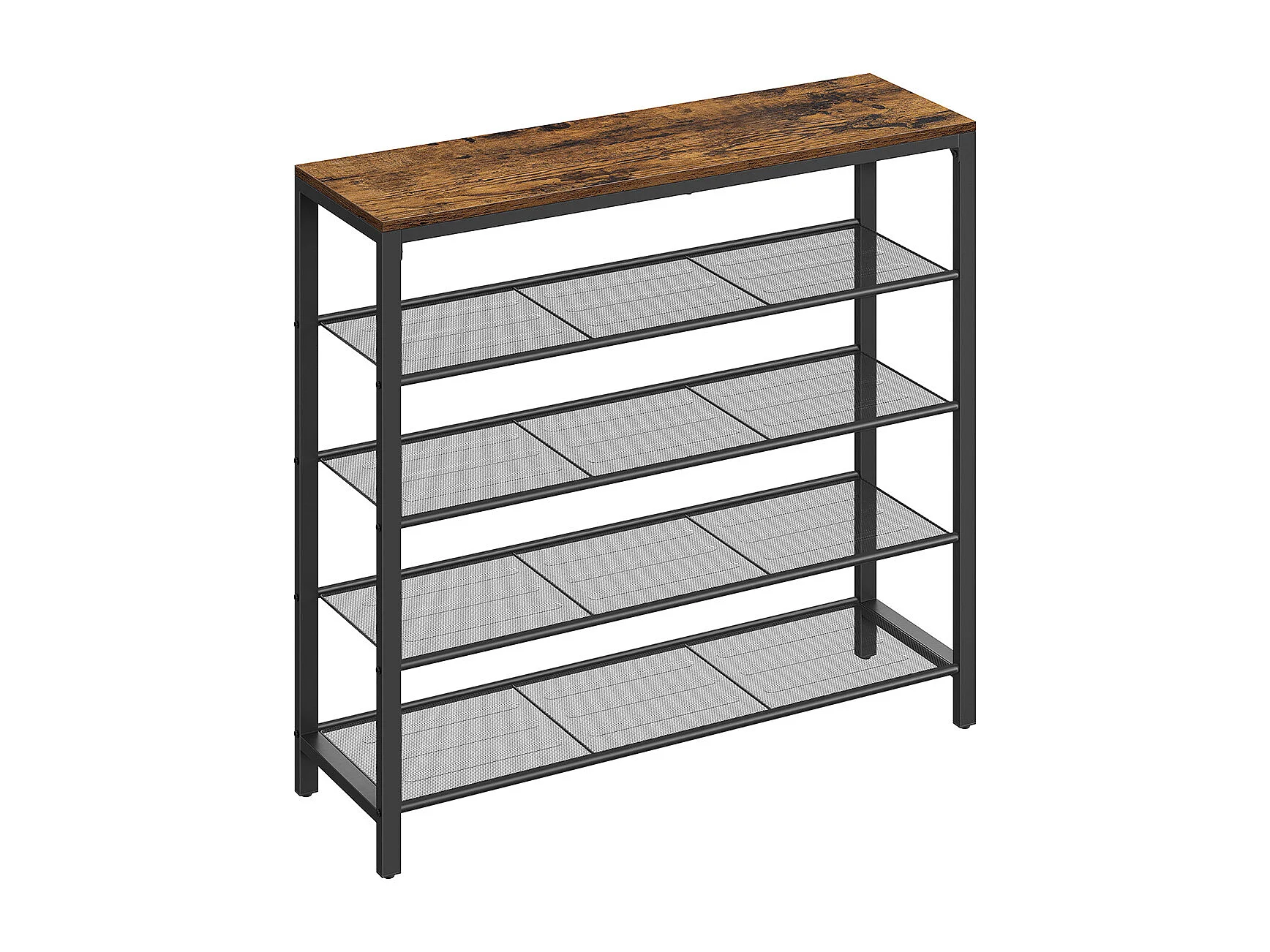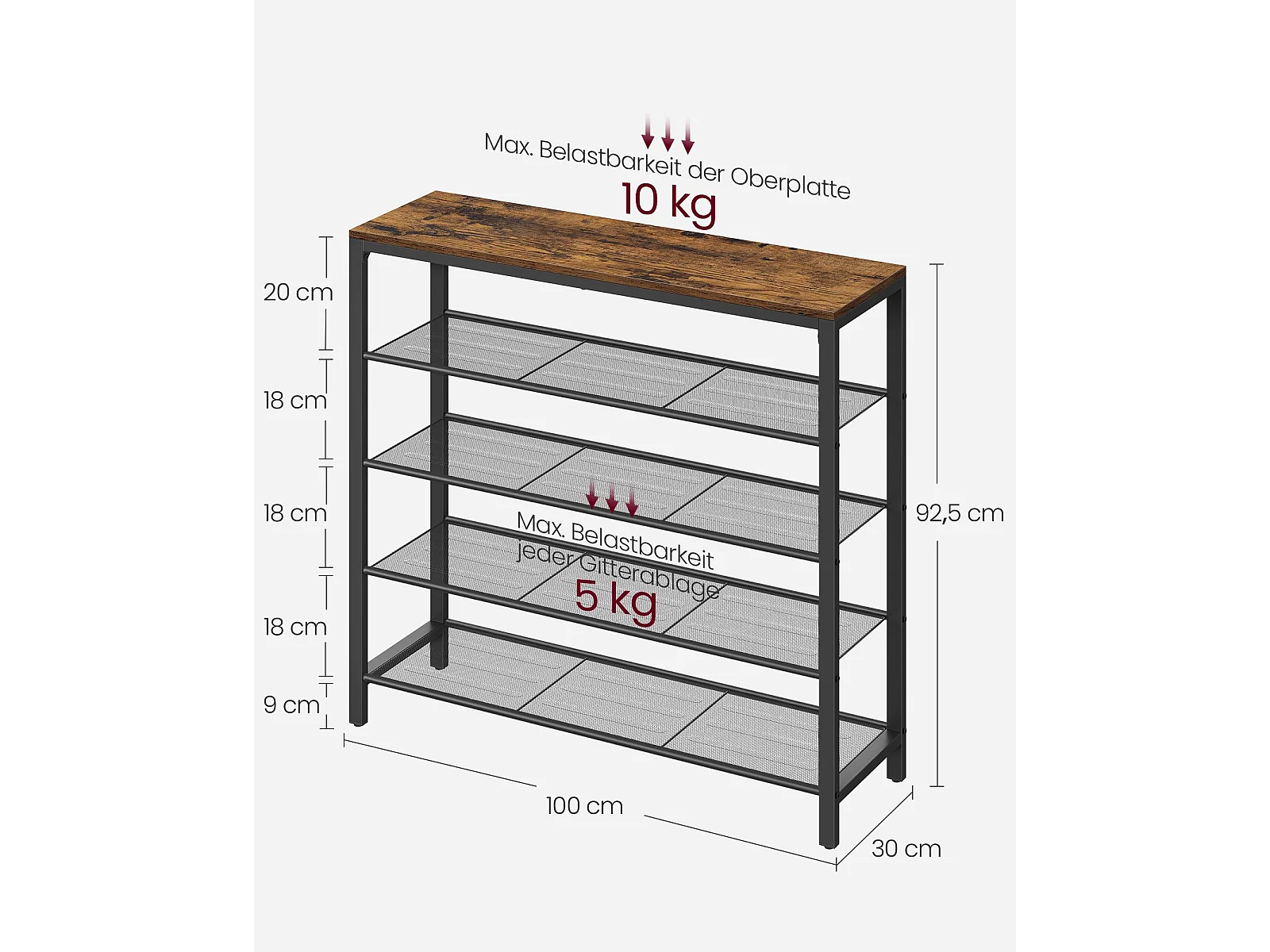 VASAGLE Schuhregal, Schuhaufbewahrungsorganisator mit 4 Mesh-Fächern und großer Fläche für Taschen, Schuhregal für Eingang, Flur, Schrank, Stahlrahmen,