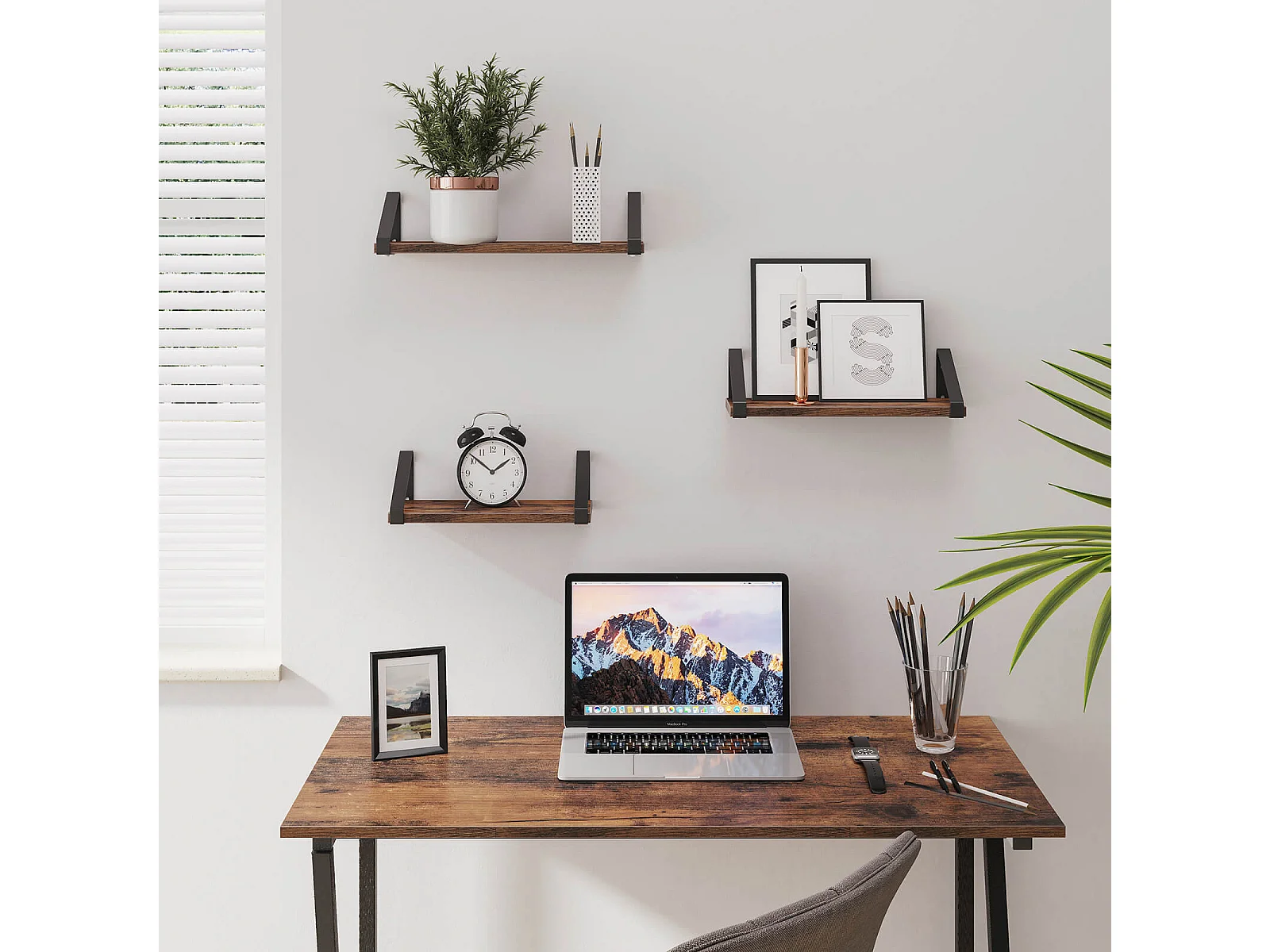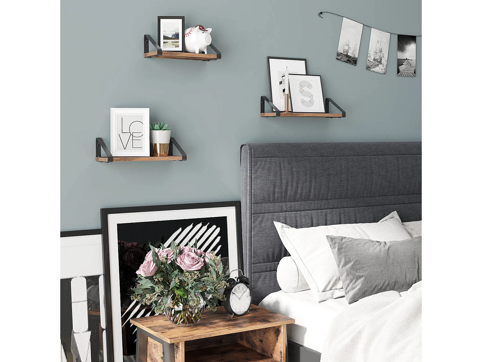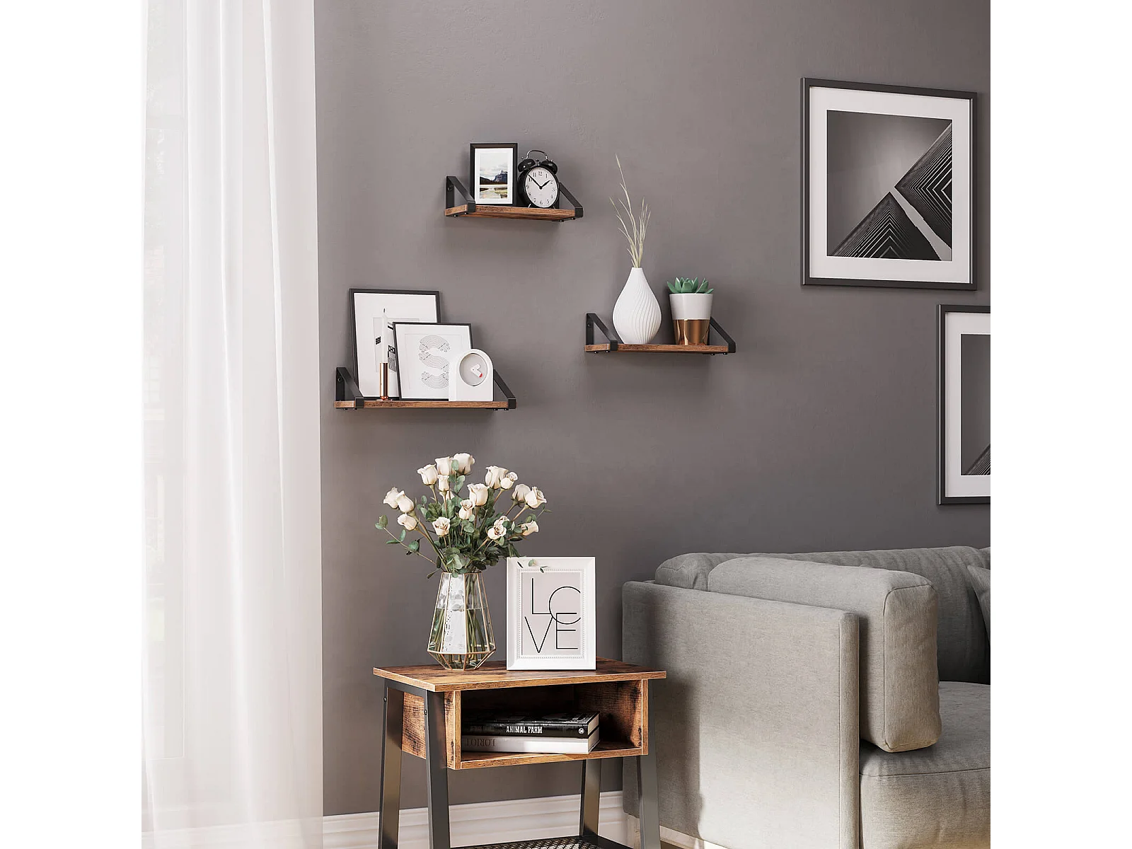 VASAGLE Wandregale, Industrielles Schweberegal zur Wandmontage, 3er Set, Stabiler Ständer für Wohnzimmer, Bad, Küche, Rustikal Braun LWS33BX