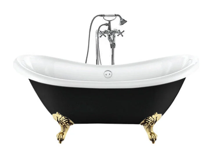Freistehende Badewanne mit Füßen DARLINGTON SCHWARZ Adlerfüße GOLD 175 cm