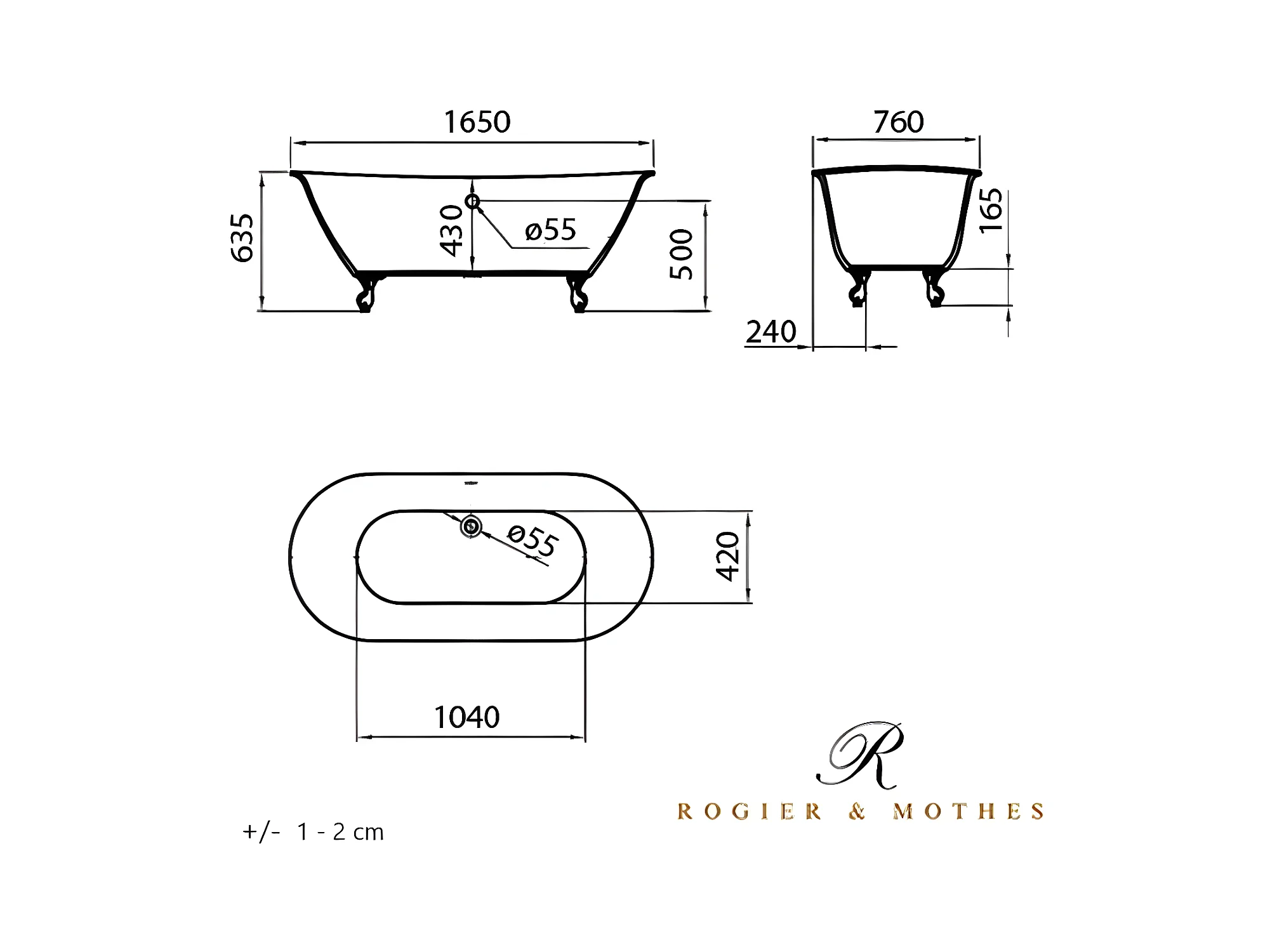 Freistehende Badewanne mit Füßen SURRY HILLS Löwenfüße CHROM 165 cm