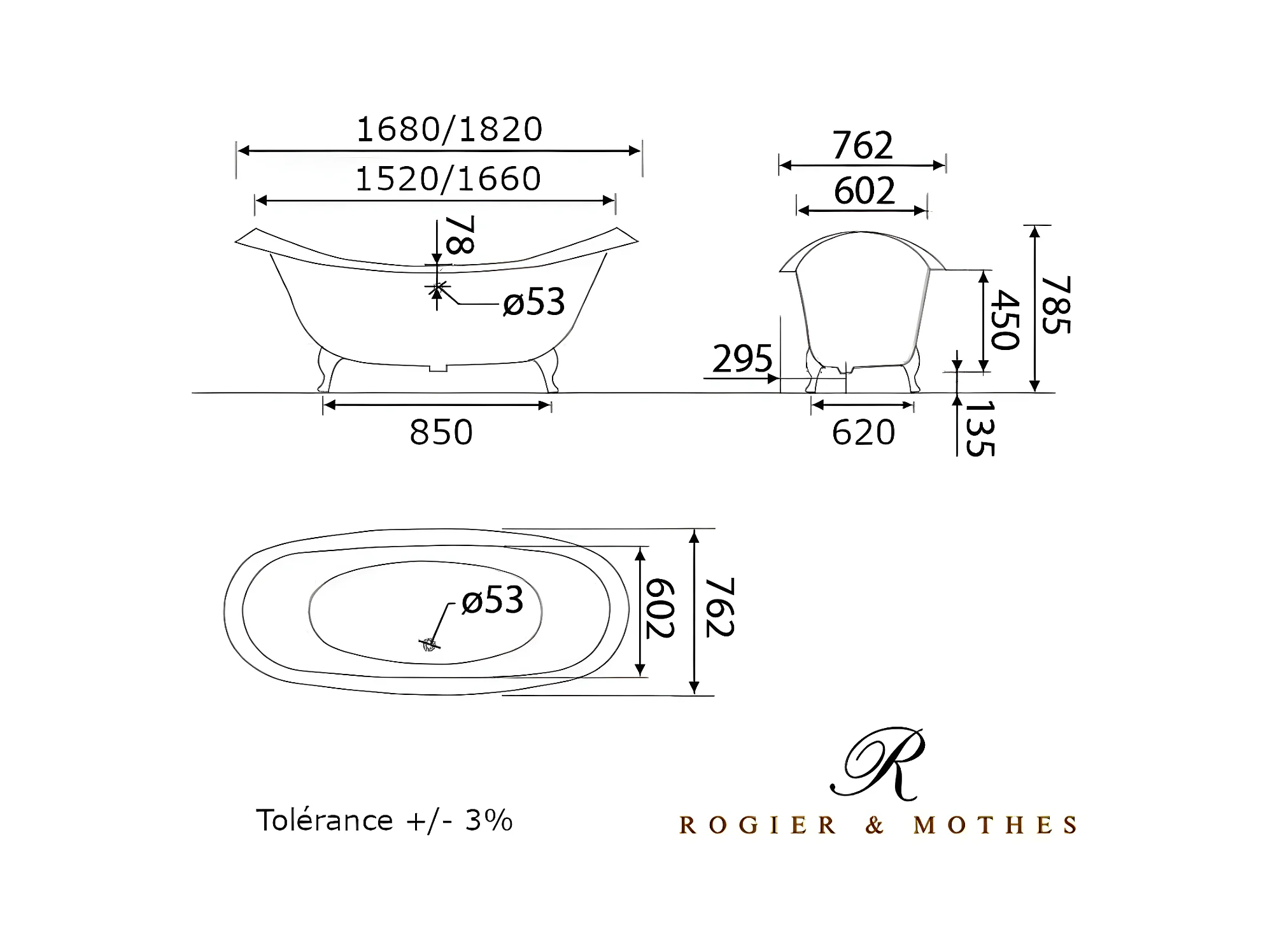Freistehende Gusseisen Badewanne KINGSTON schwarz Füße WEISS 182 cm