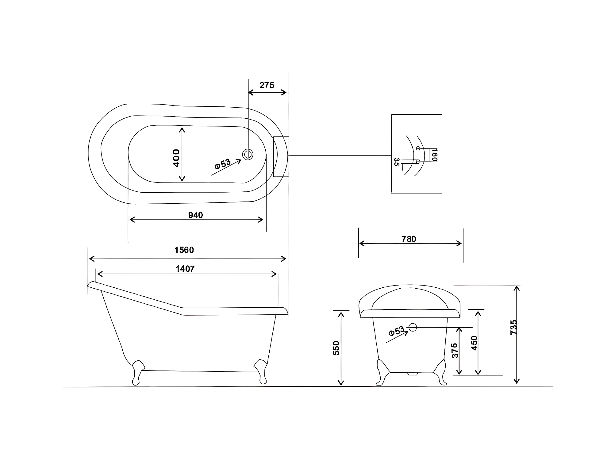 Freistehende Gusseisen Badewanne ASHFORD GOLD 156 cm