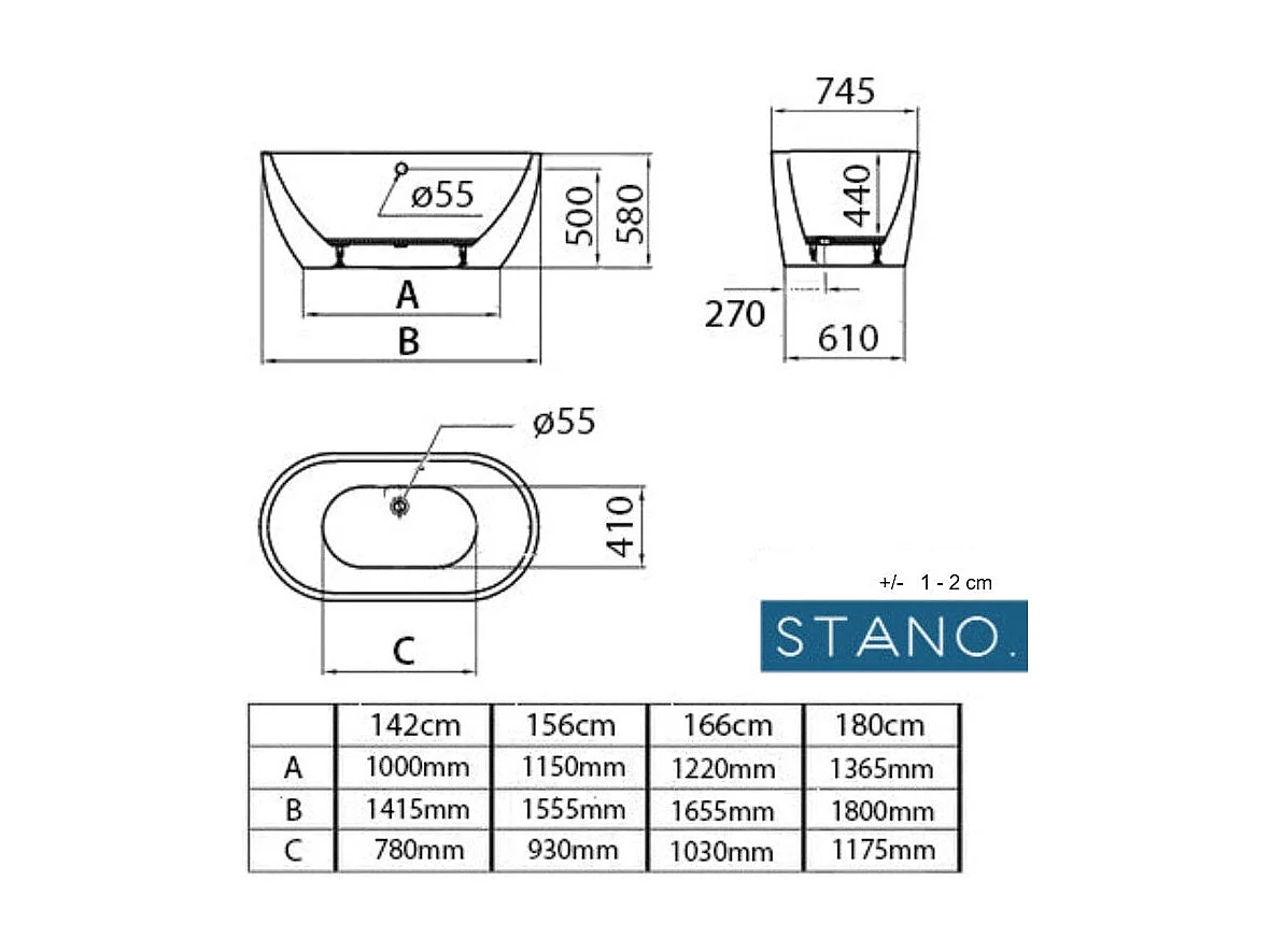 Freistehende Badewanne BOSTON 142 cm