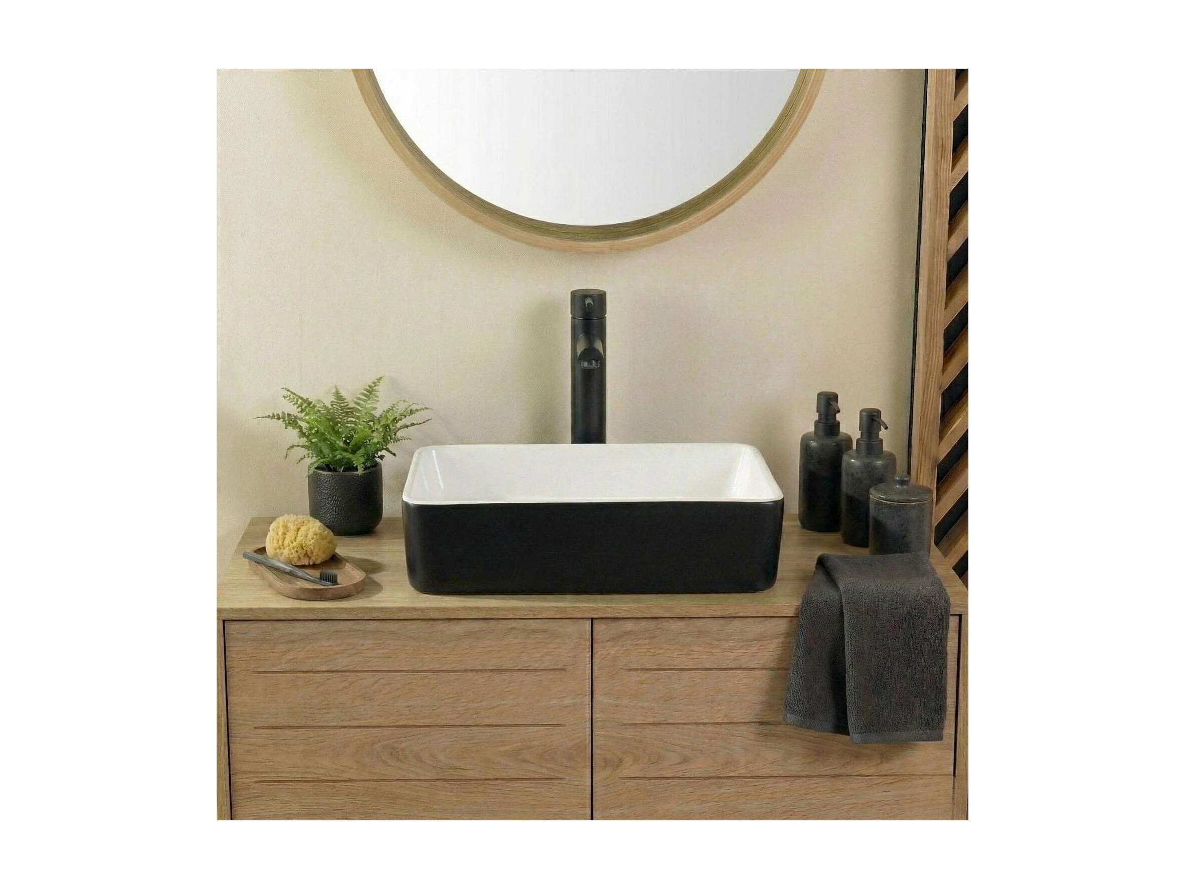 Rechteckiges Aufsatzwaschbecken aus zweifarbiger, schwarz-weißer Keramik, 47 x 36 cm, YDRA