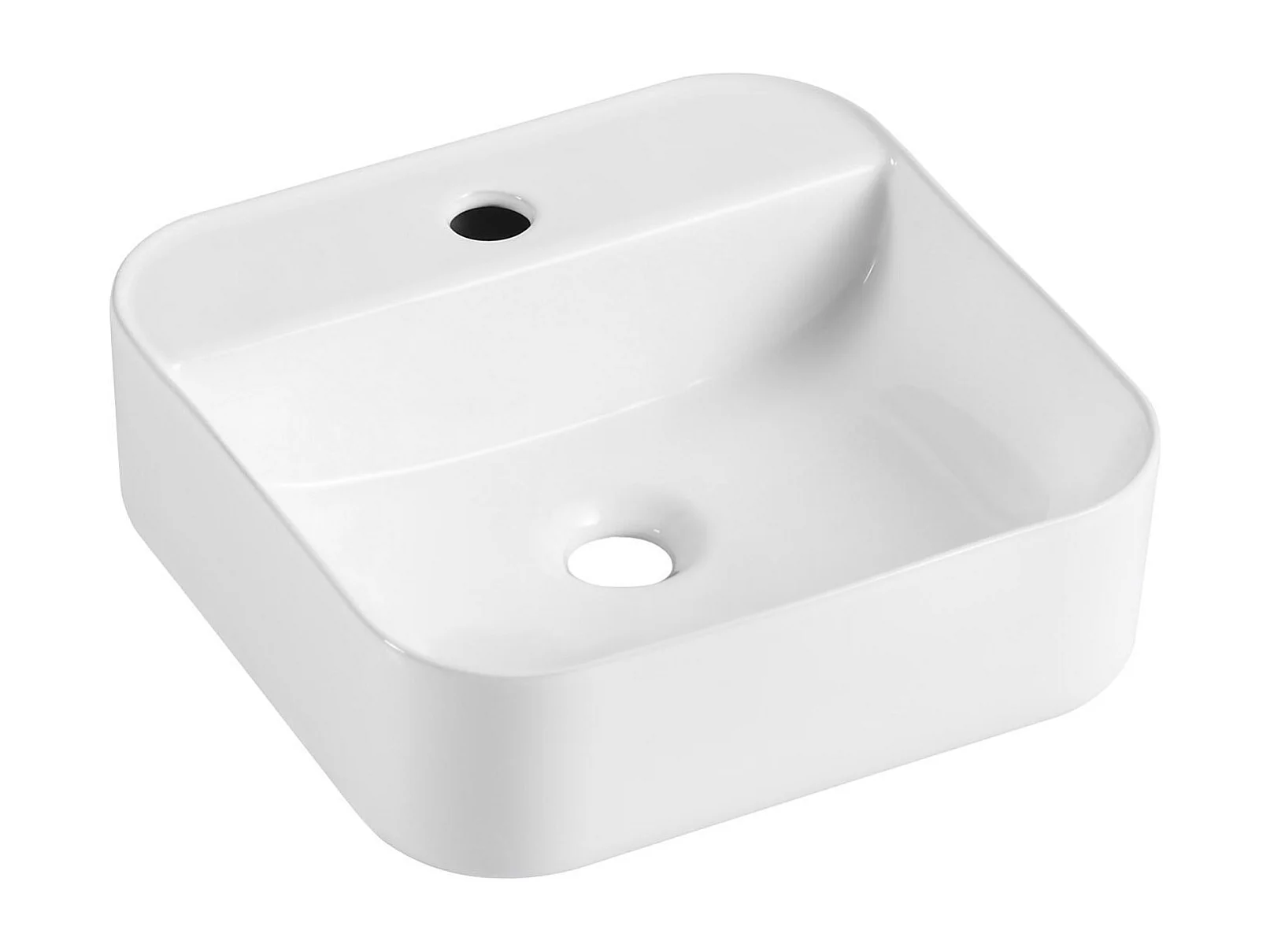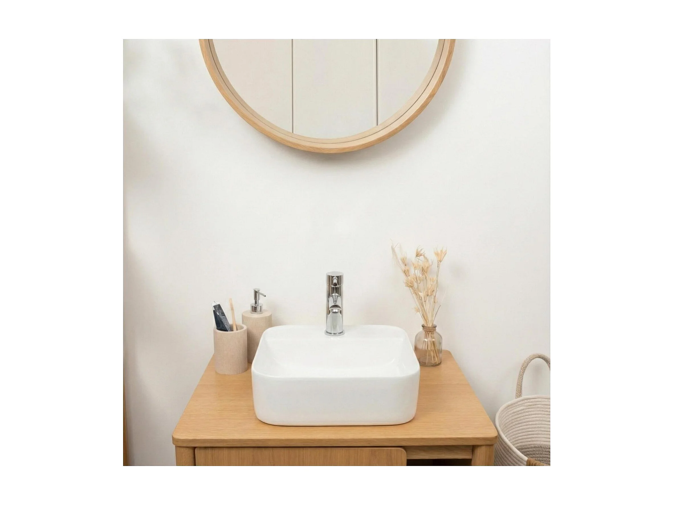 KALI 36 cm rechteckiges weißes Keramik-Aufsatzwaschbecken