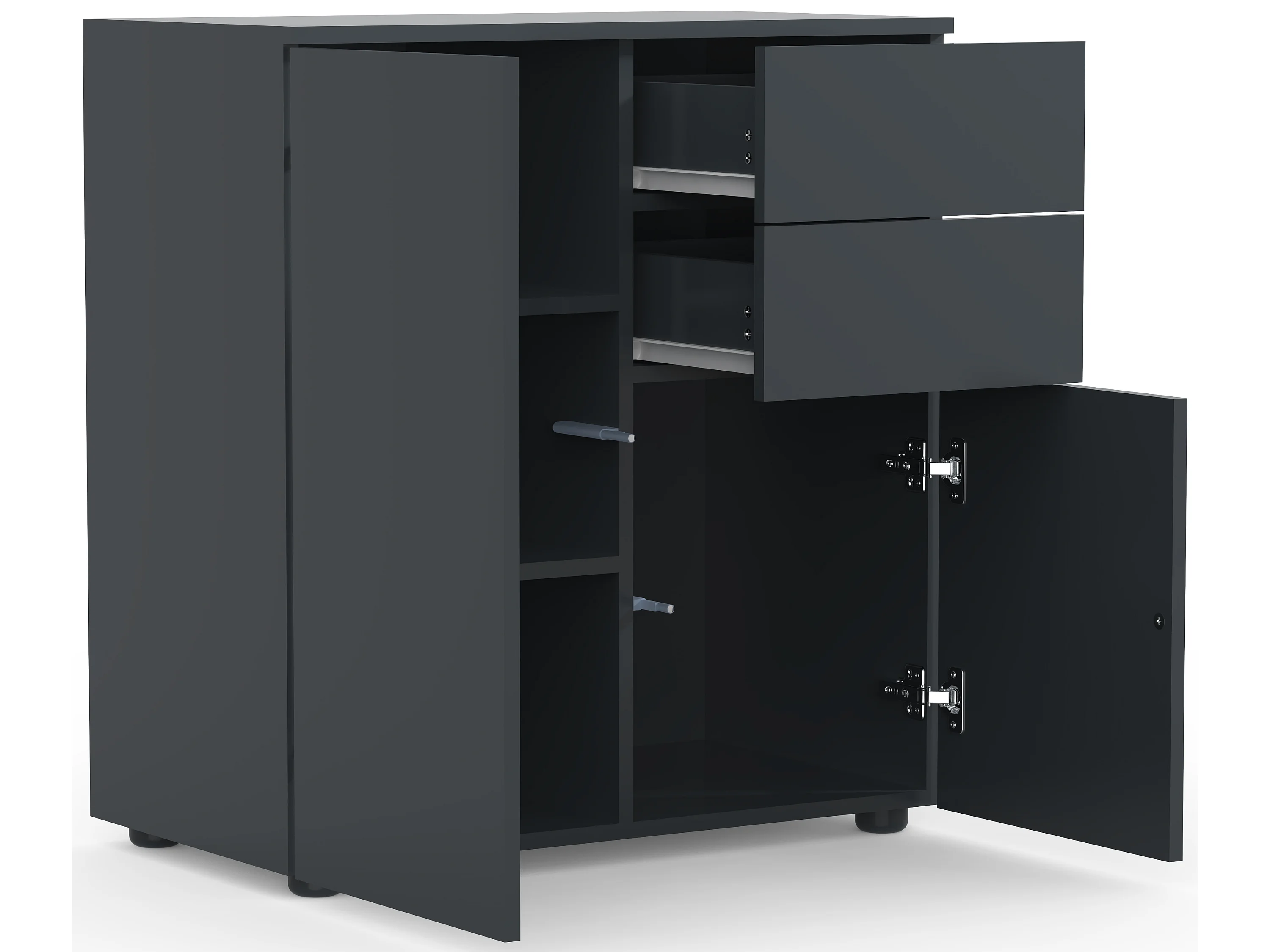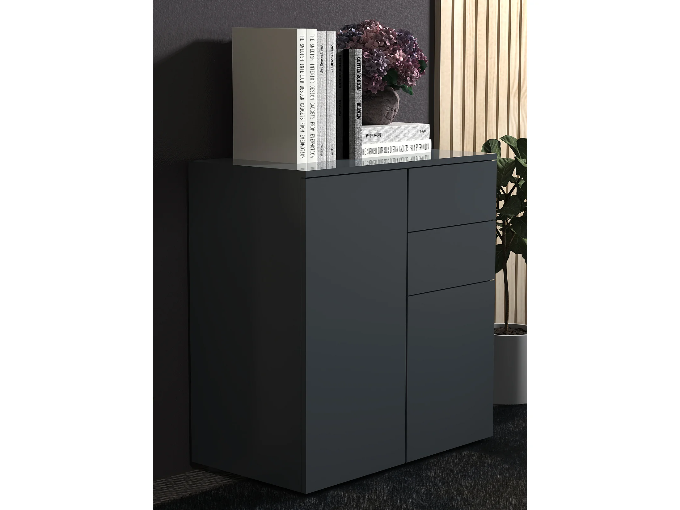 VCM Holz Kommode | Sideboard mit 2 Drehtüren und zwei Schubladen | Maße H. 77 x B. 70 x T. 39 cm - Dalosa (Anthrazit)