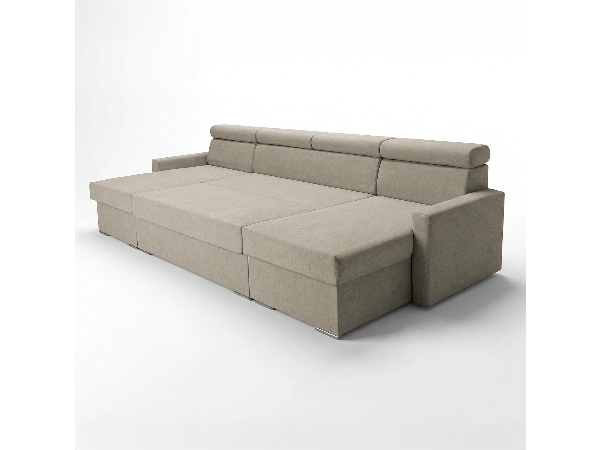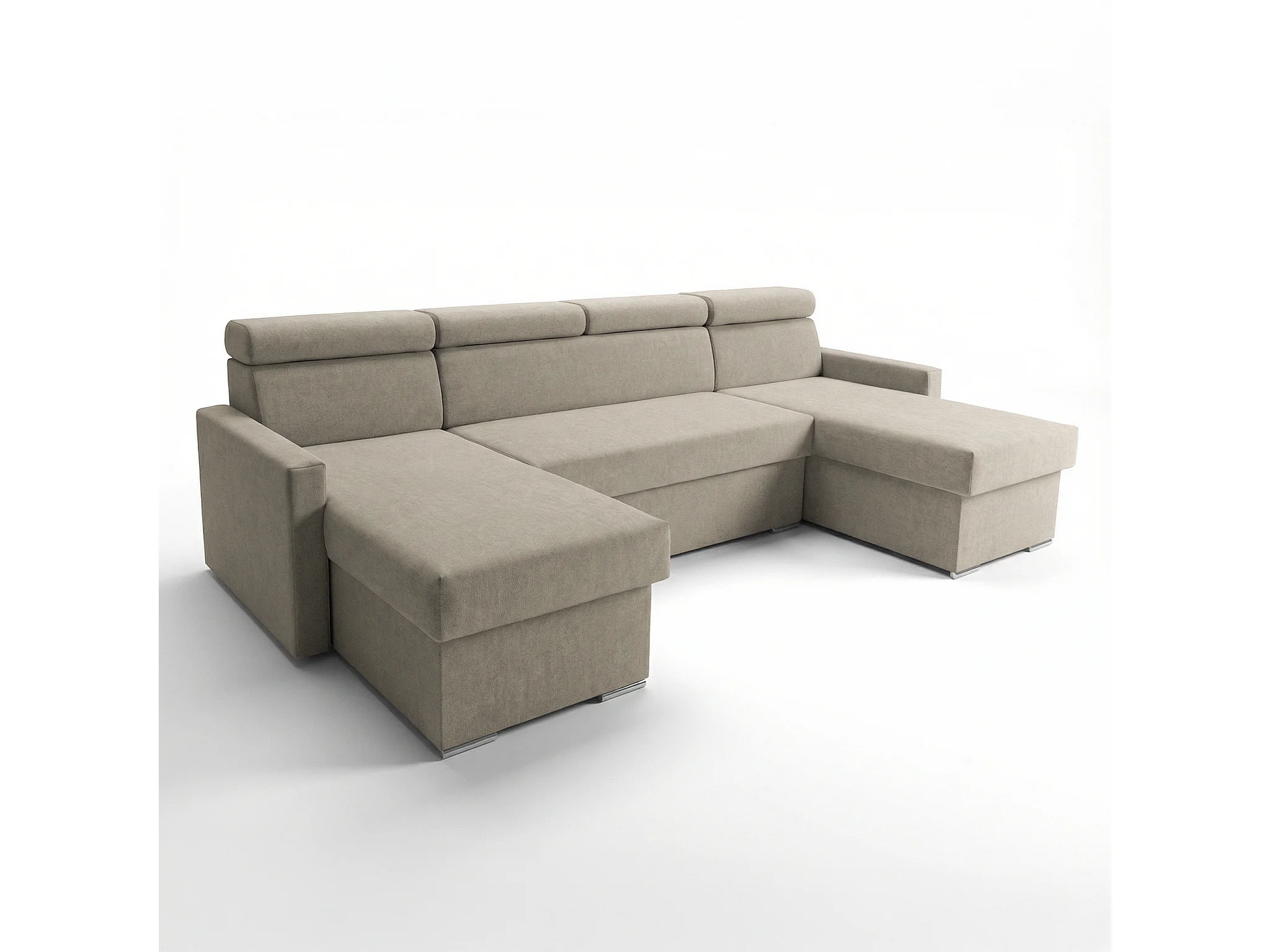 Vega U Wohnlandschaft mit Schlaffunktion und 2 Bettkasten Ecksofa in U-Form Verstellbare Kopfstützen Samt-Stoff Best 305x151 cm (Beige)
