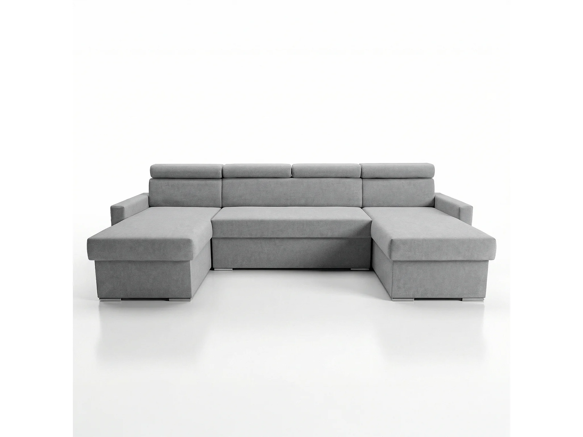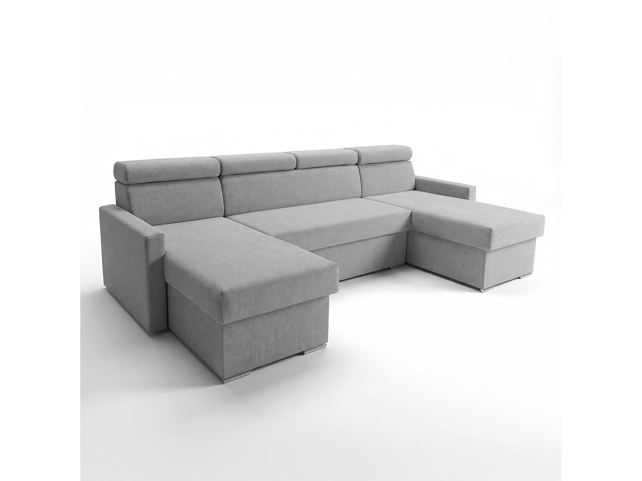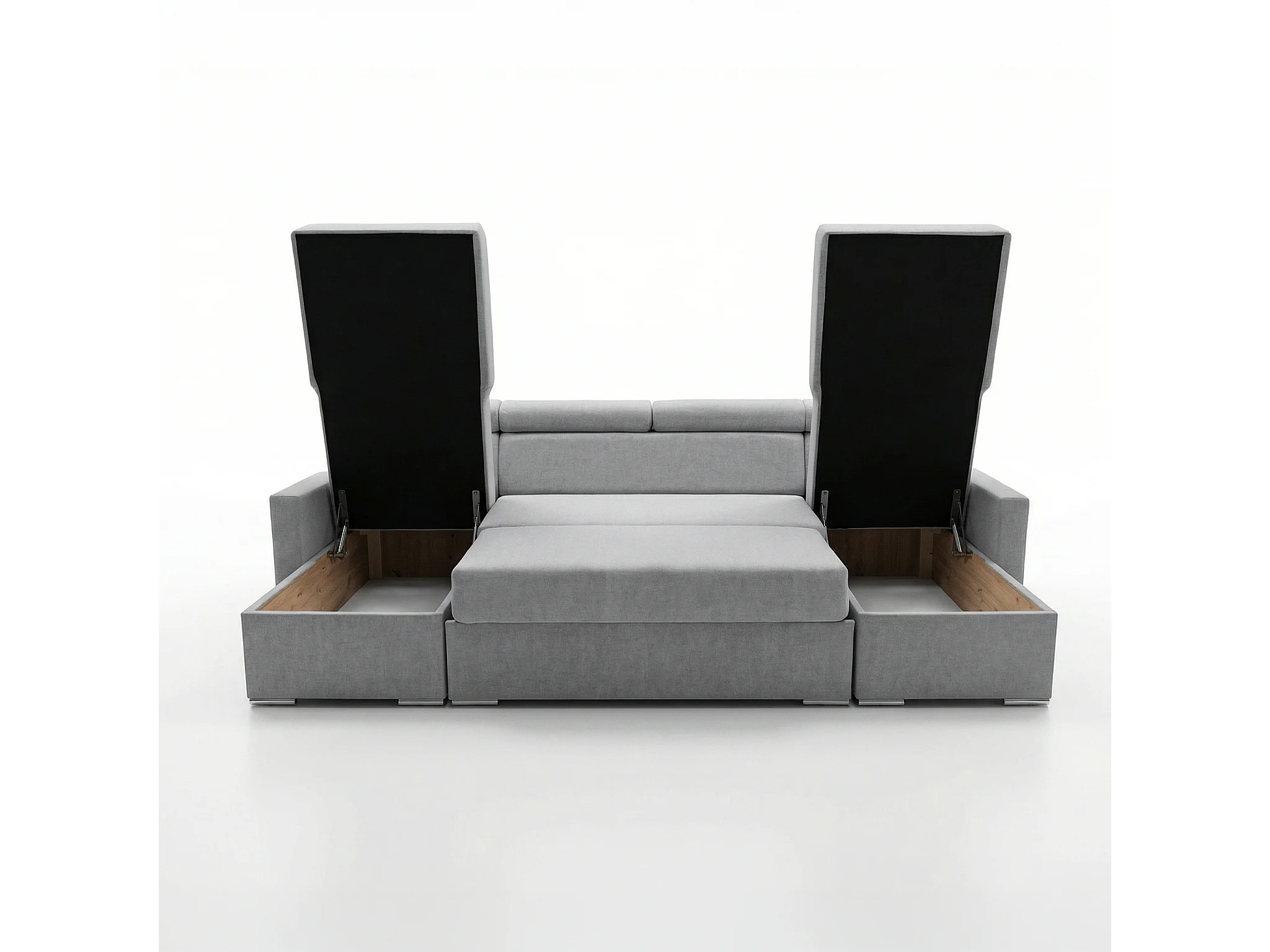 Vega U Wohnlandschaft mit Schlaffunktion und 2 Bettkasten Ecksofa in U-Form Verstellbare Kopfstützen Samt-Stoff Best 305x151 cm (Hellgrau)
