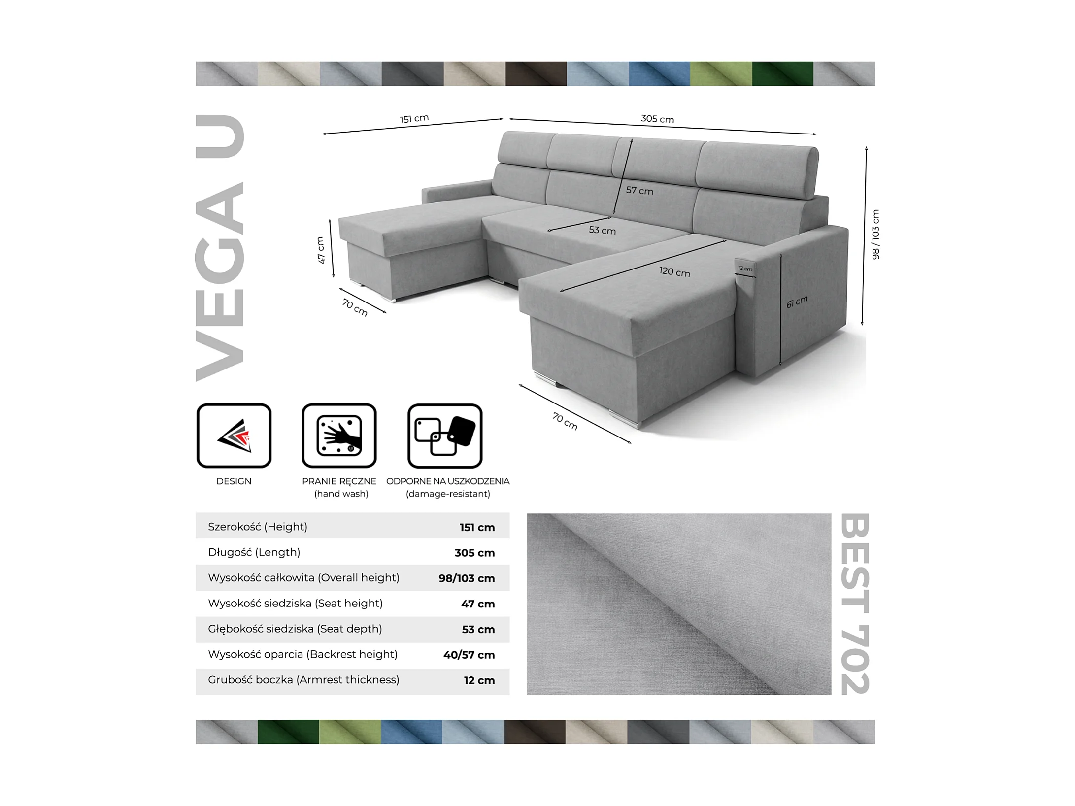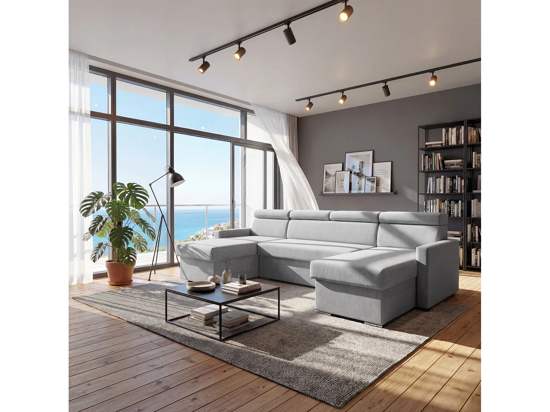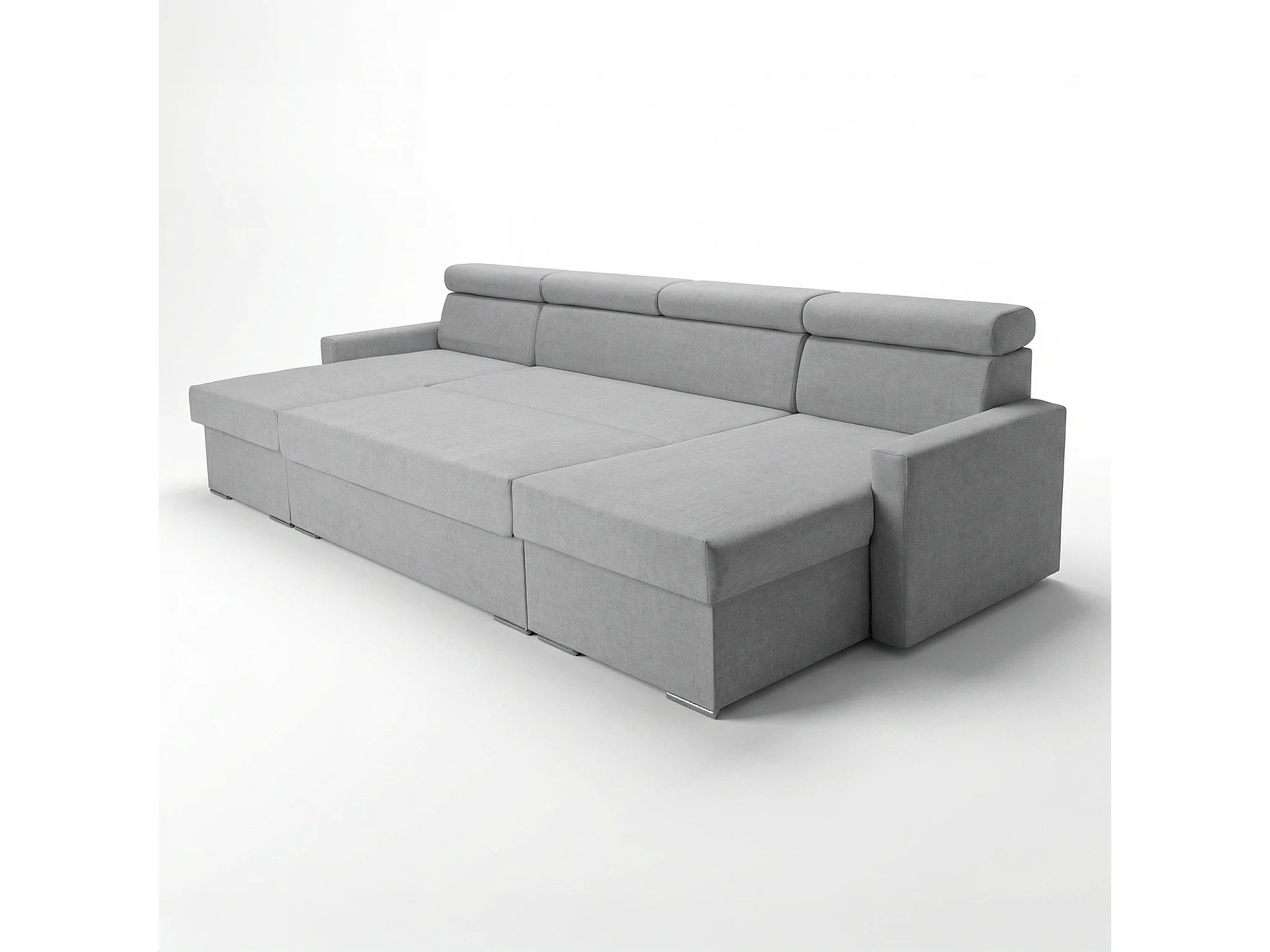 Vega U Wohnlandschaft mit Schlaffunktion und 2 Bettkasten Ecksofa in U-Form Verstellbare Kopfstützen Samt-Stoff Best 305x151 cm (Hellgrau)