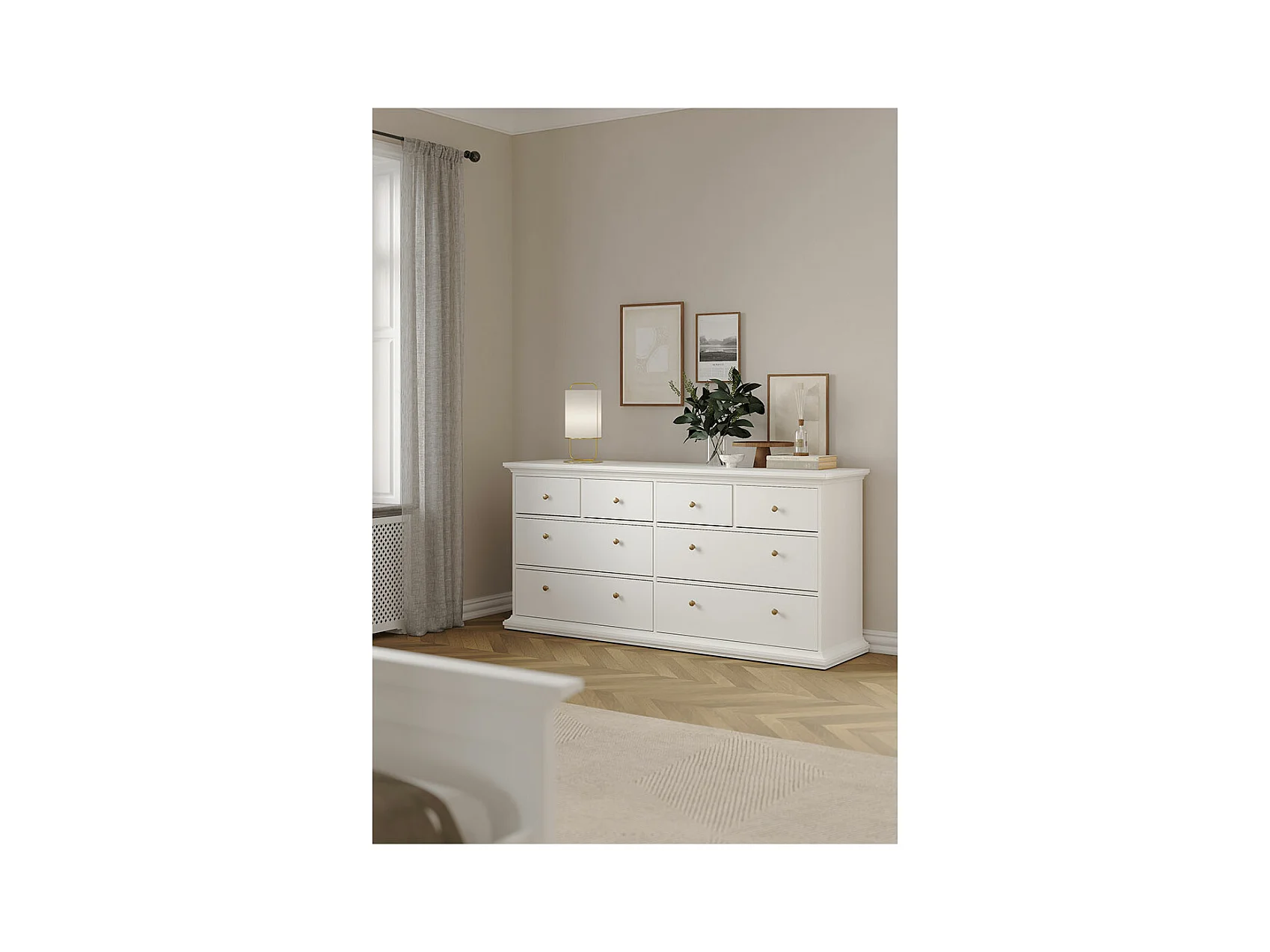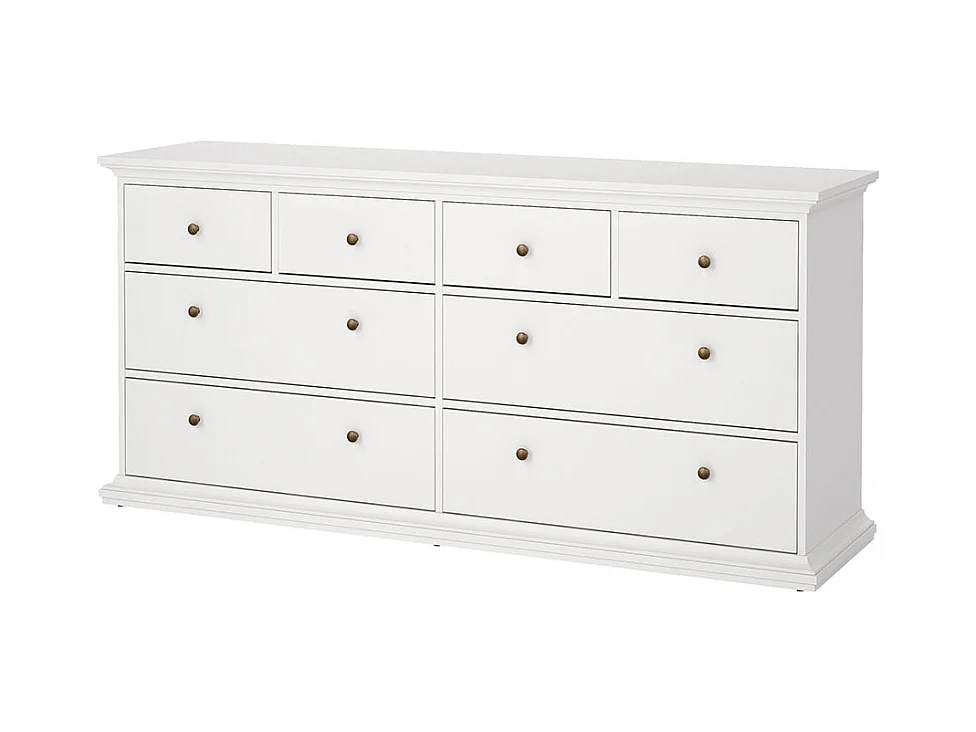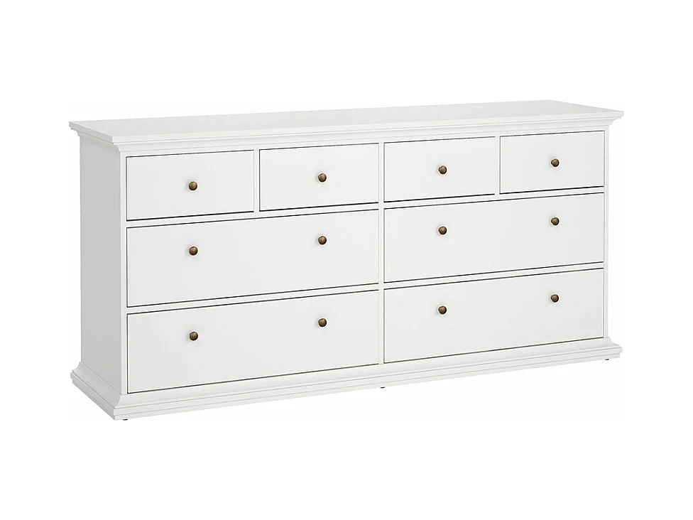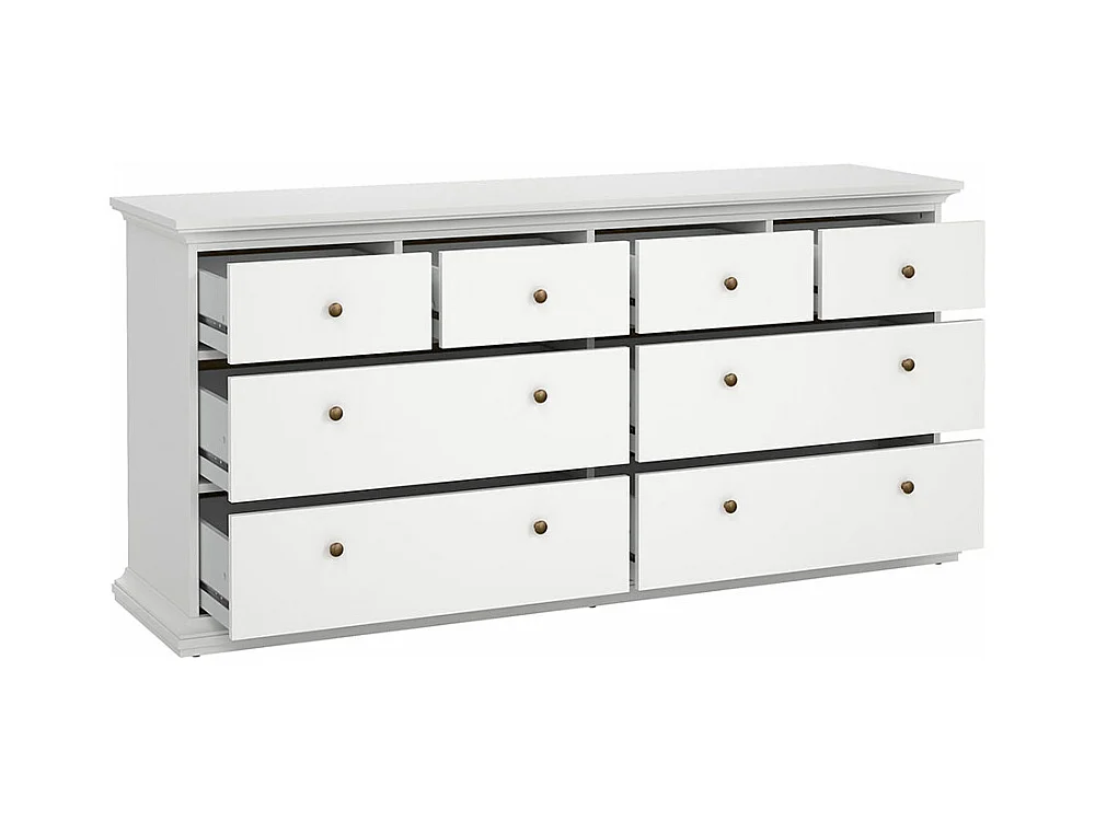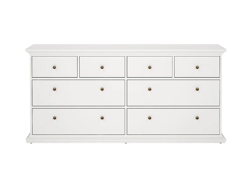 Venedig Kommode mit 4 grossen Schubladen und 4 kleinen Schubladen, Breite 183 cm, Höhe 86 cm weiss.