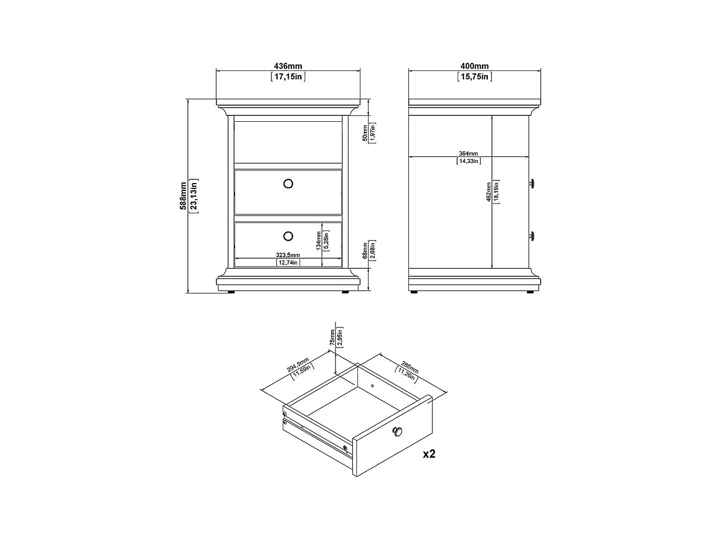 Venedig Nachttisch schmale 2 Schubladen und 1 Raum matt grau.