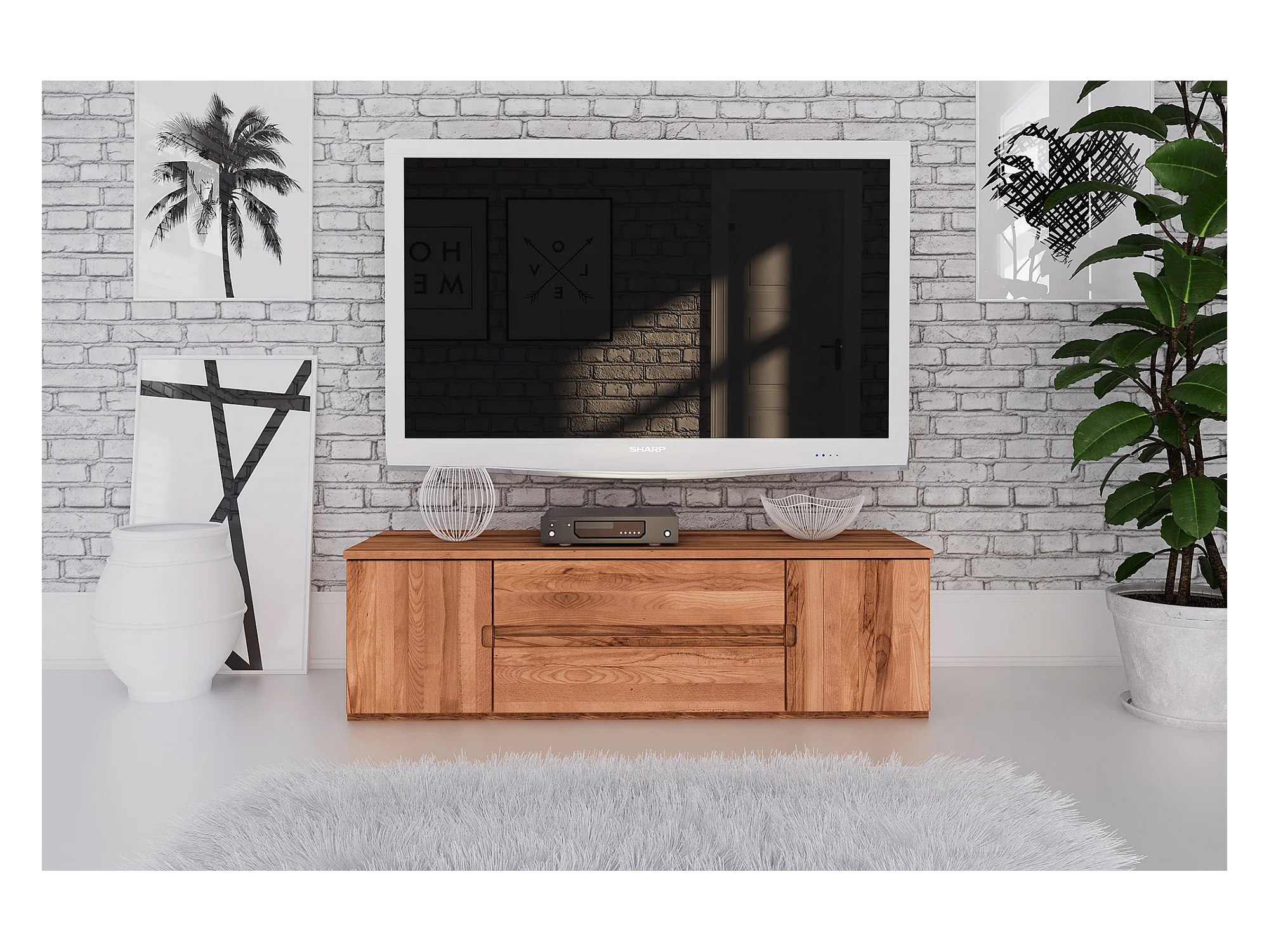 VENTO - Niedrige Kommode mit Schubladen aus Kernbuche, naturgeölt