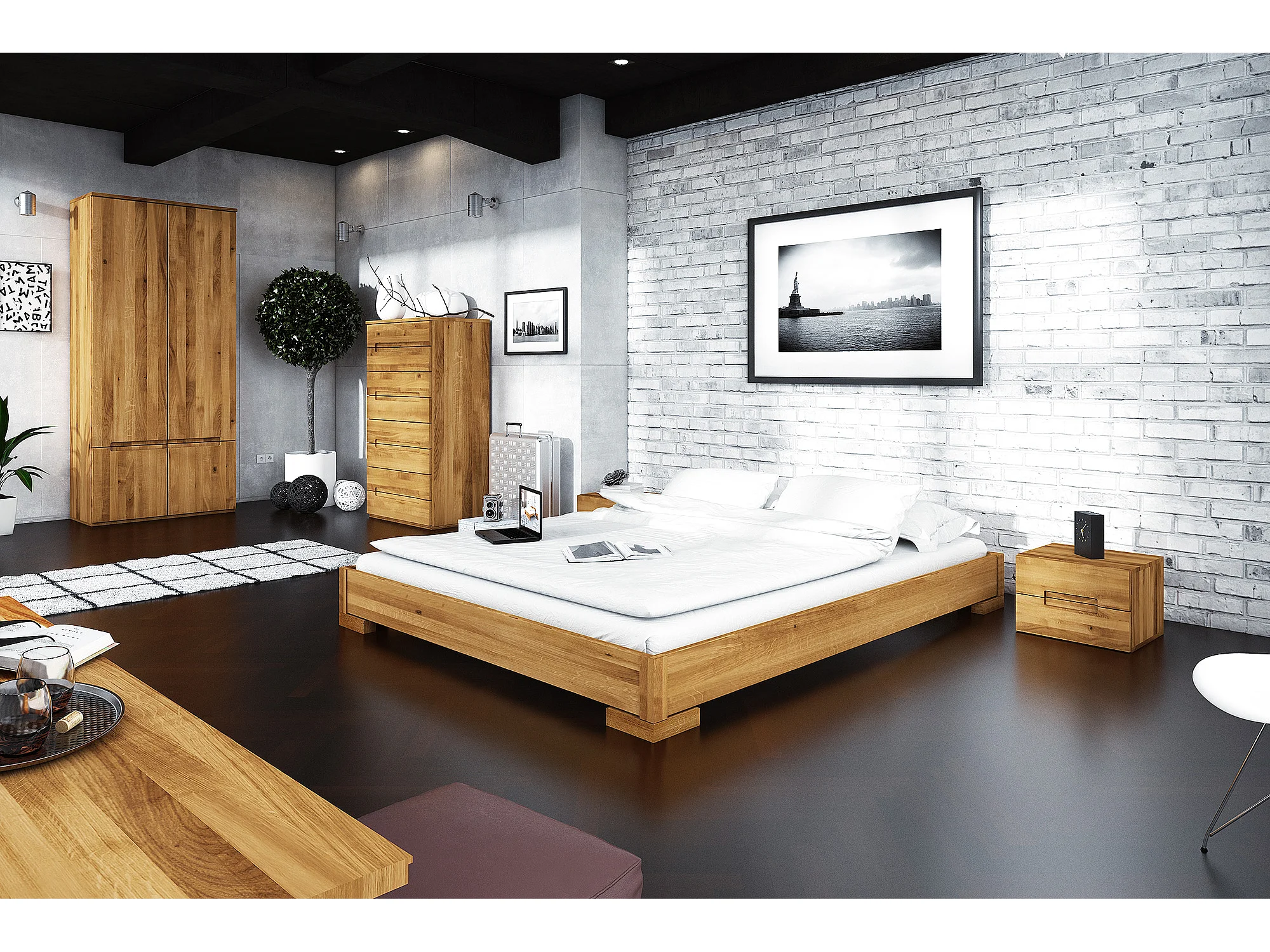 VENTO - Niedriges Bettgestell aus Wildeiche, naturgeölt 100x200