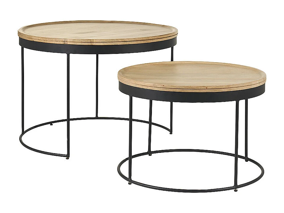 Verschachtelungs-Couchtische aus massivem Mangoholz und Metall LEDGE