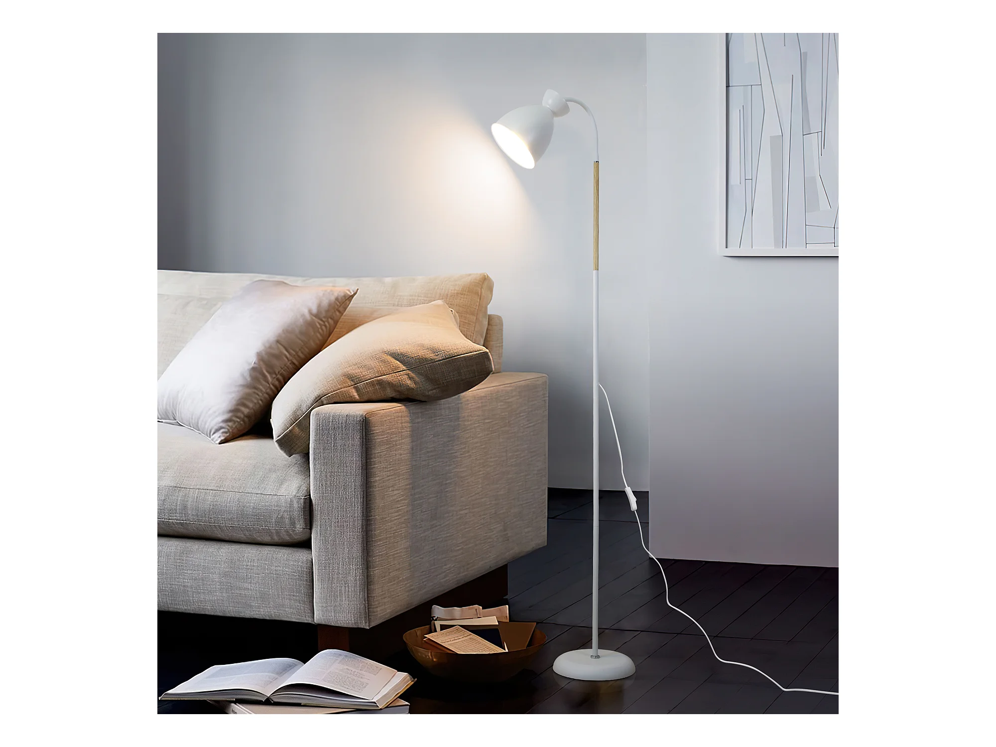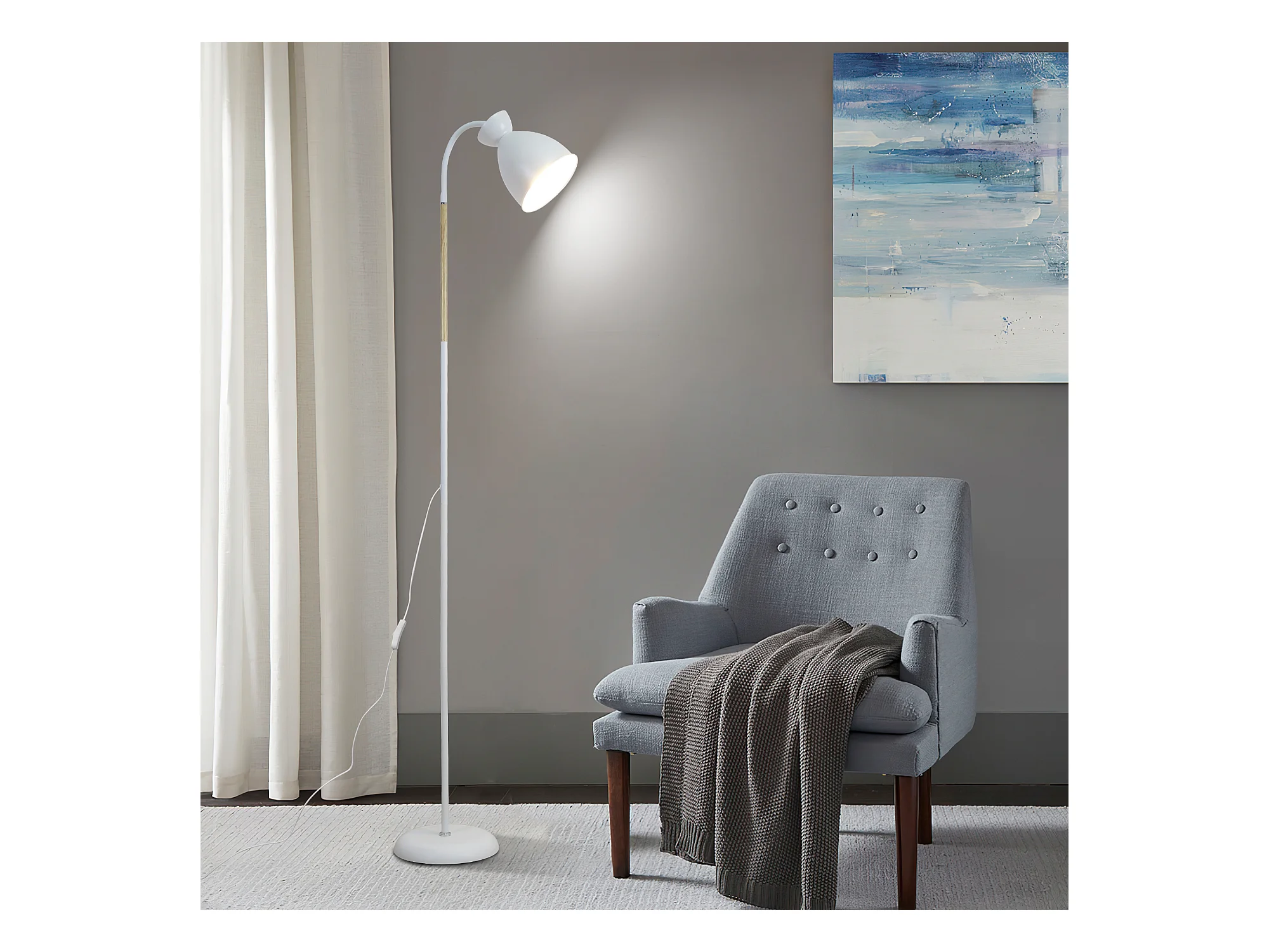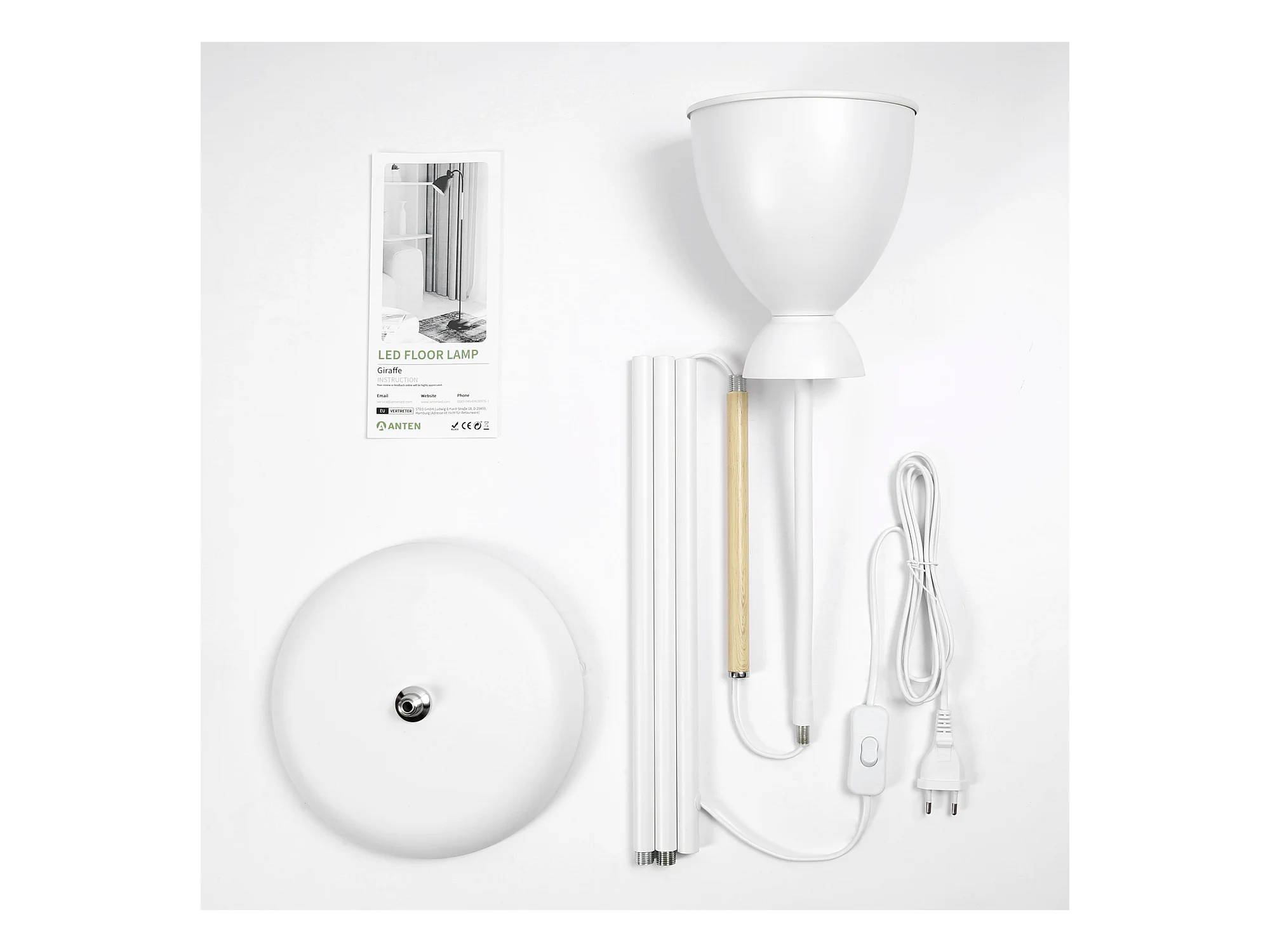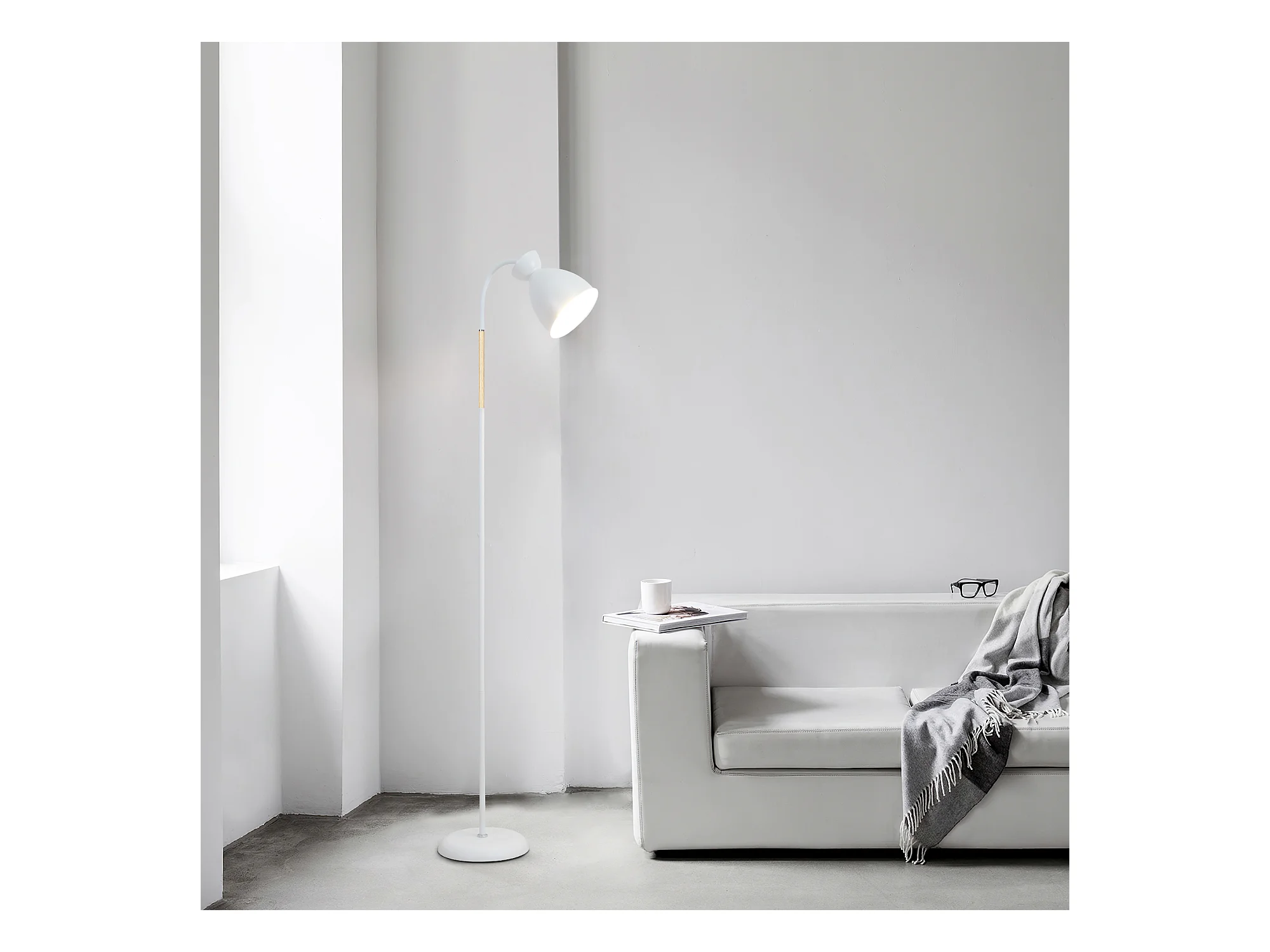 Verstellbare Stehlampe Anten, Weiß | Fassung E27 max. 60 W | 159 cm | Retro-Stehlampe aus Metall für Wohnzimmer, Schlafzimmer, Büro | Ohne Leuchtmittel