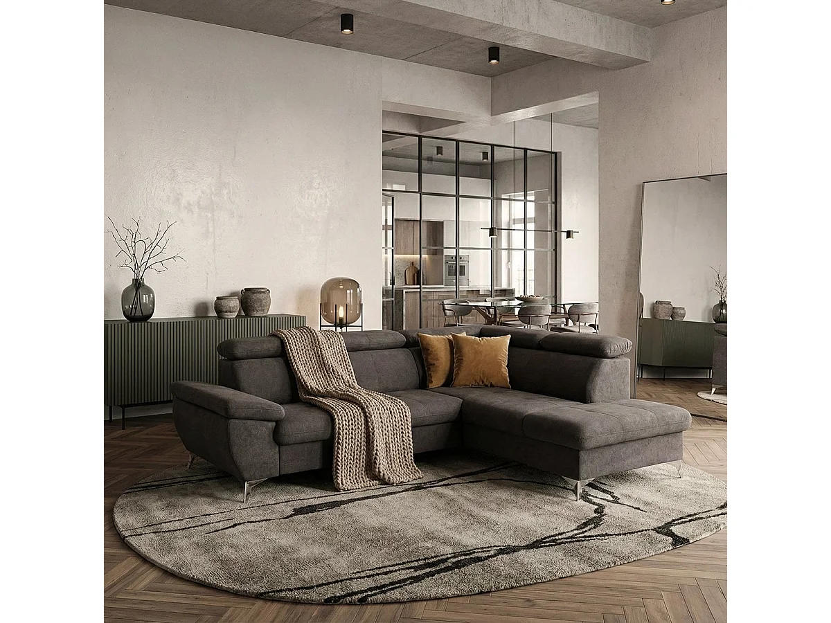 Verstellbares 3-Sitzer Schlafsofa mit rechter Ottomane und Stauraum Tova - Schwarz