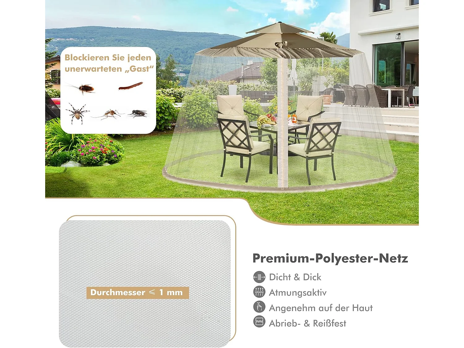 verstellbares Moskitonetz mit 2 Türen