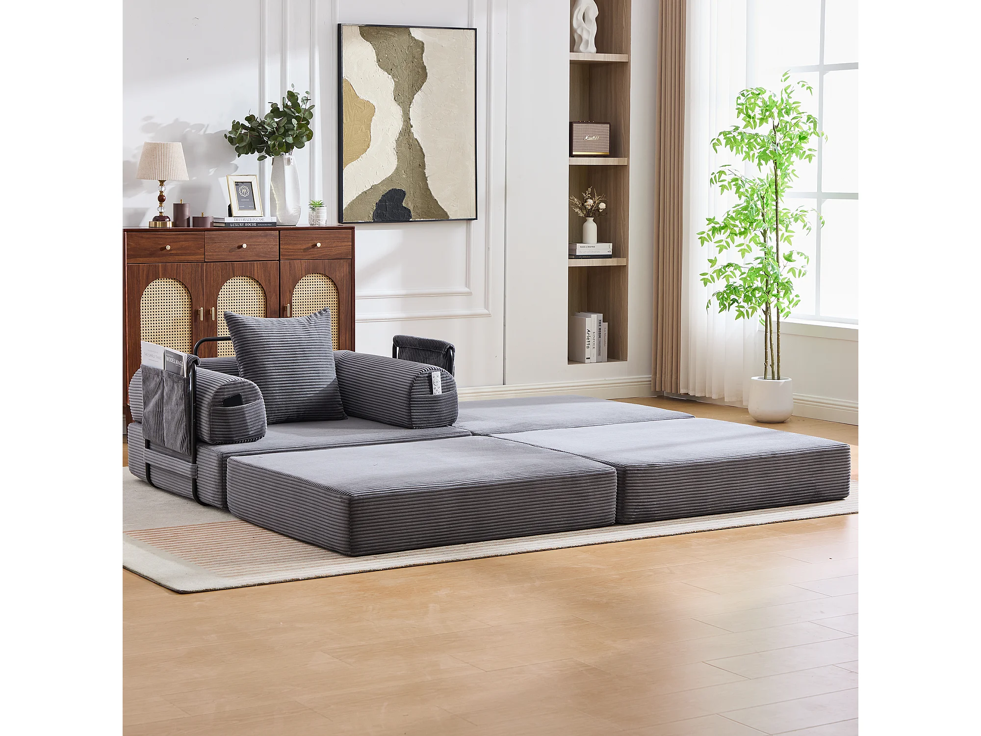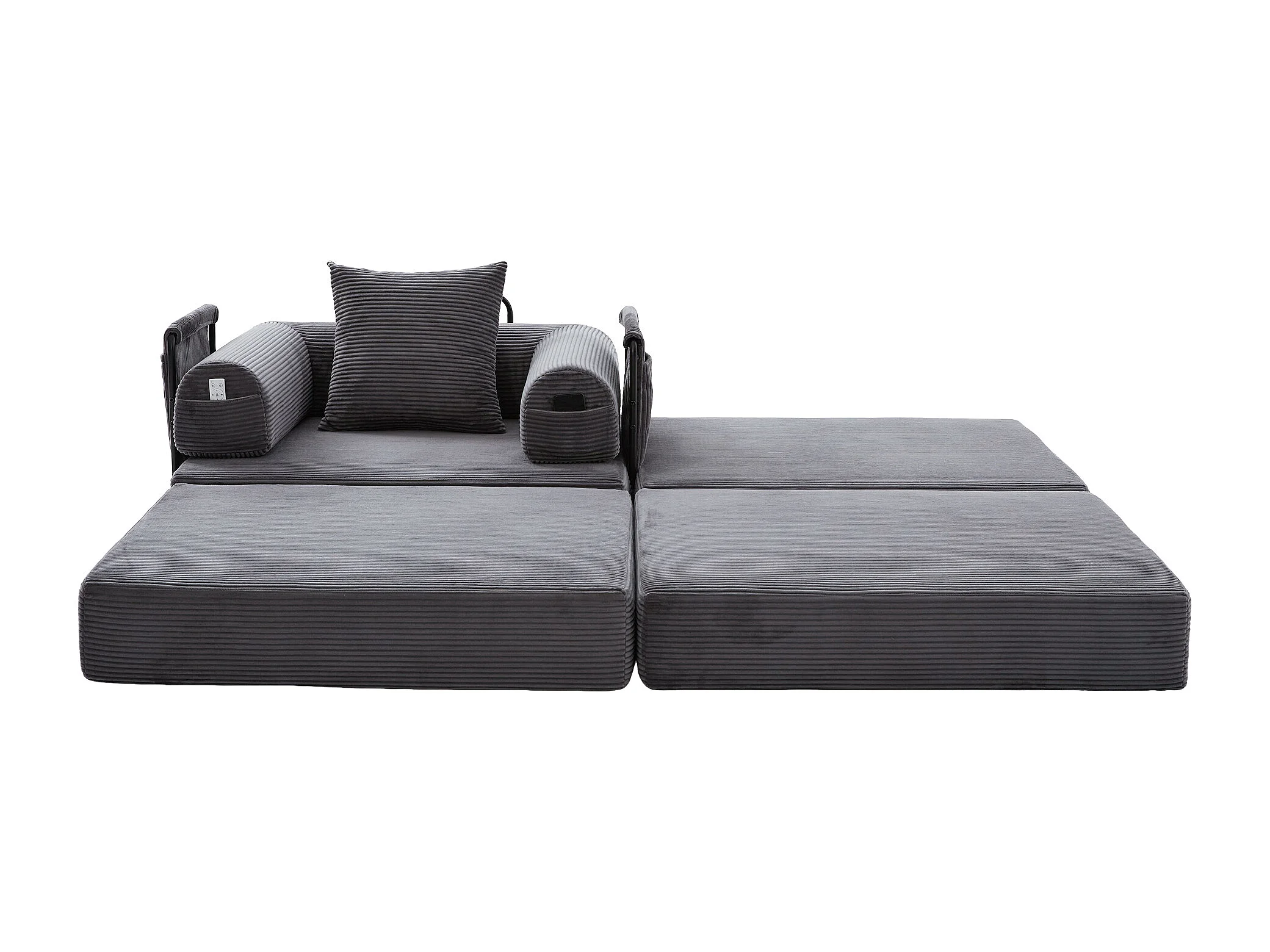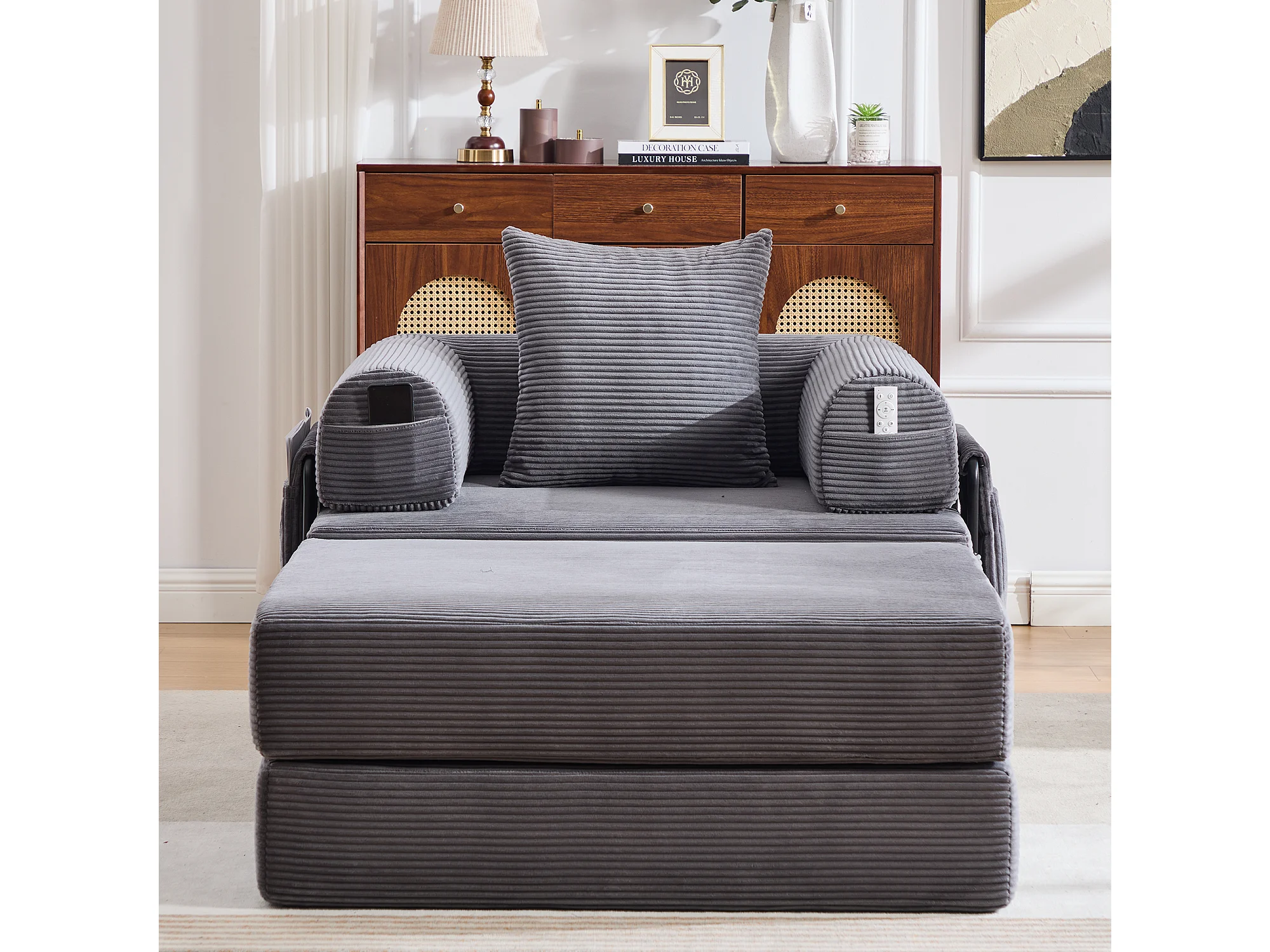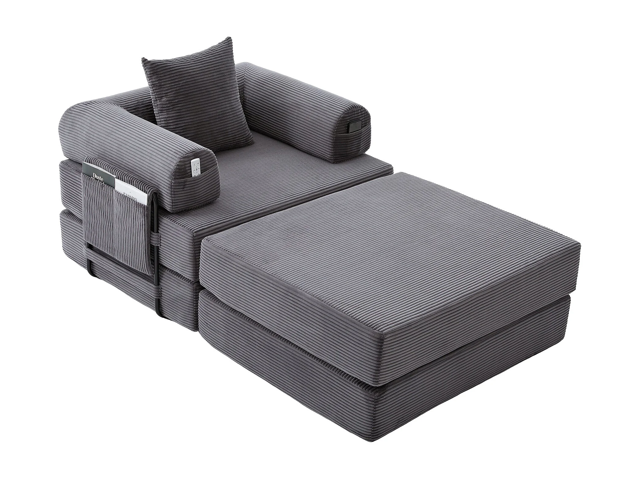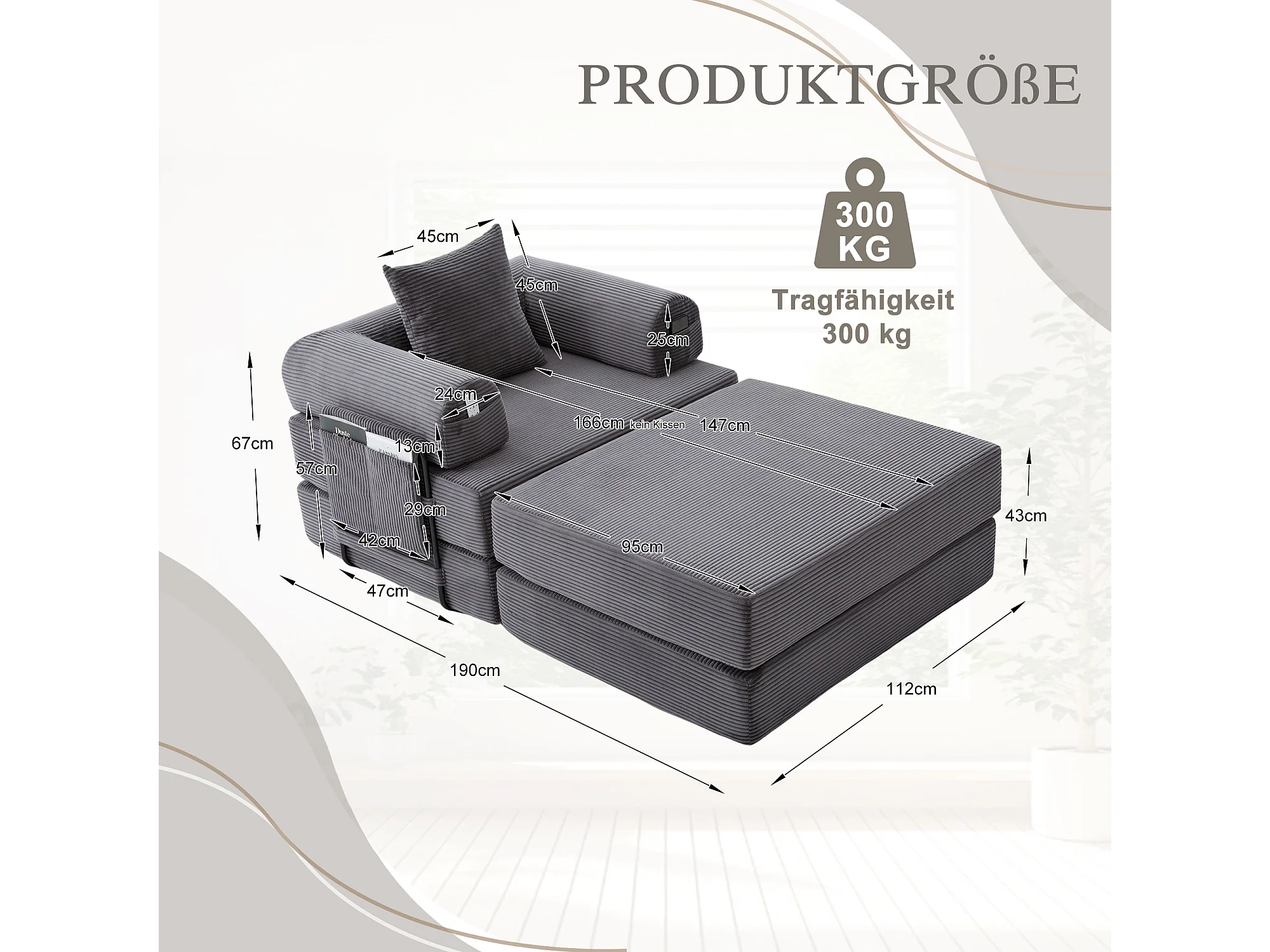 Verwandlungssessel aus Cord – 190 x 112 x 67 cm – mit Kissen und Tasche – stufenlos modular – dunkelgrau