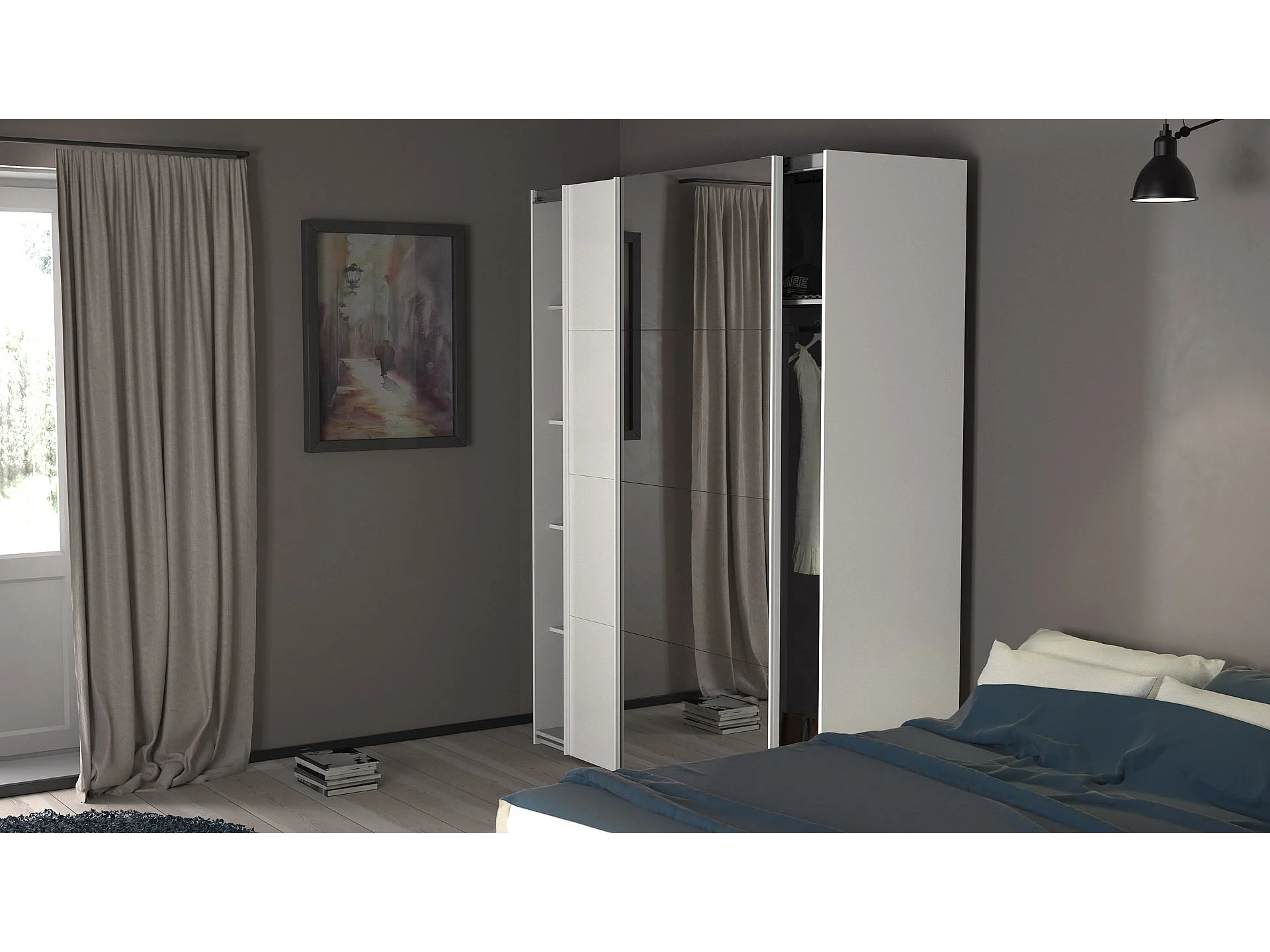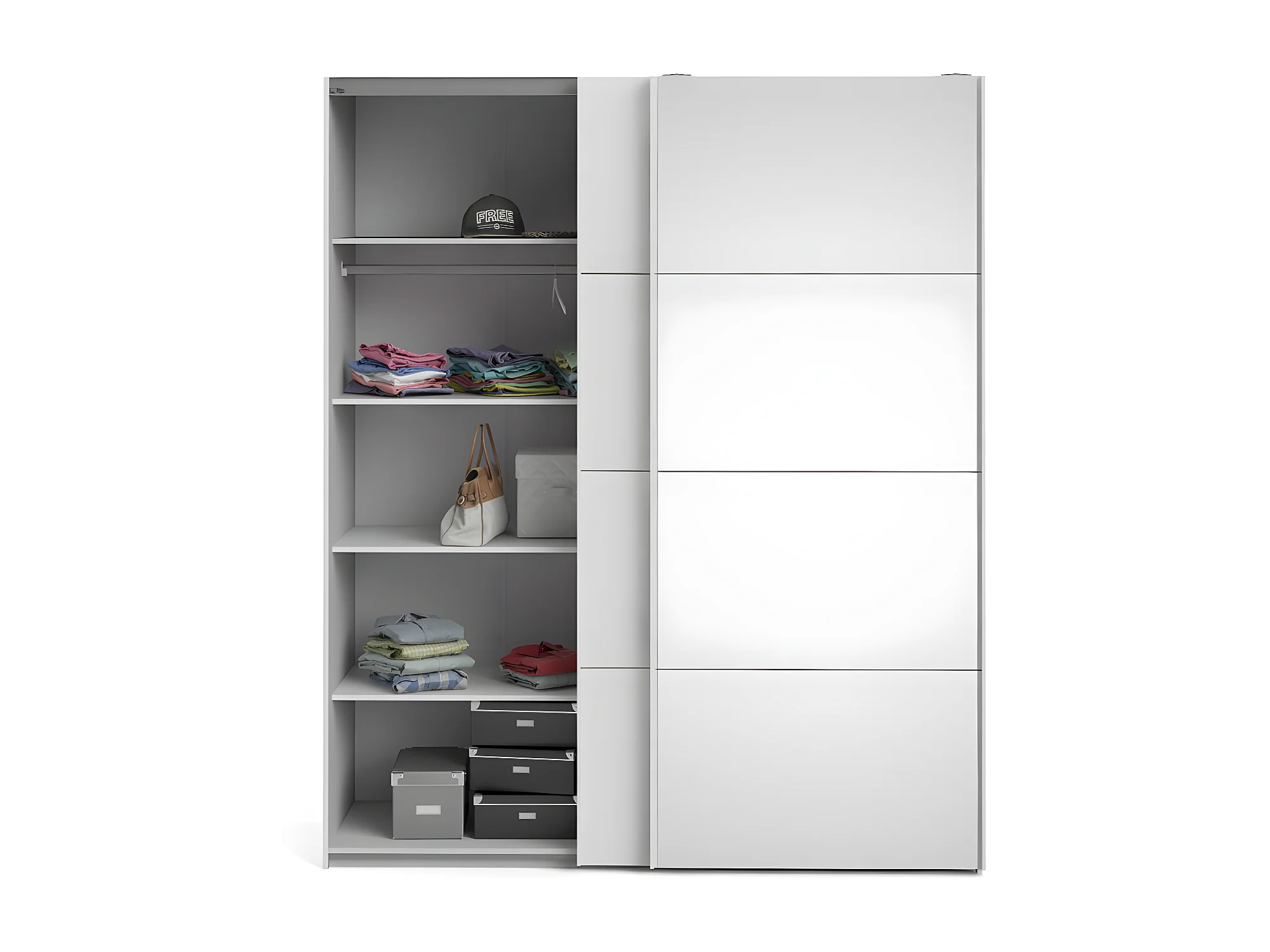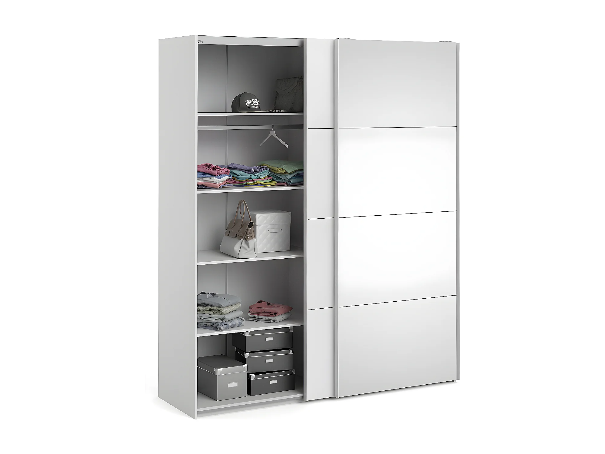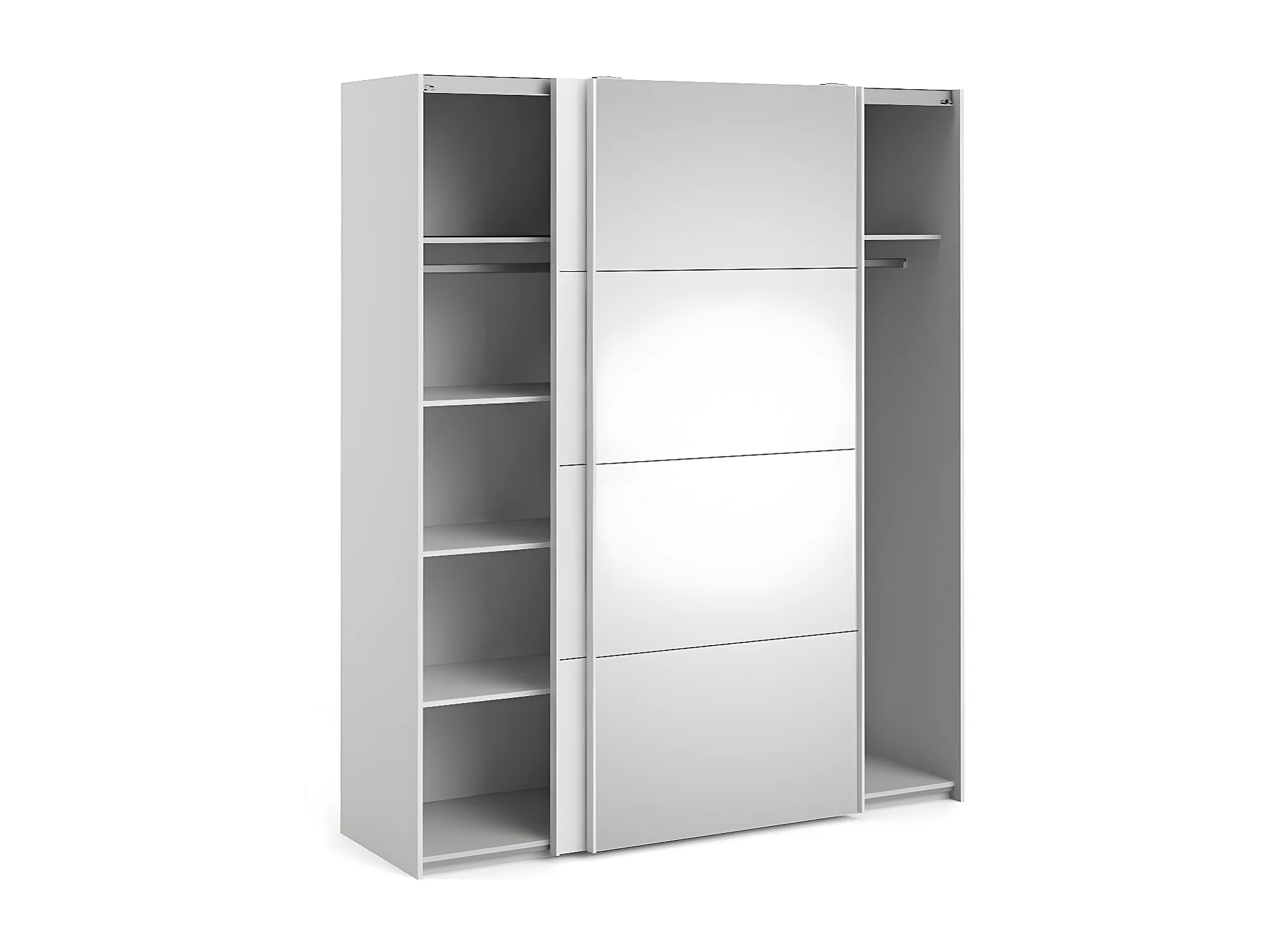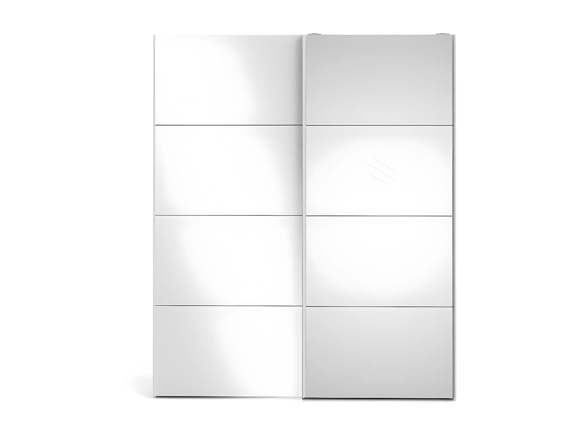 Veto Schiebetürenschrank B183 cm 1 Tür und 1 Spiegeltür weiß und weiß hochglanz.