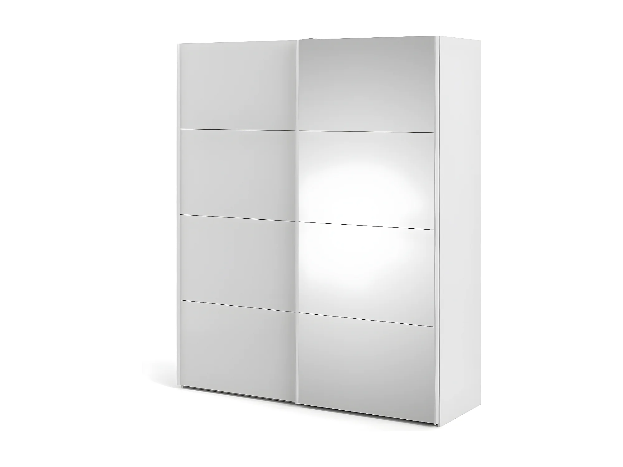 Veto Schiebetürenschrank B183 cm 1 Tür und 1 Spiegeltür weiß und weiß hochglanz.