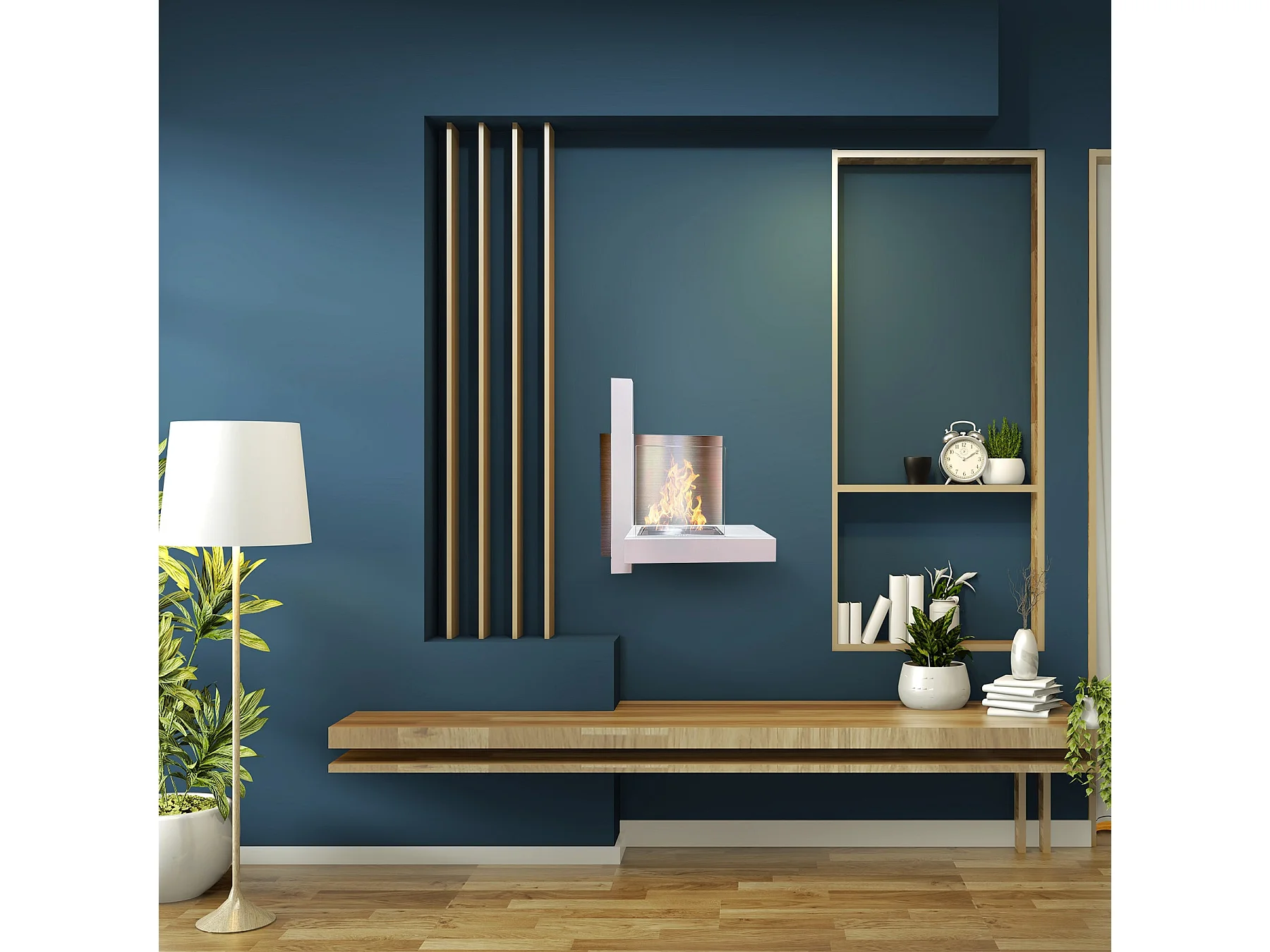 VIENNA Bioethanolkamin, Wandkamin, weiß, L65 x H75 x T23