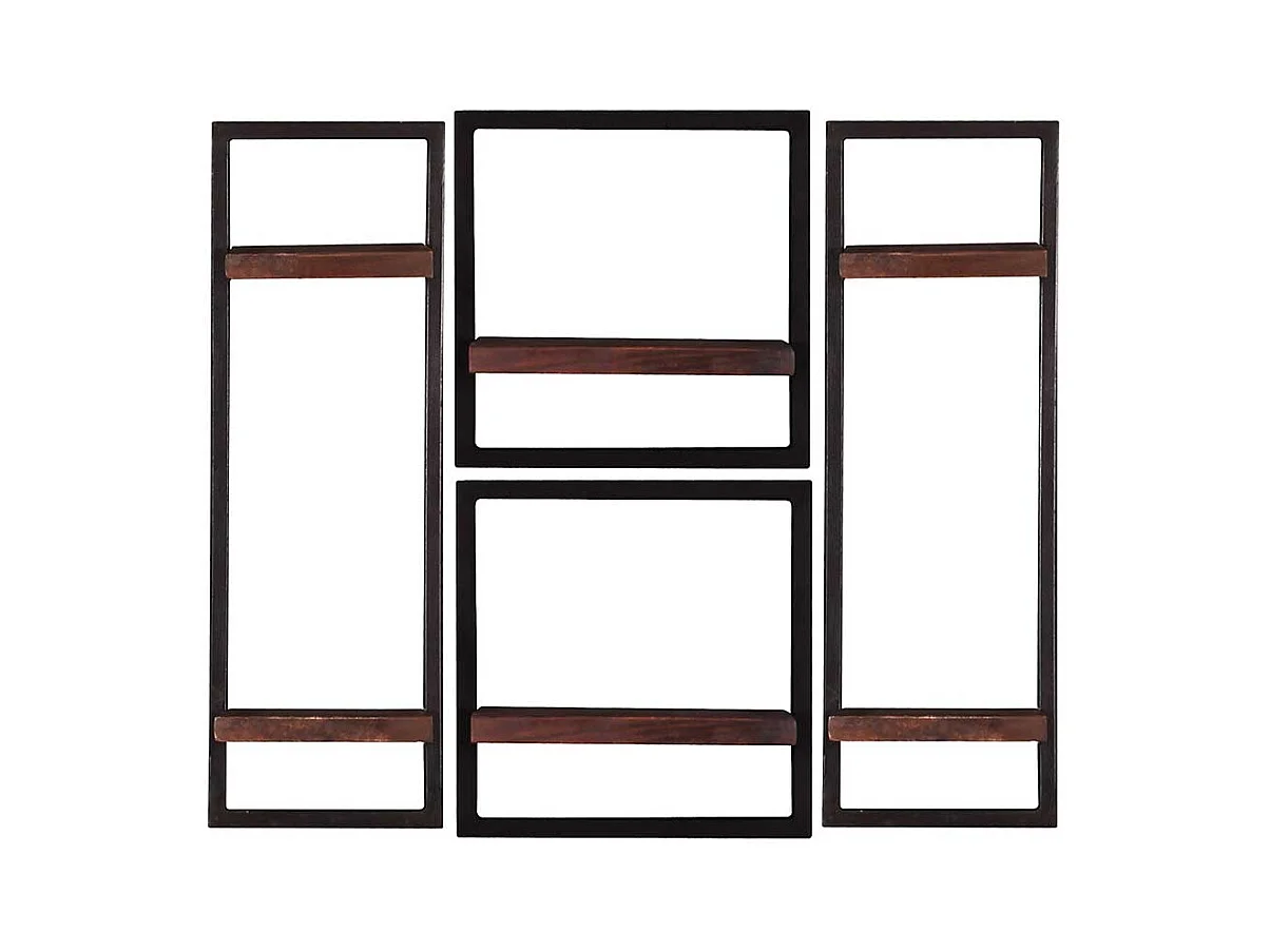 Vier Wandboards aus Recyclingholz & Metall Teak Böden (vierteilig)