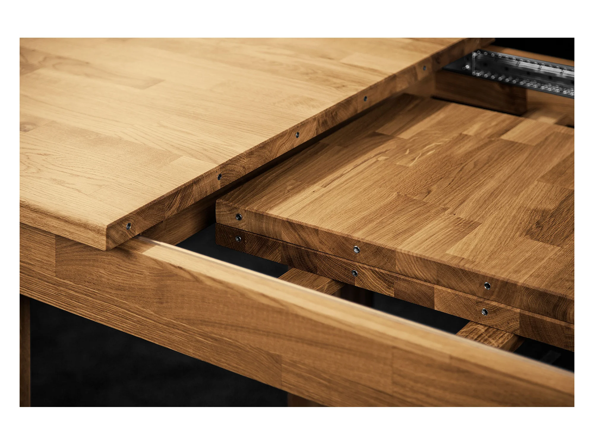 VINCI - Tisch mit Ausziehfunktion 100 x 120 aus Wildeiche, naturgeölt