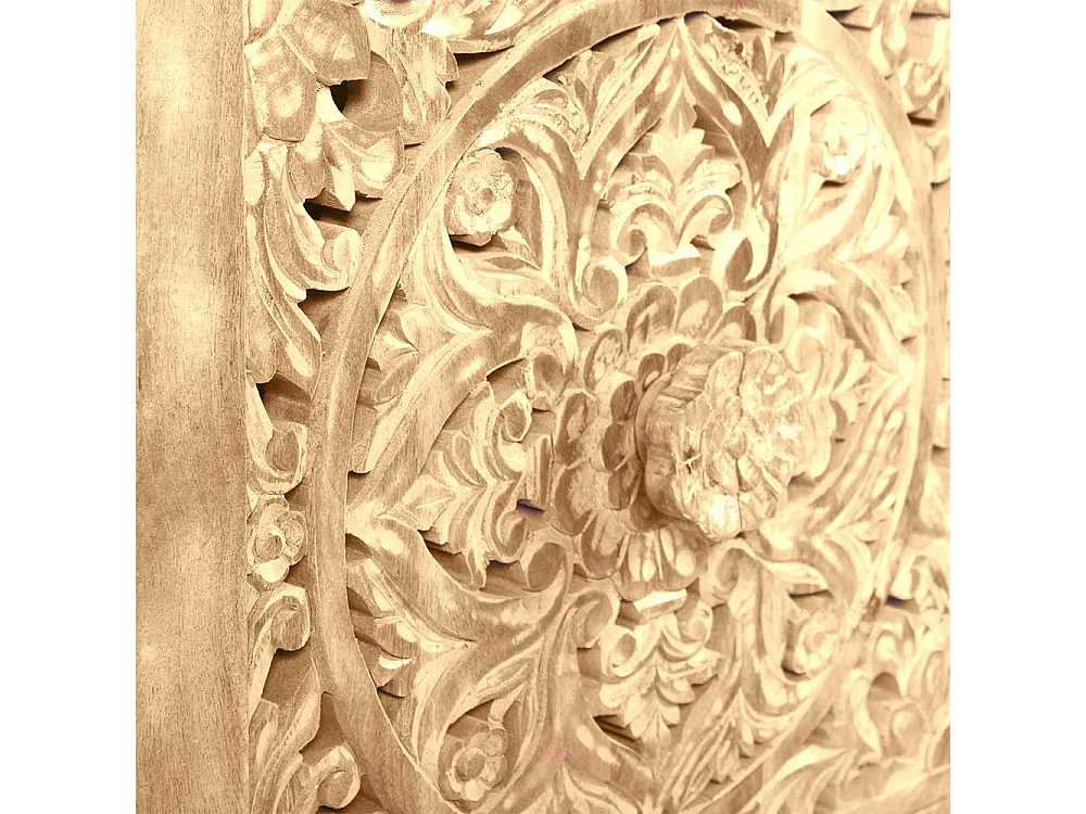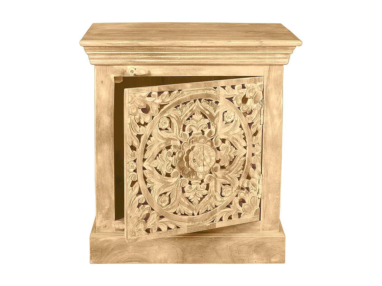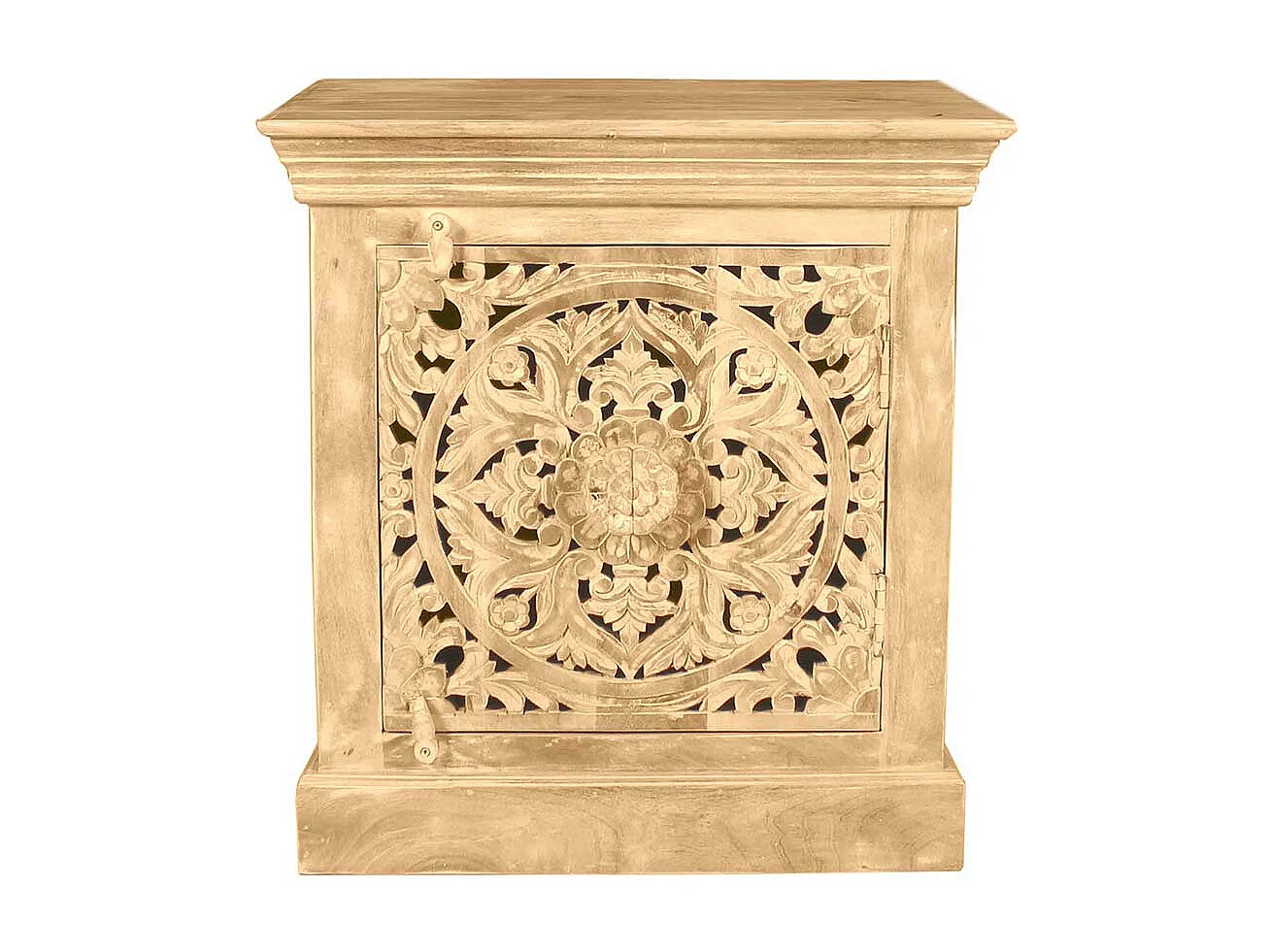 Vintage Design Bettkommode aus Mangobaum Sandfarben massiv floralen Schnitzereien