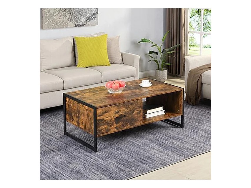 Couchtisch Vintage Design - Braun/Schwarz MDF und Metall - 110x60x45 cm