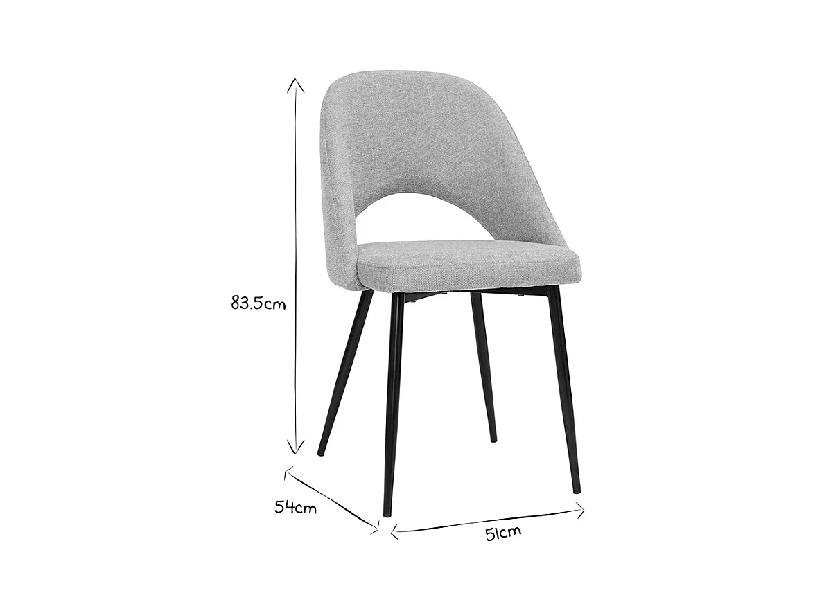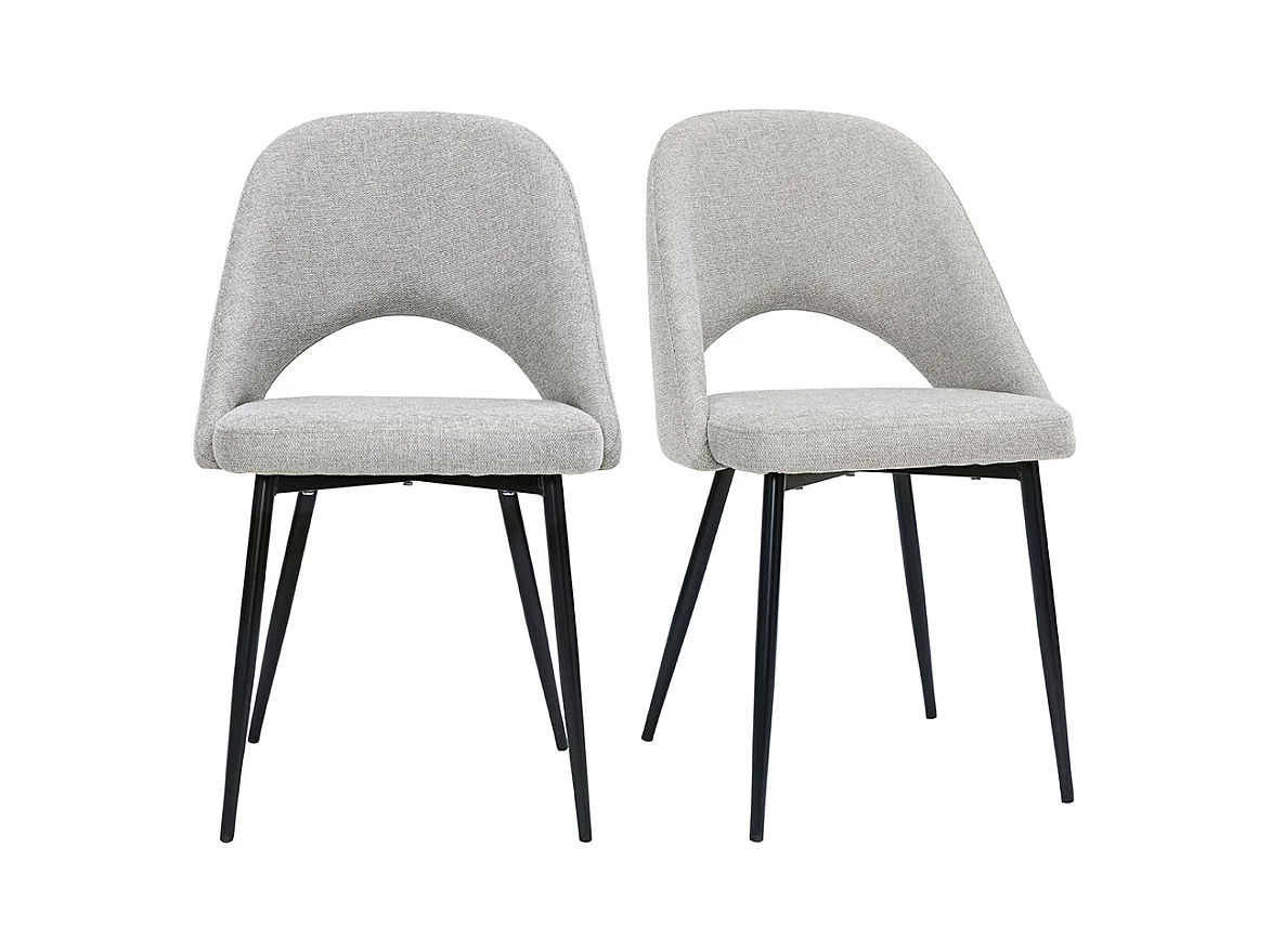 Vintage-Stühle aus Stoff mit strukturiertem Samteffekt in Grau und schwarze Metallfüße (2er-Set) COSETTE