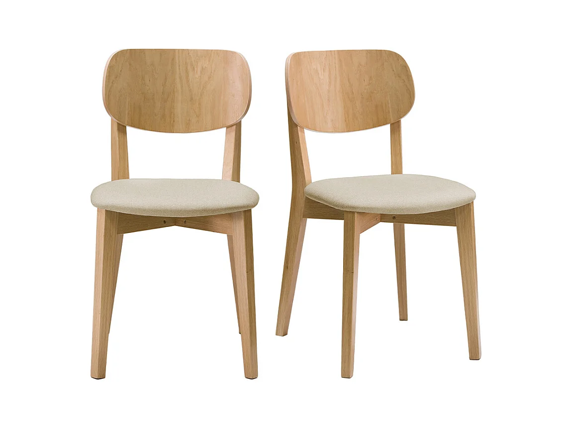 Vintage-Stühle Eichenholz und beige Sitzfläche (2er-Set) LUCIA