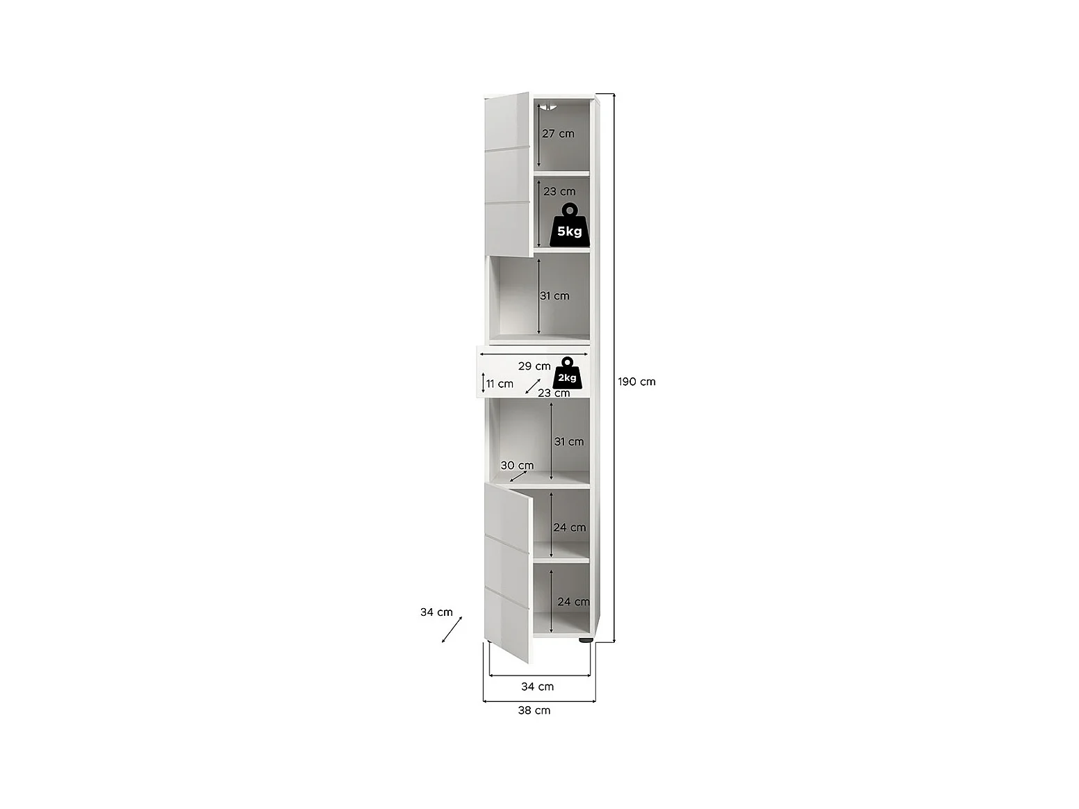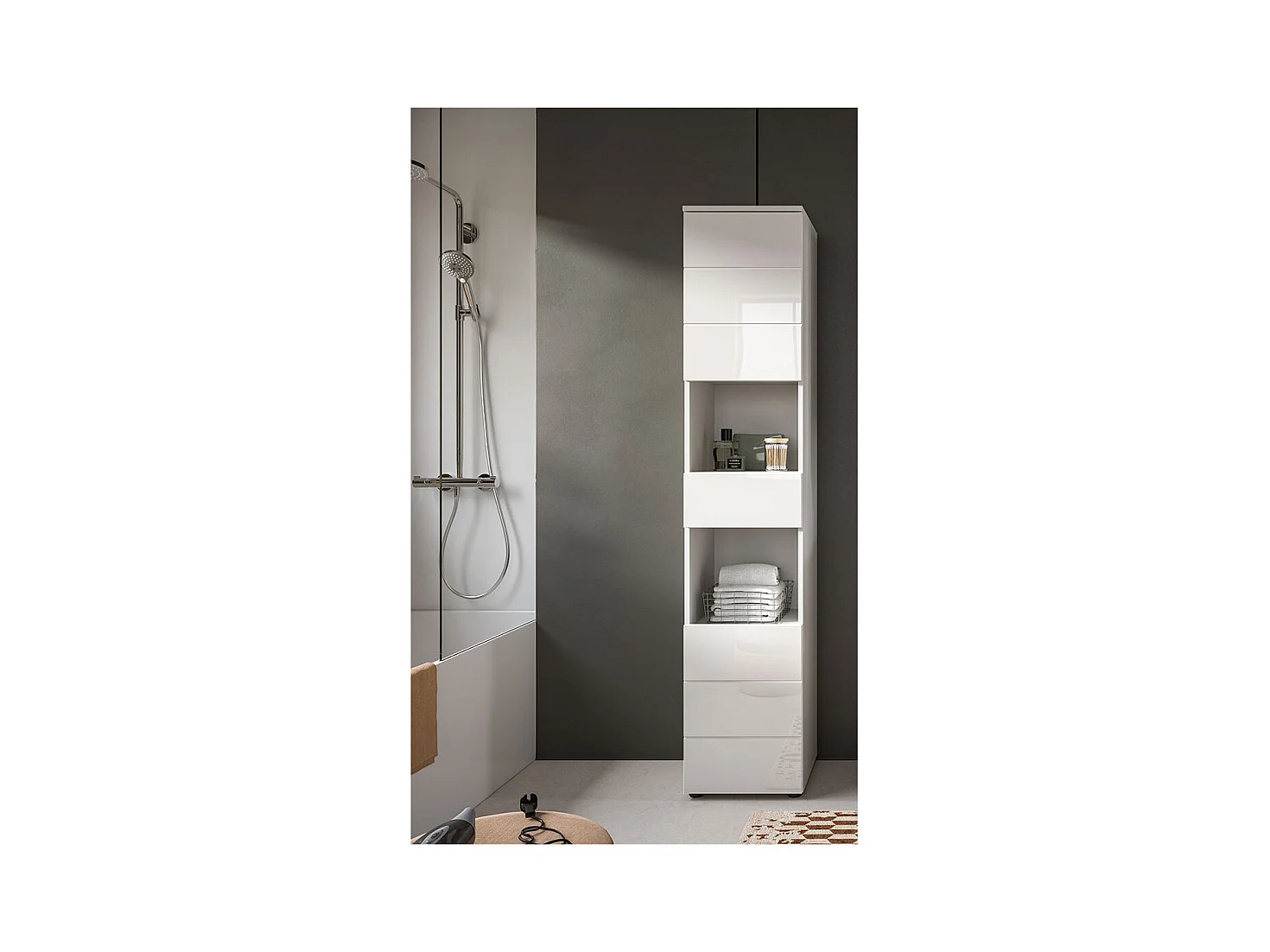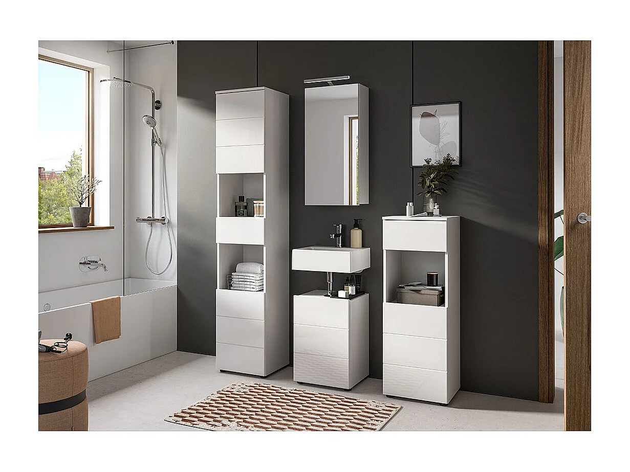 Vira Hochschrank Bad 1 Schublade 2 Türen 2 Fächer weiß Hochglanz, weiß.