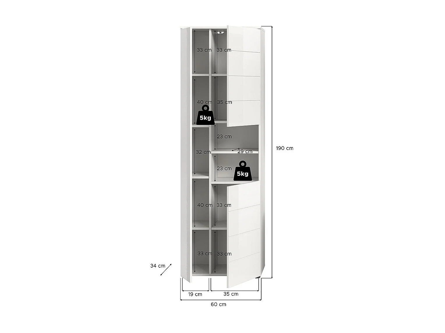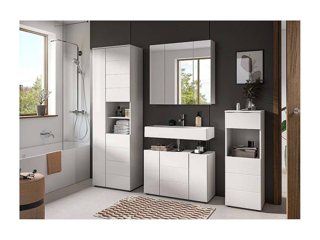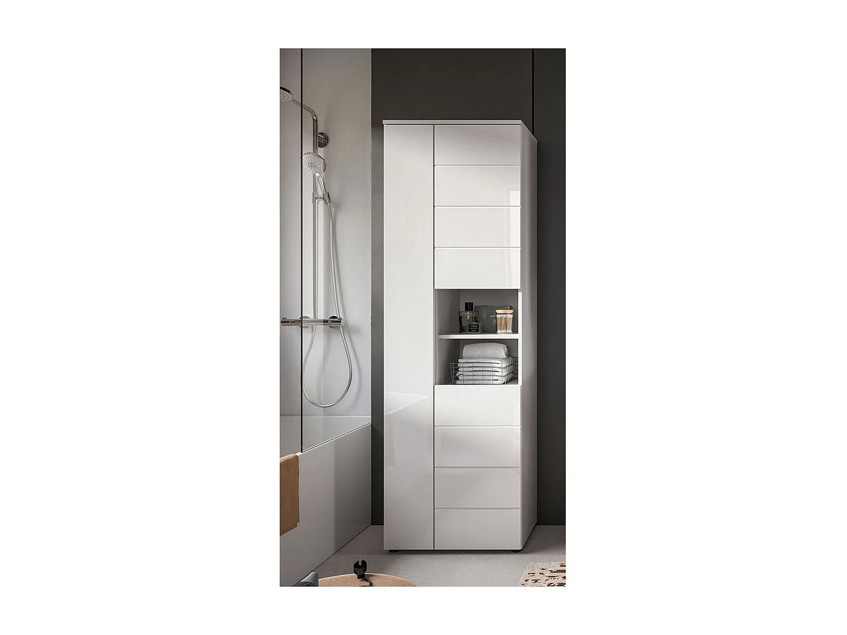 Vira Hochschrank Bad 3 Türen 2 Fächer weiß Hochglanz, weiß.