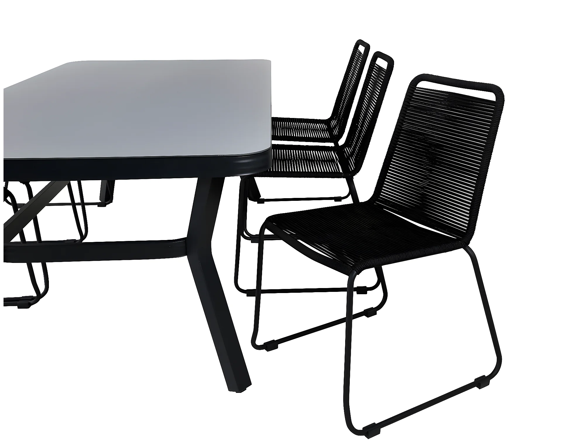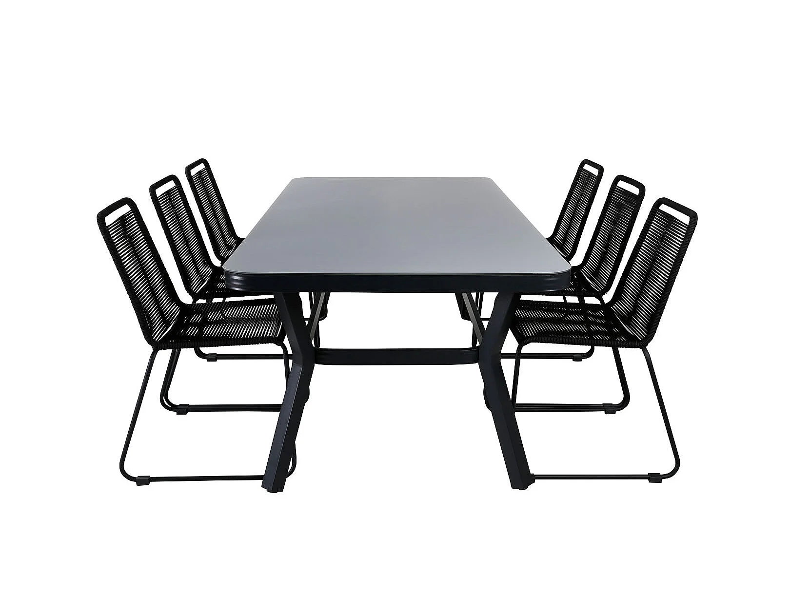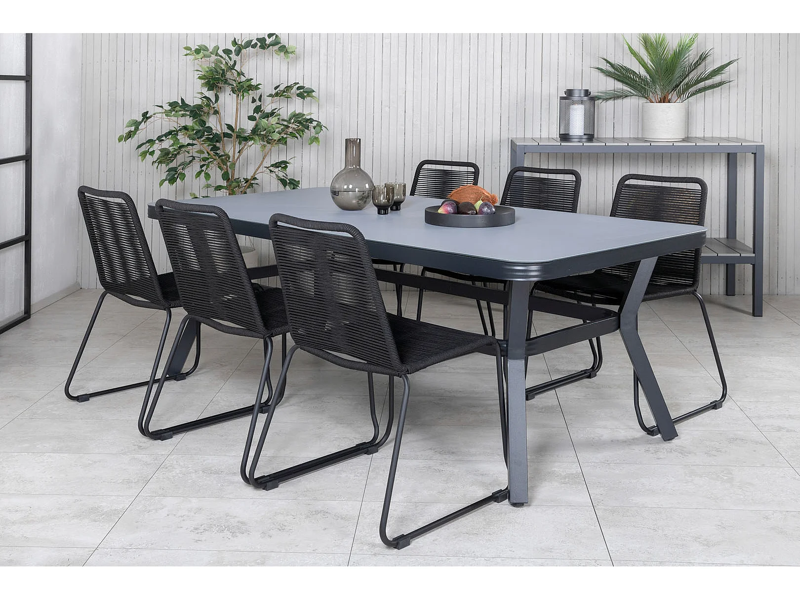 Virya Gartenset Tisch 100x200cm und 6 Stühle stabel Lindos schwarz, grau.