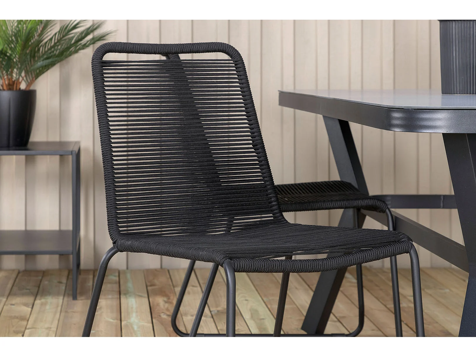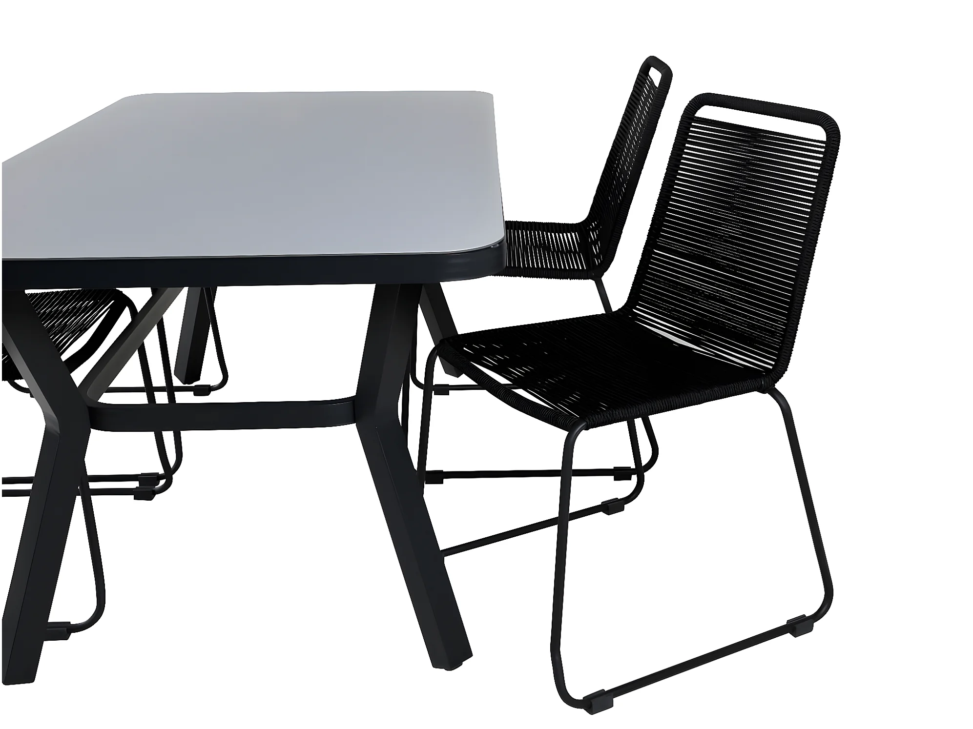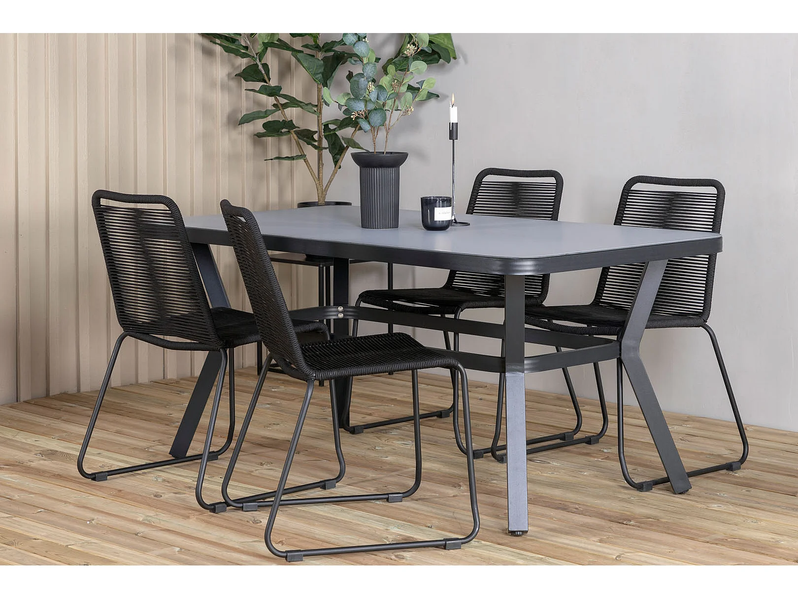 Virya Gartenset Tisch 90x160cm und 4 Stühle stabel Lindos schwarz, grau.