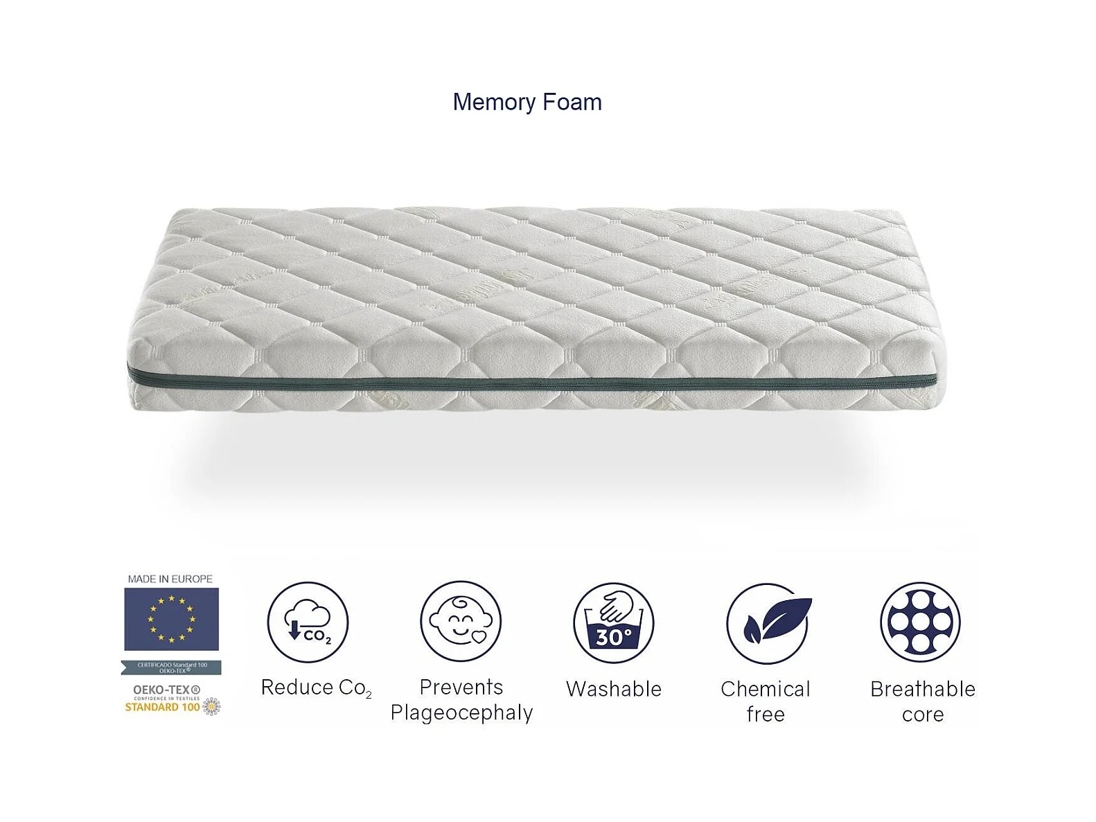 Viskoelastische Babymatratze 67X137 BAMBUS Höhe 12 CM Anpassungsfähig, mit natürlichen Partikeln und atmungsaktiv