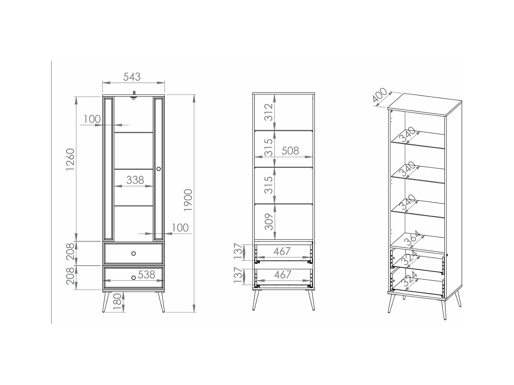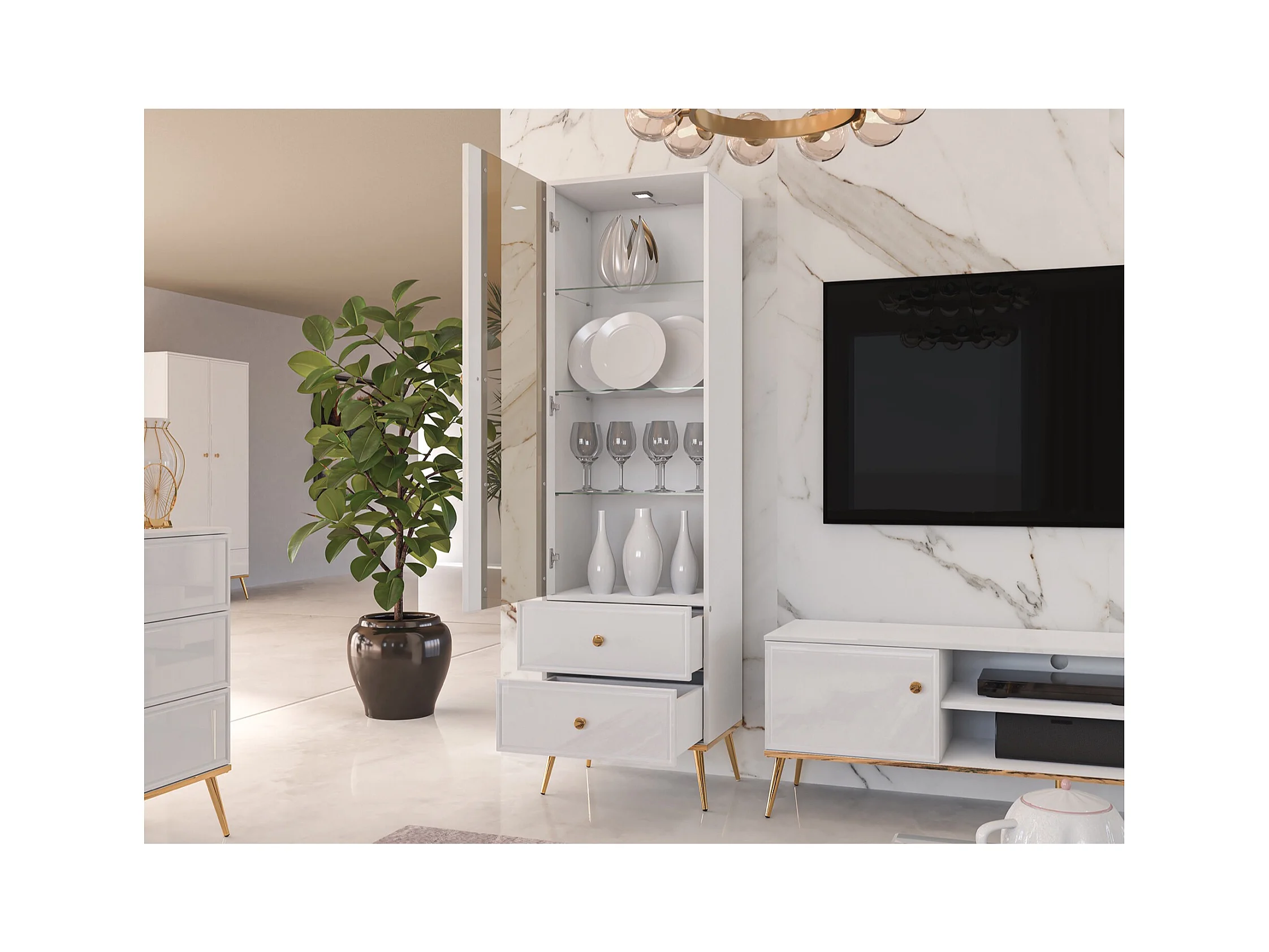 Vitrine - 1-türig - Weiß - DARRBY