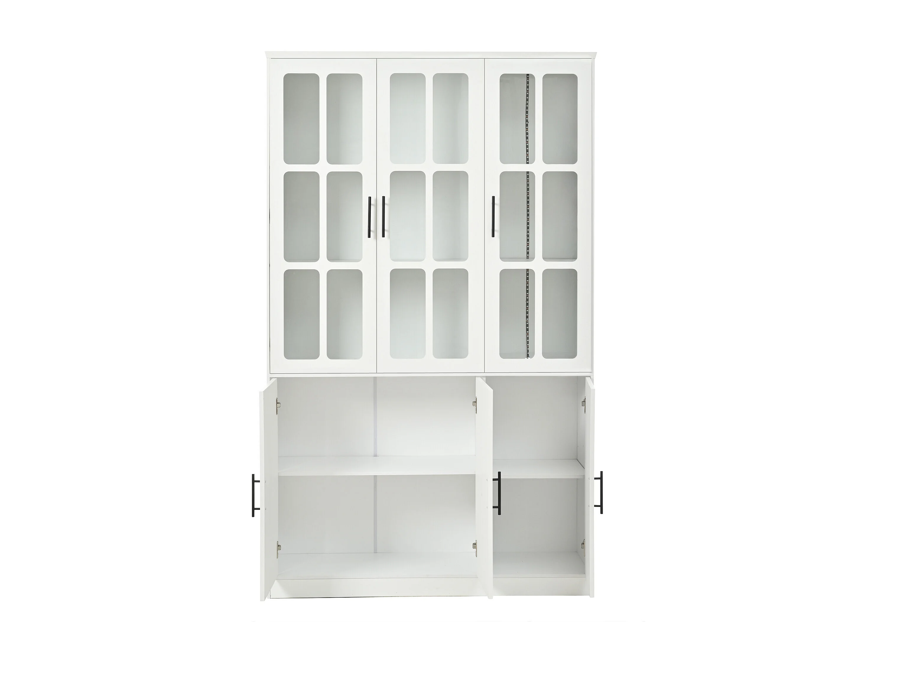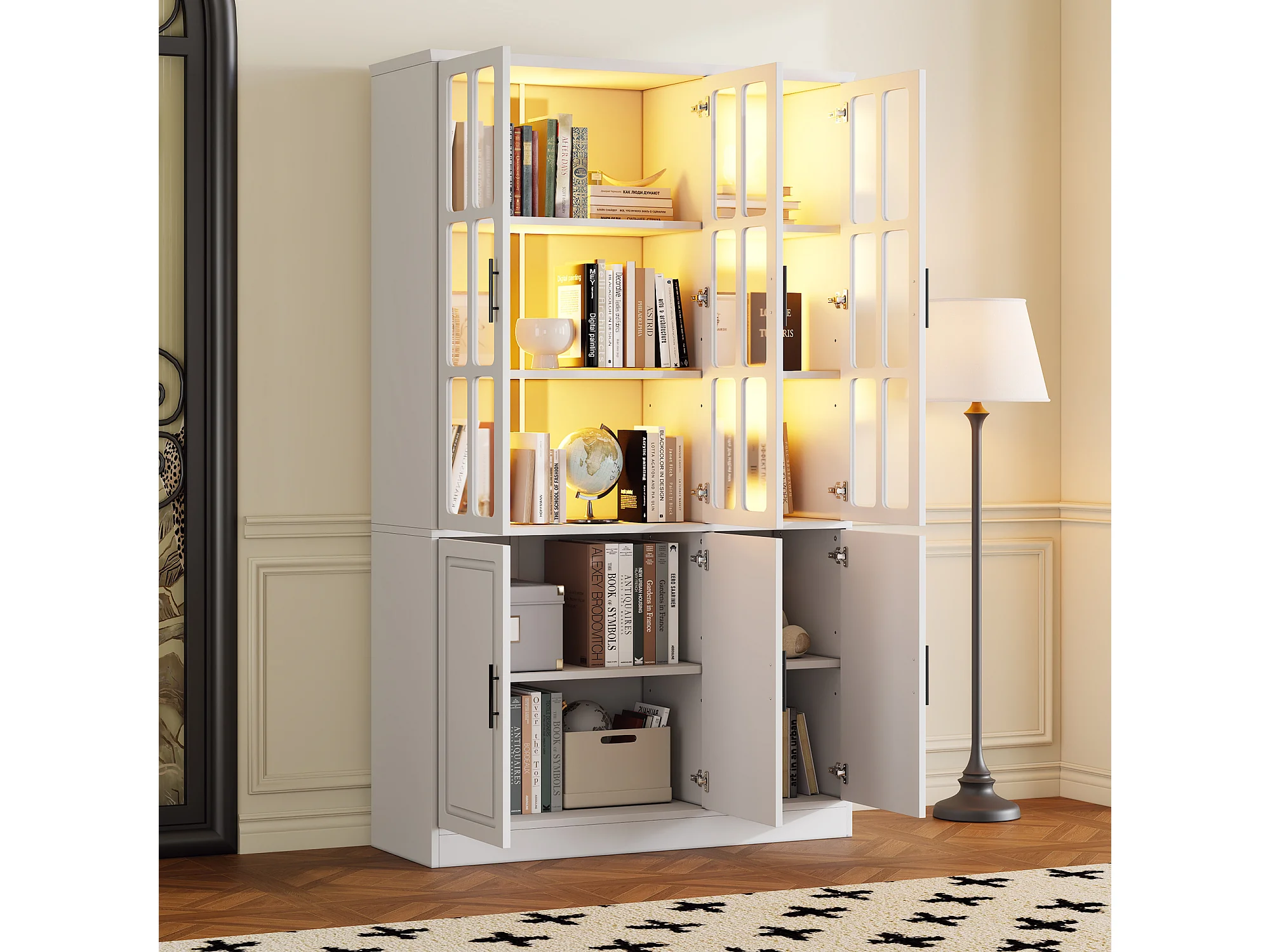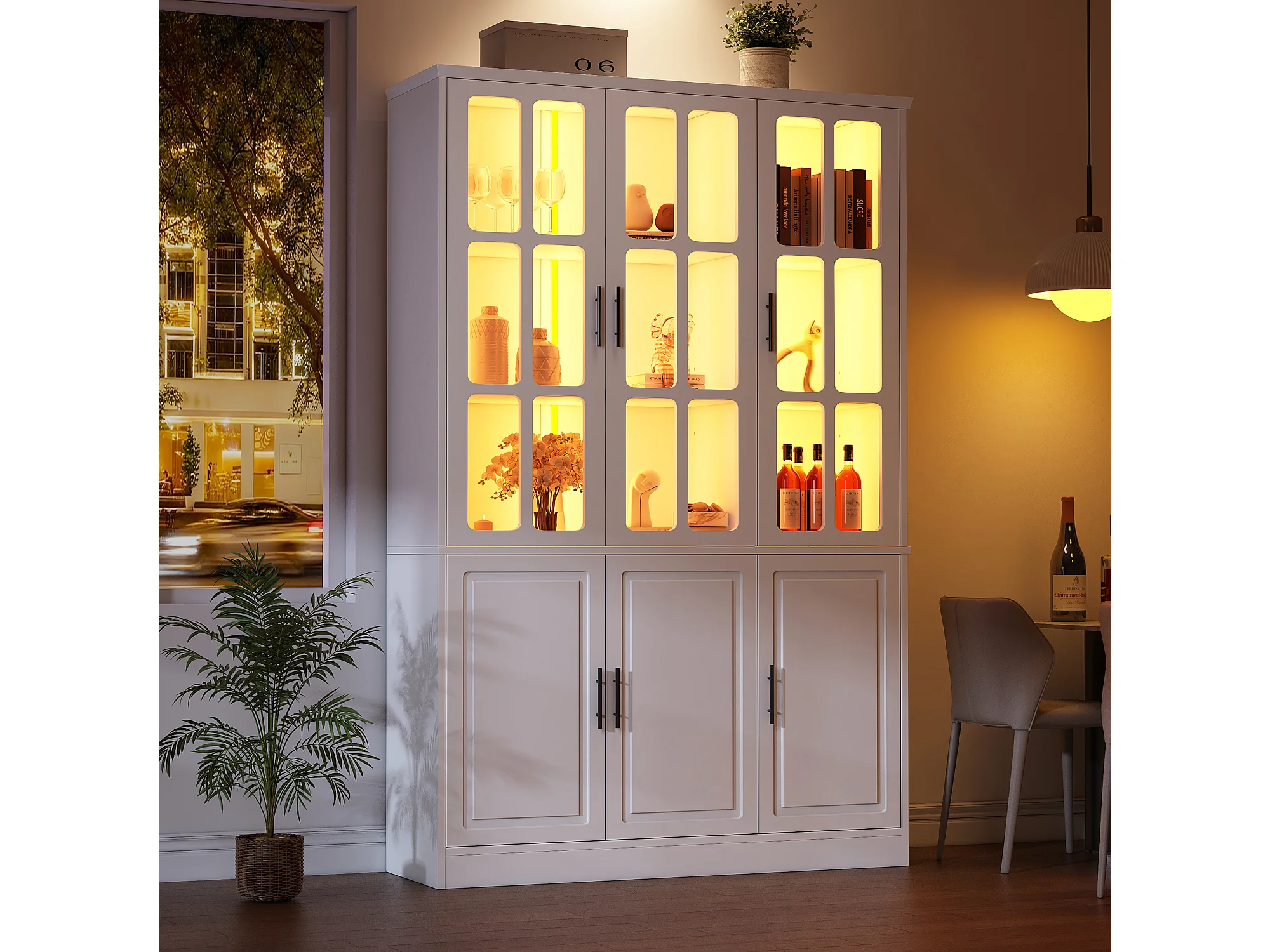 Vitrine 121,5x41x200 cm - mit LED-Beleuchtung - 6 Türen - höhenverstellbare Regale - MDF - weiß