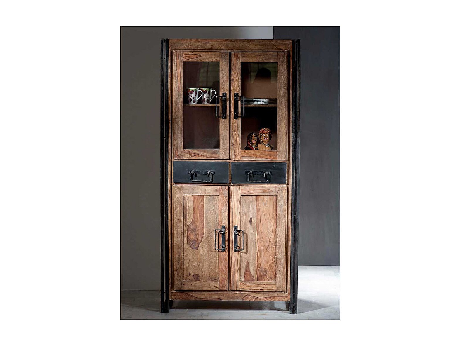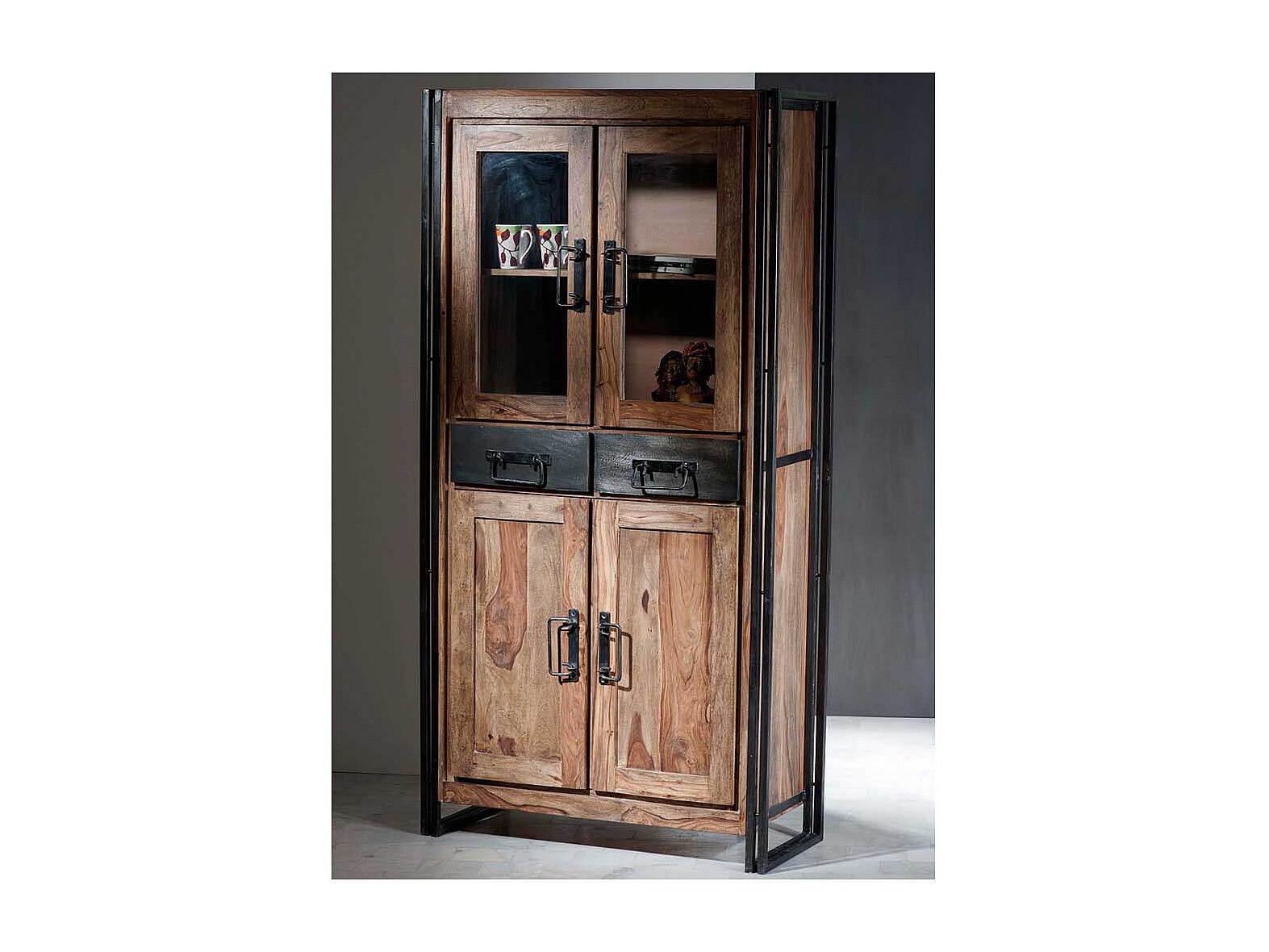 Vitrine aus Akazie Massivholz Used Look