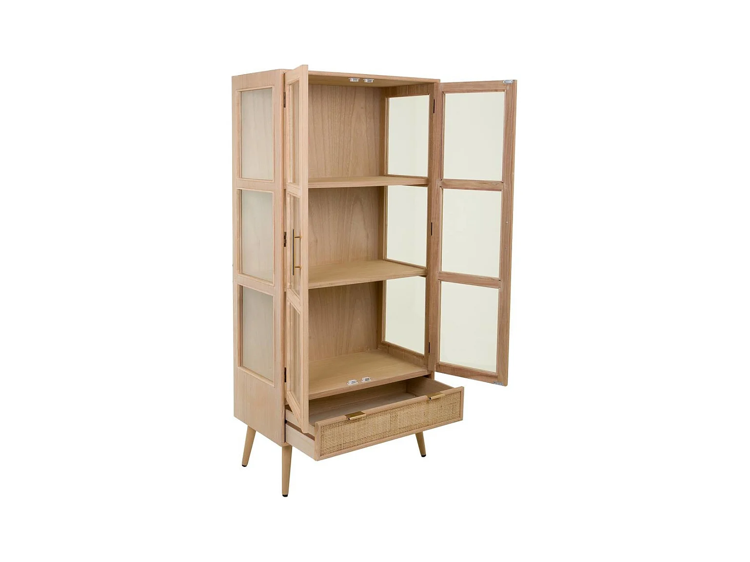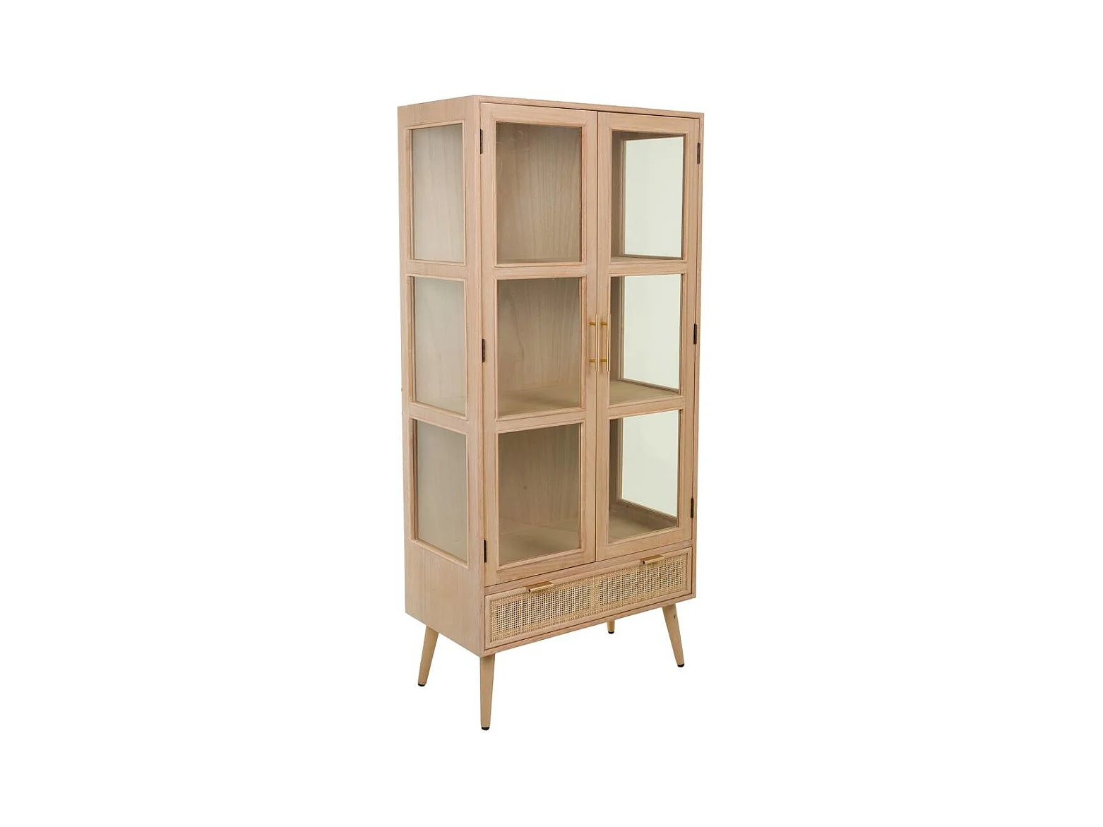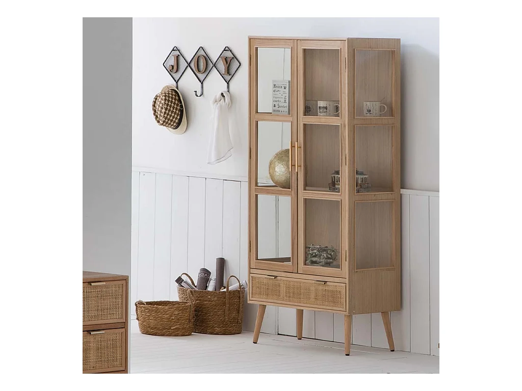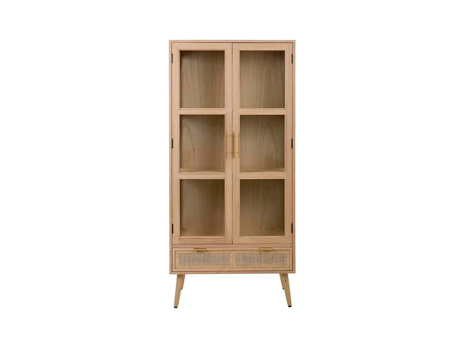 Vitrine aus Holz und braunem Netzgewebe, 72 x 40,5 x 158,5 h cm