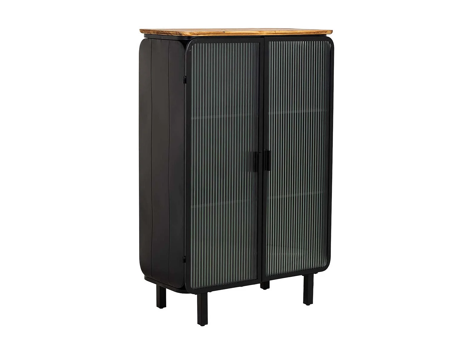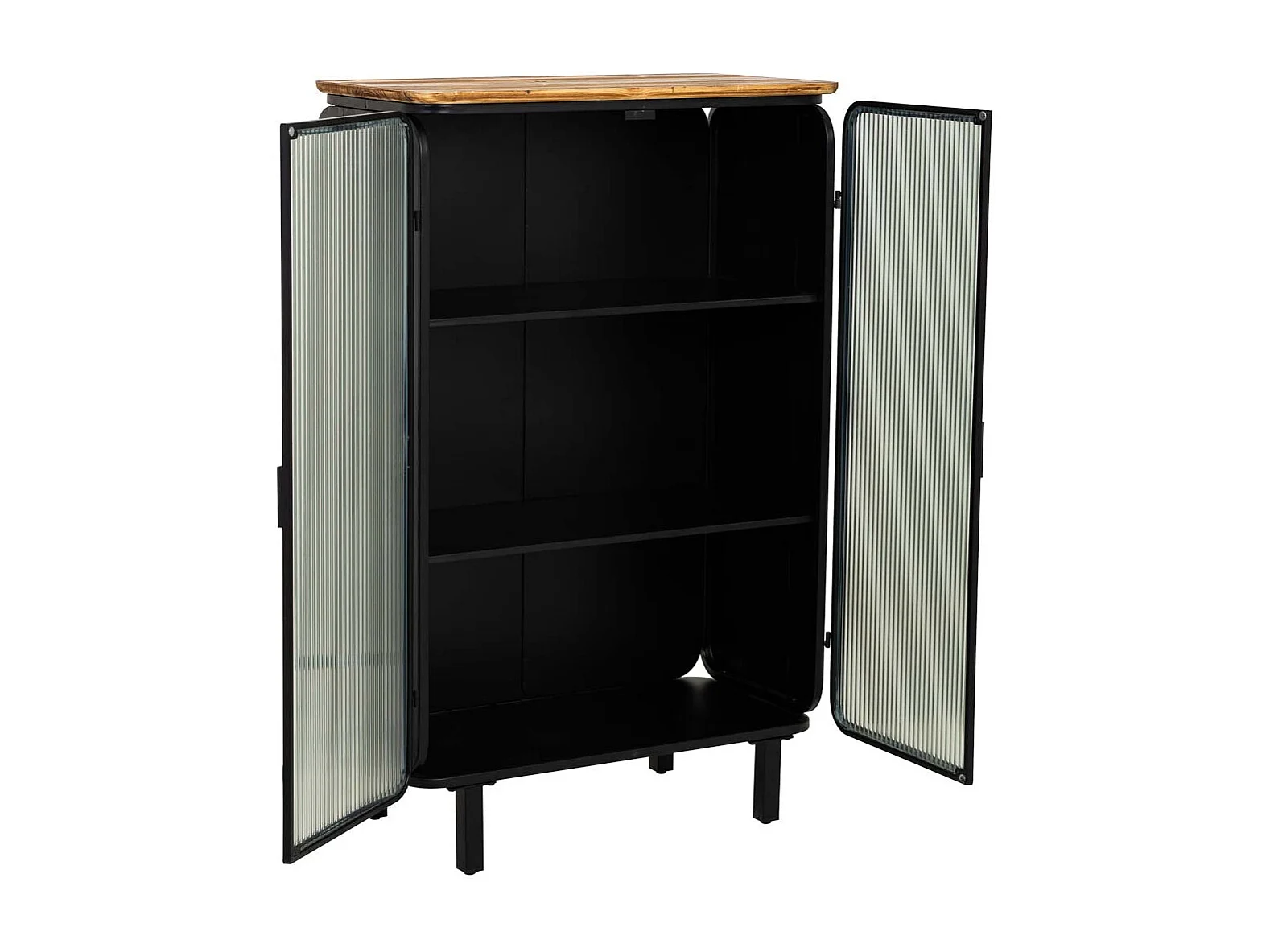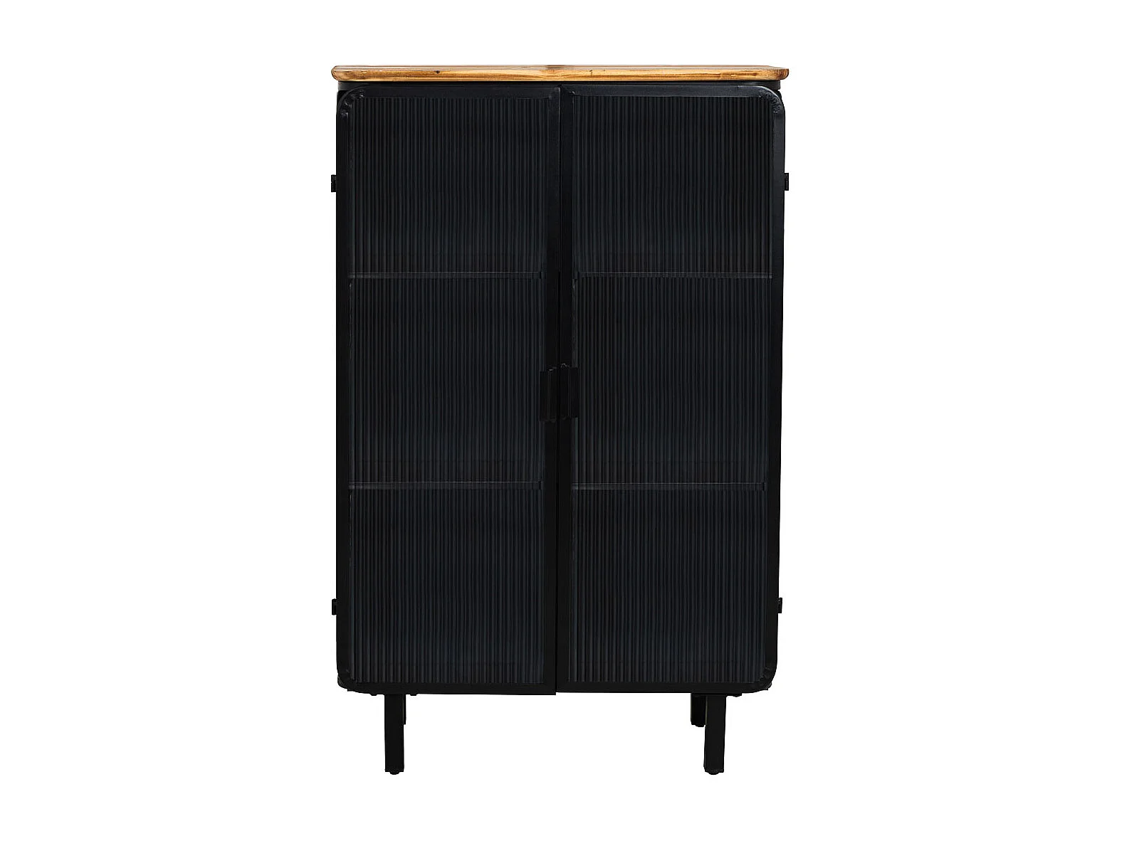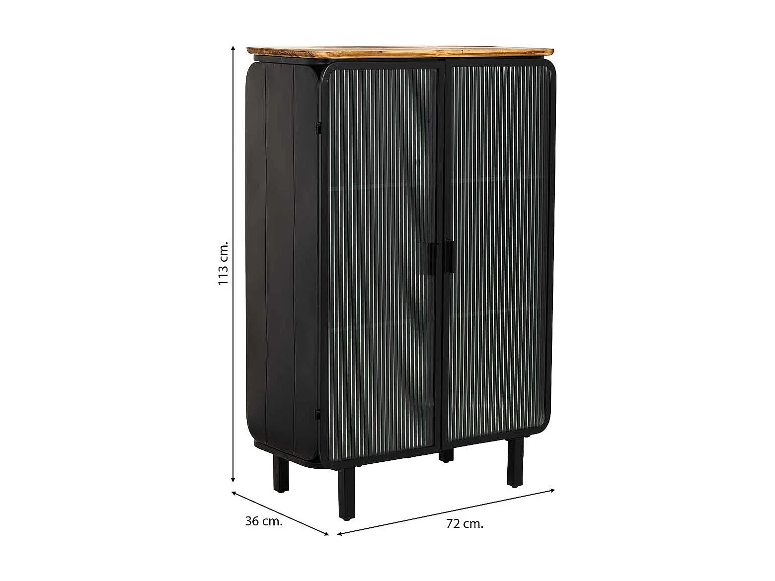Vitrine aus Metall, Holz und Glas mit 2 Türen 72x36x113h cm - Schwarz