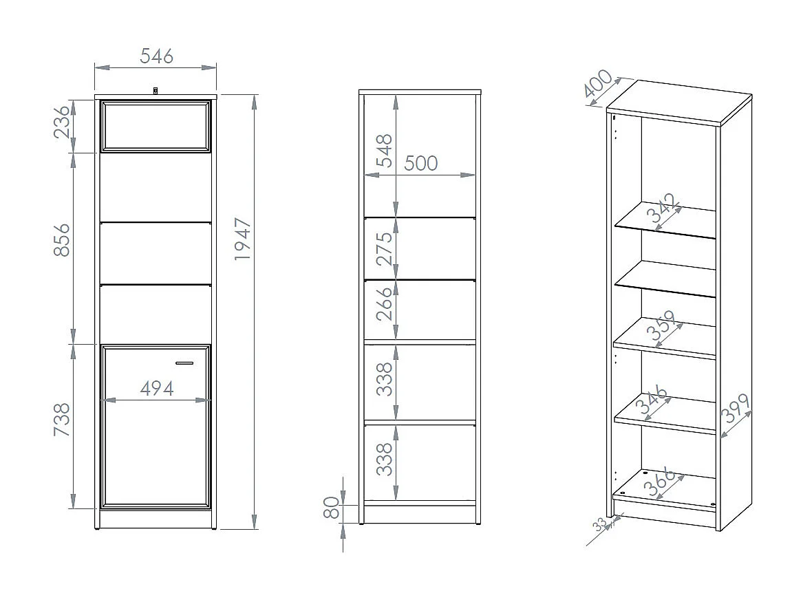 VITRINE Avante Windmill Eiche dunkel / Cashmere Hochglanz 55 / 40 / 195cm