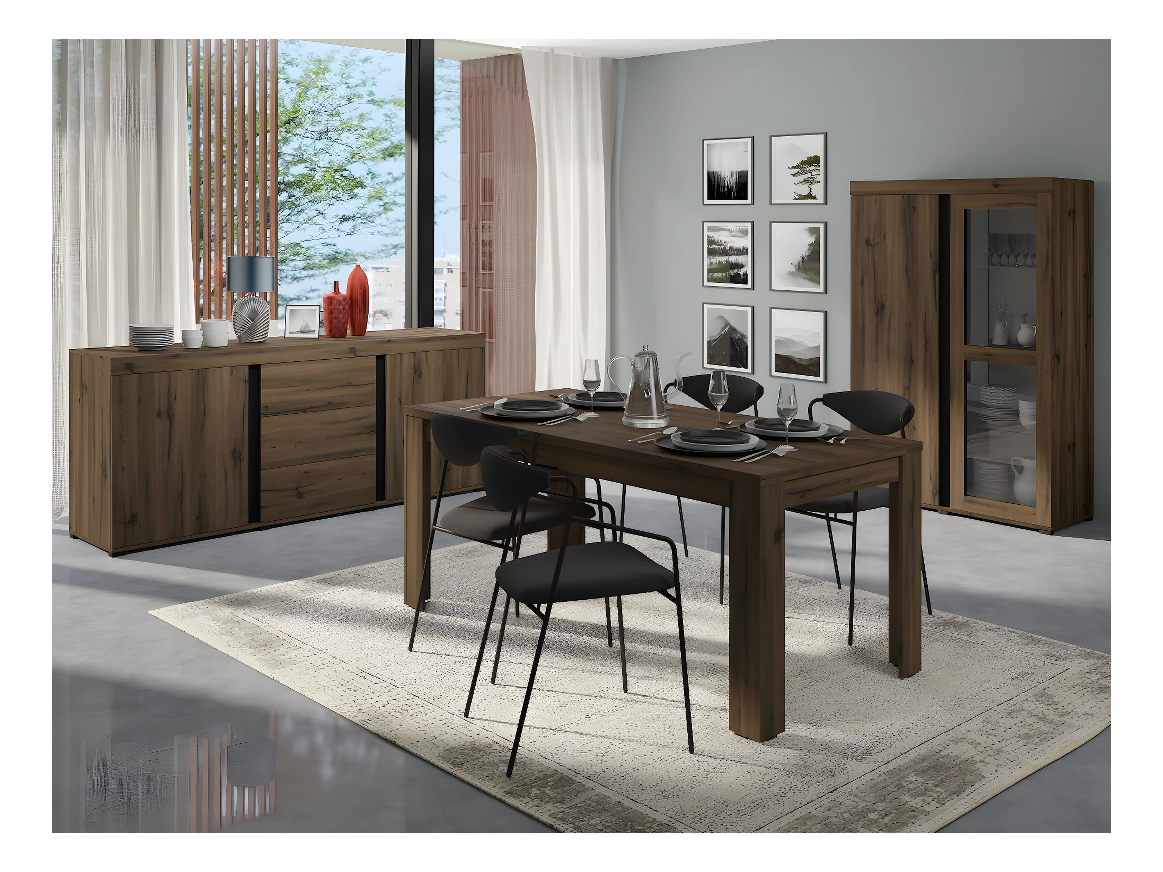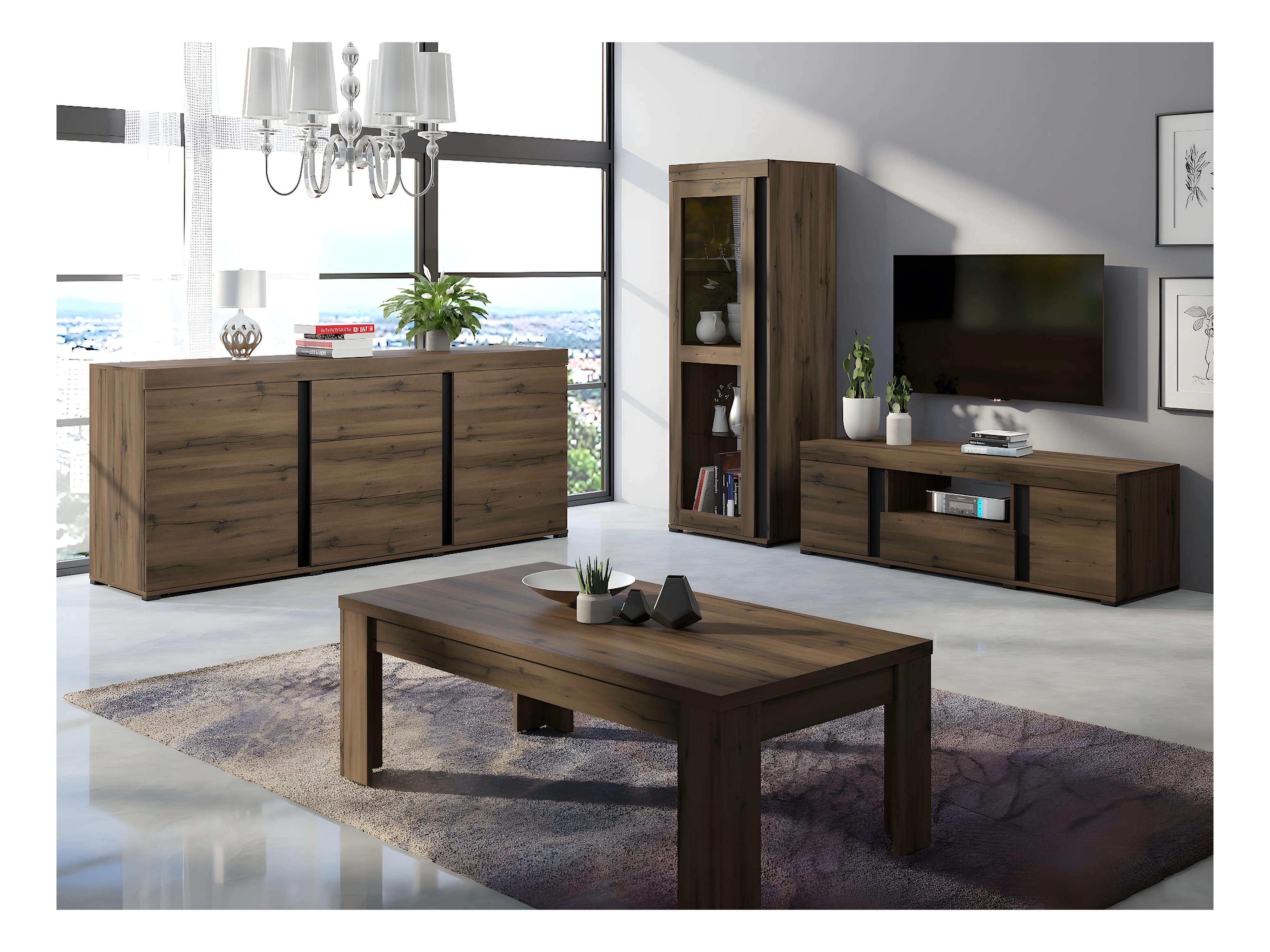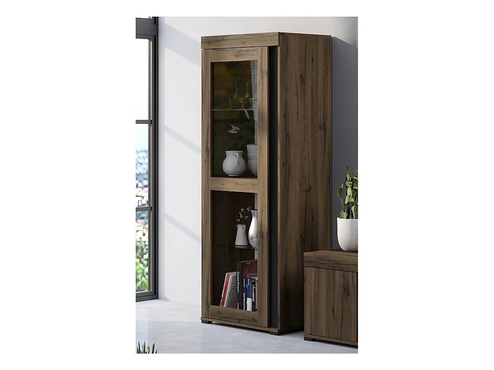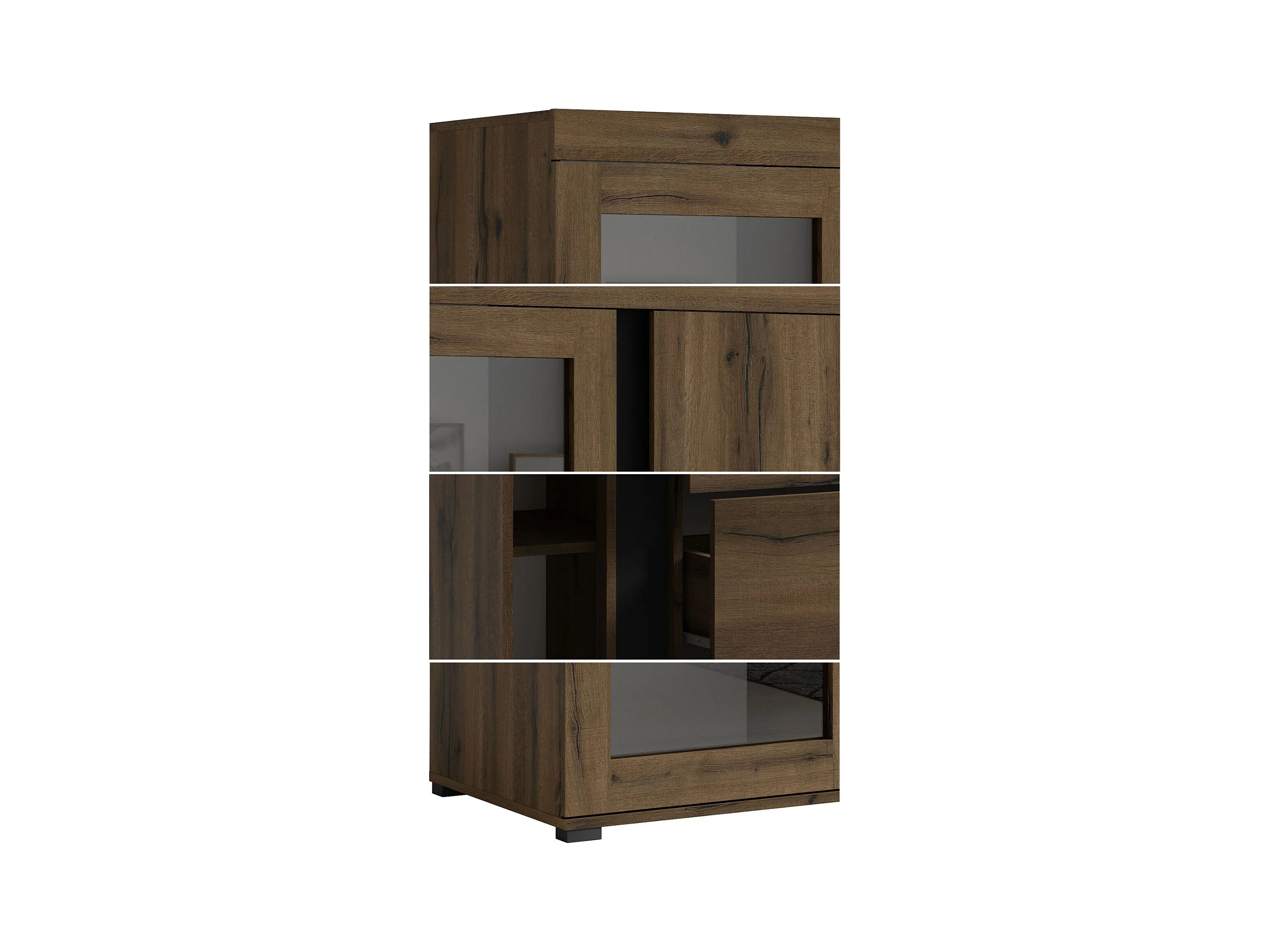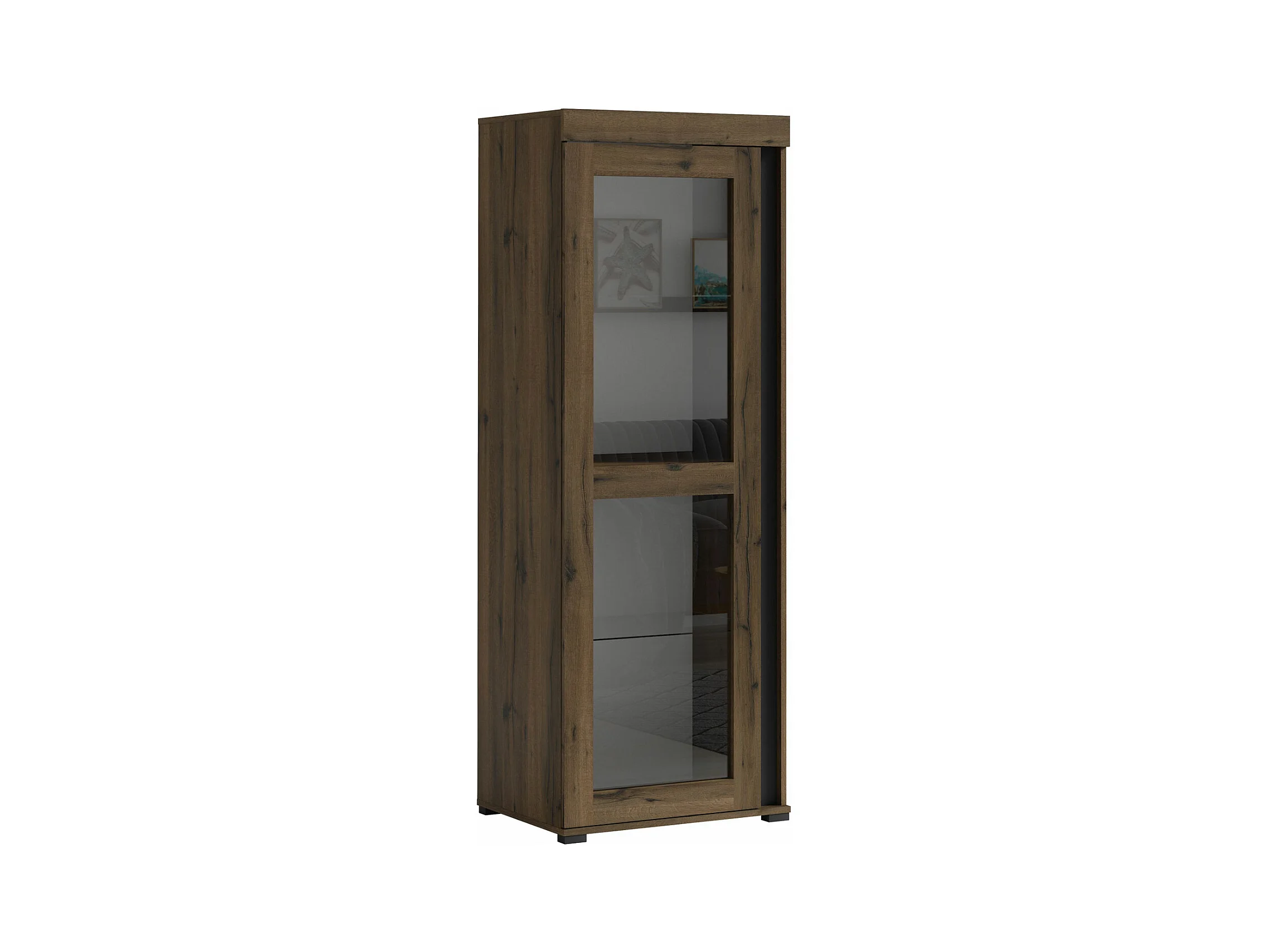 VITRINE Avignon Edeleiche / Absetzungen schwarz, Rückwand weiß 65,5 / 50 / 181,5cm