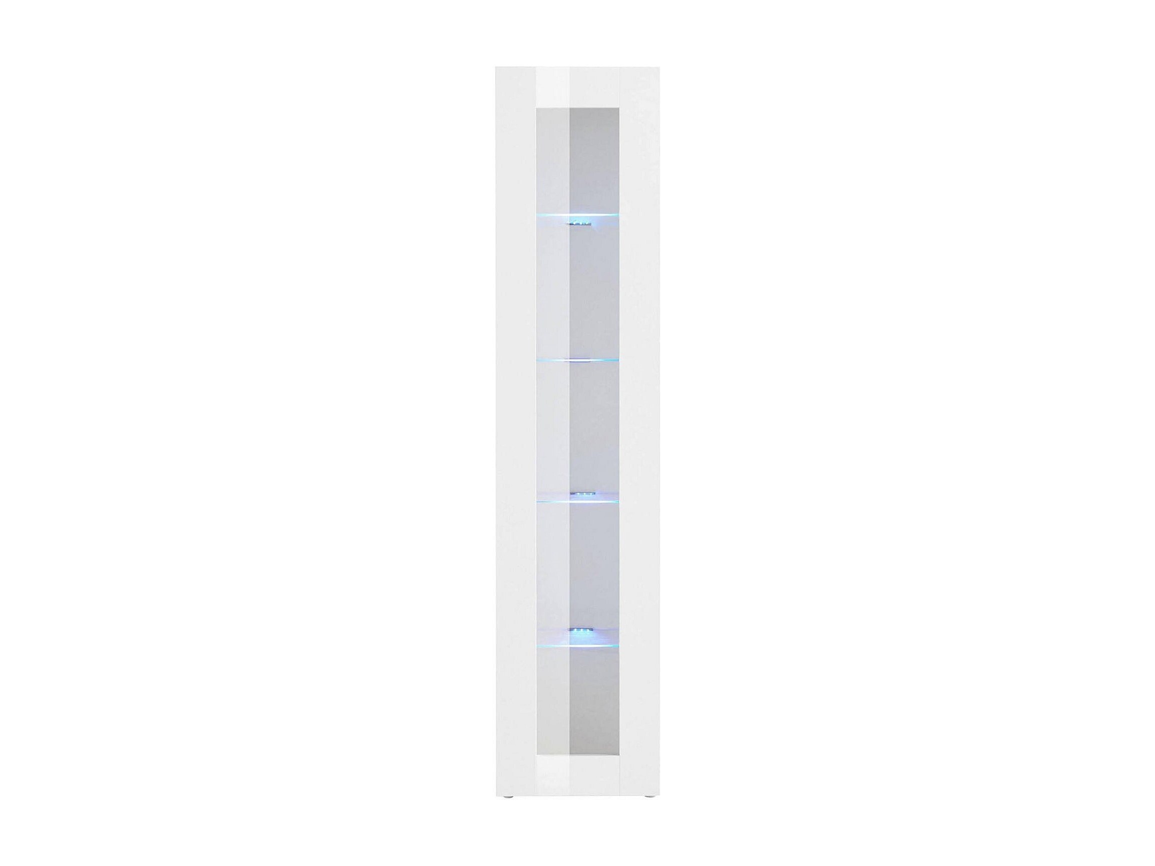 Vitrine Dcomi, Sideboard mit Glasregalen, Mehrzweck-Wohnzimmermöbel mit LED-Beleuchtung, 100 % Made in Italy, cm 40x30h180, glänzend weiß