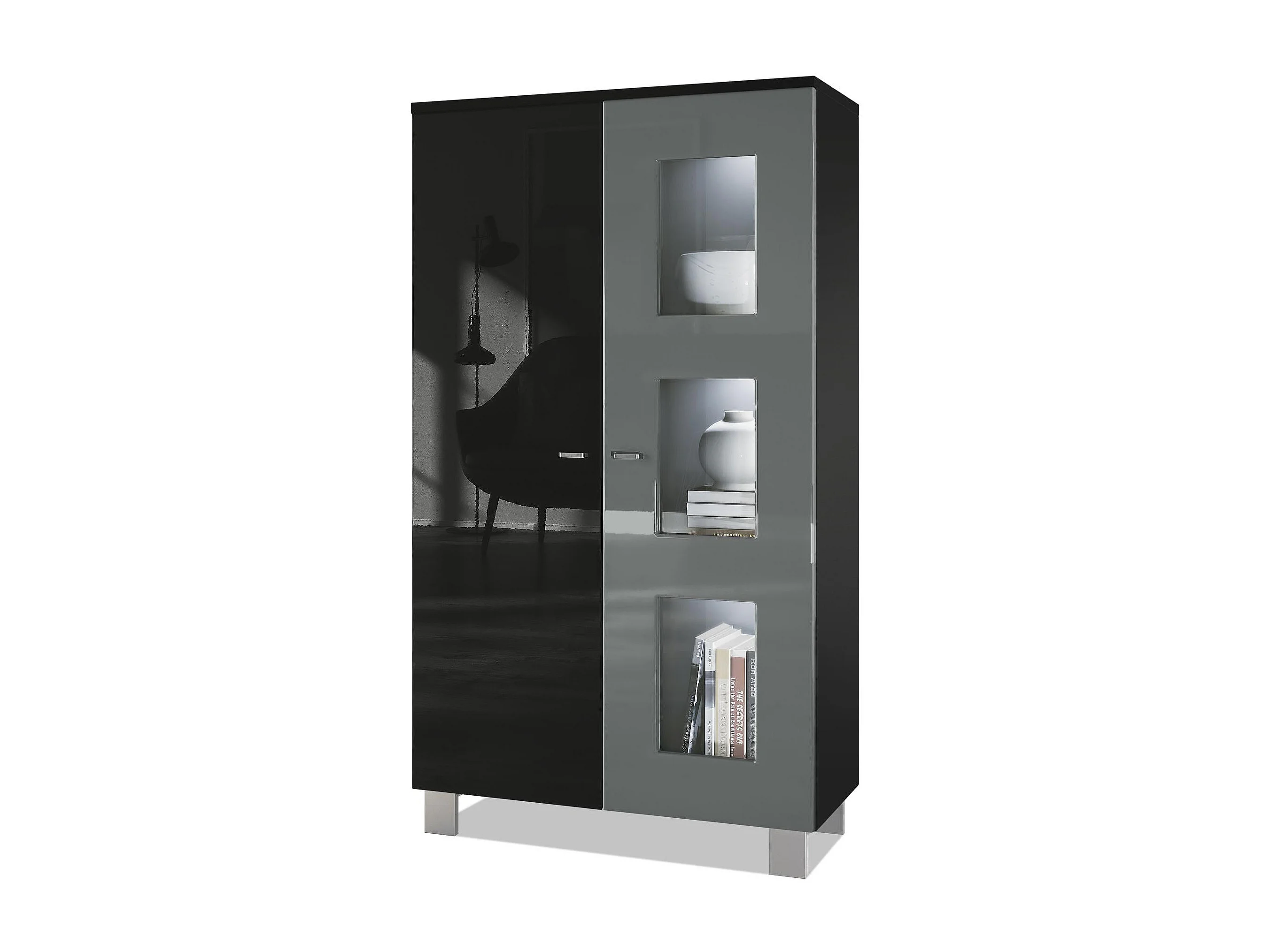 VITRINE Denjo Tür in Grau Hochglanz