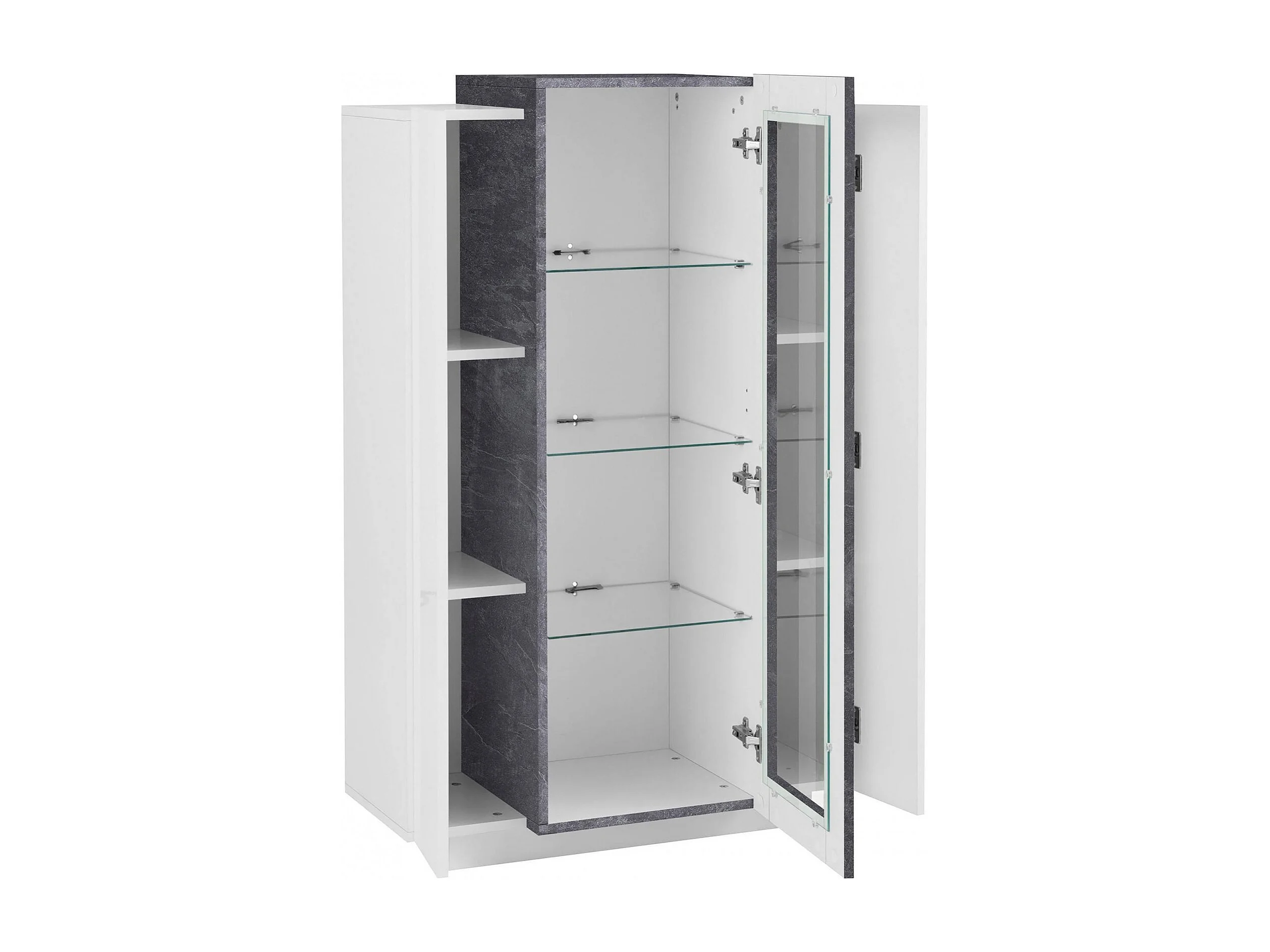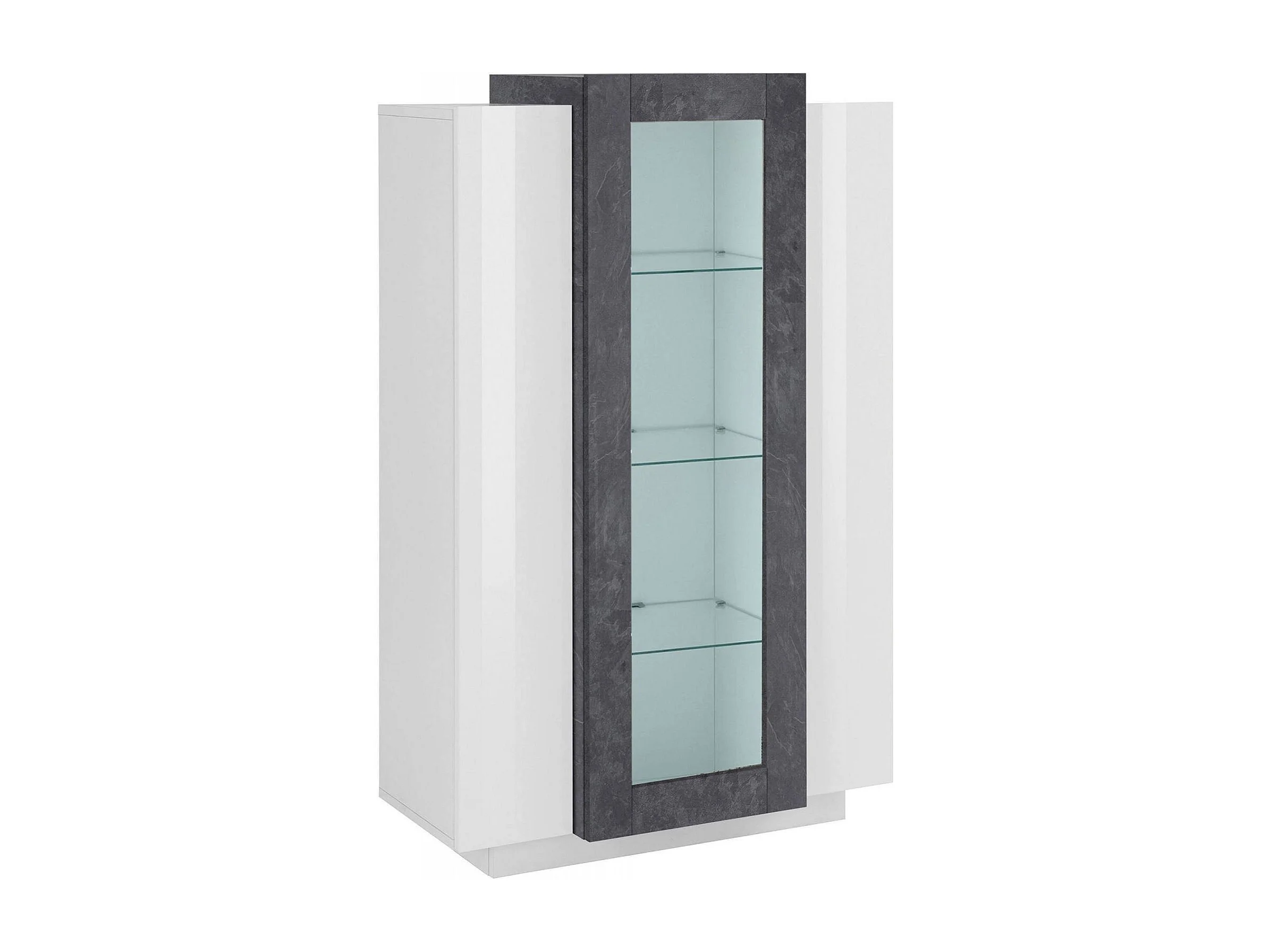 Vitrine Dfrutt, Sideboard mit drei Türen, Mehrzweck-Wohnzimmermöbel, 100% Made in Italy, cm 80x38h121, glänzend weiß und Schiefer
