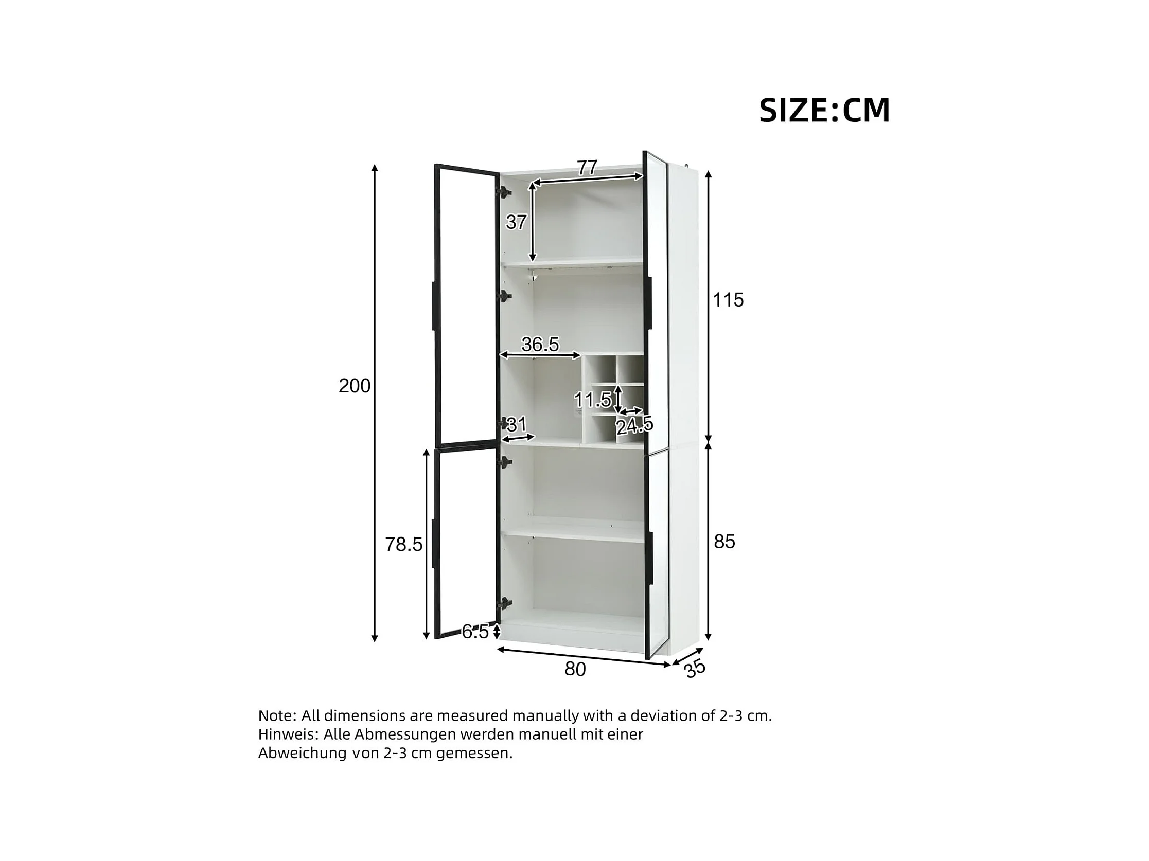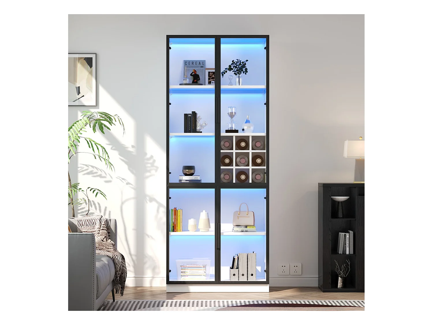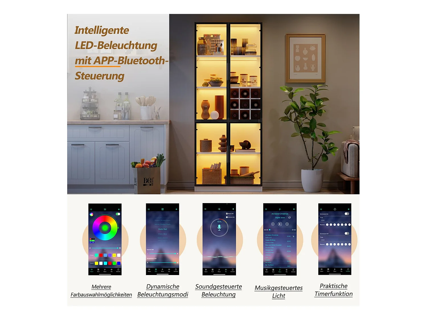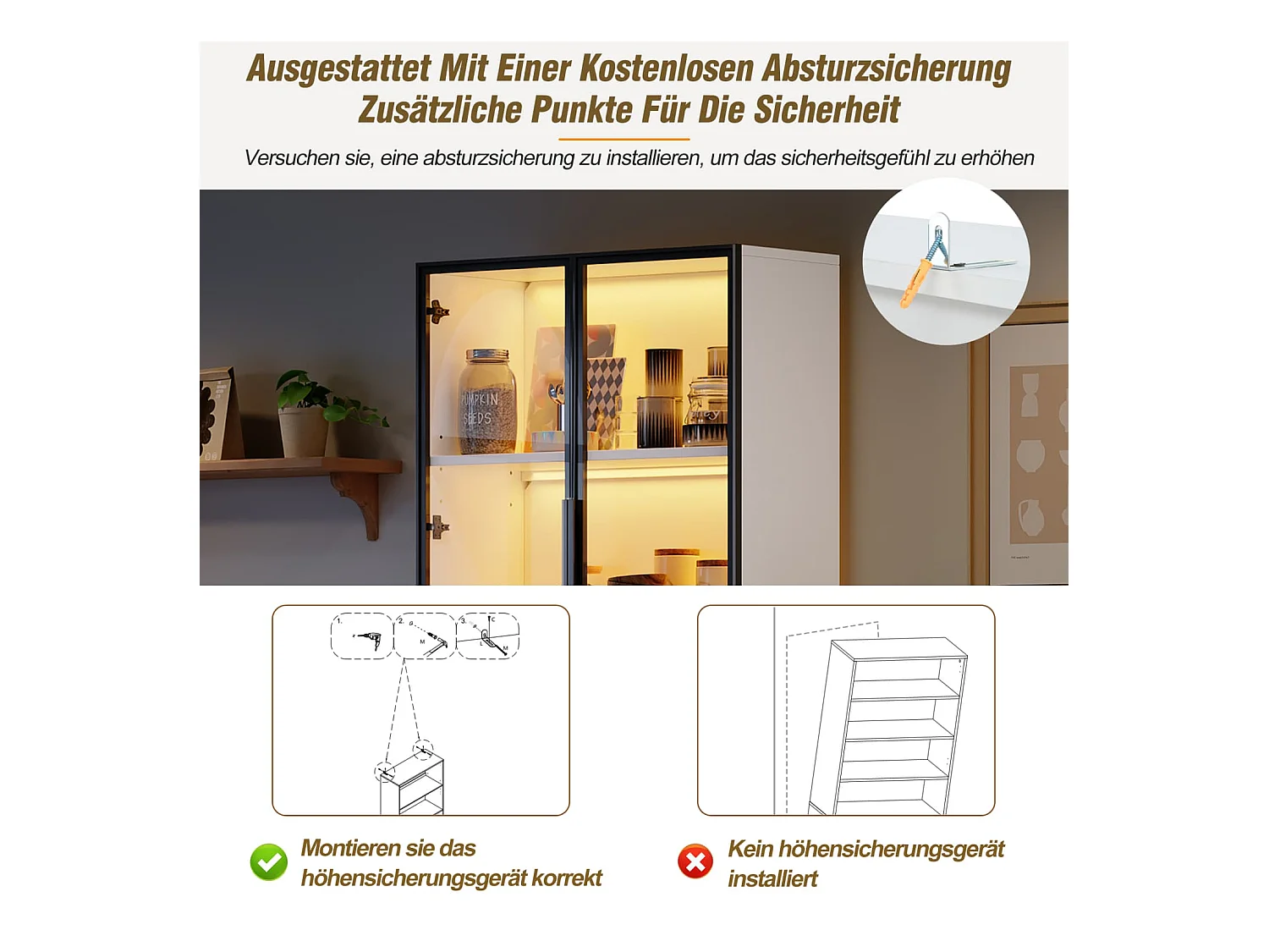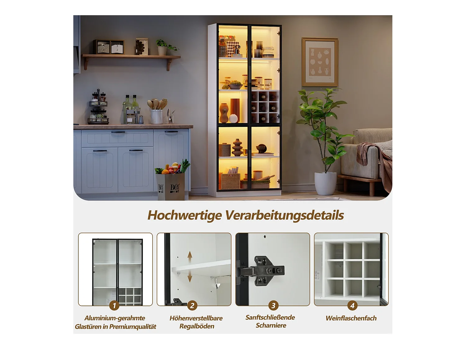 Vitrine, Glasvitrine mit Glastüren mit LED,Hochschrank ,Bücherschrank,Standvitrine,Weinschrank Eleganter Sideboard mit Doppeltüren, Glasregal
