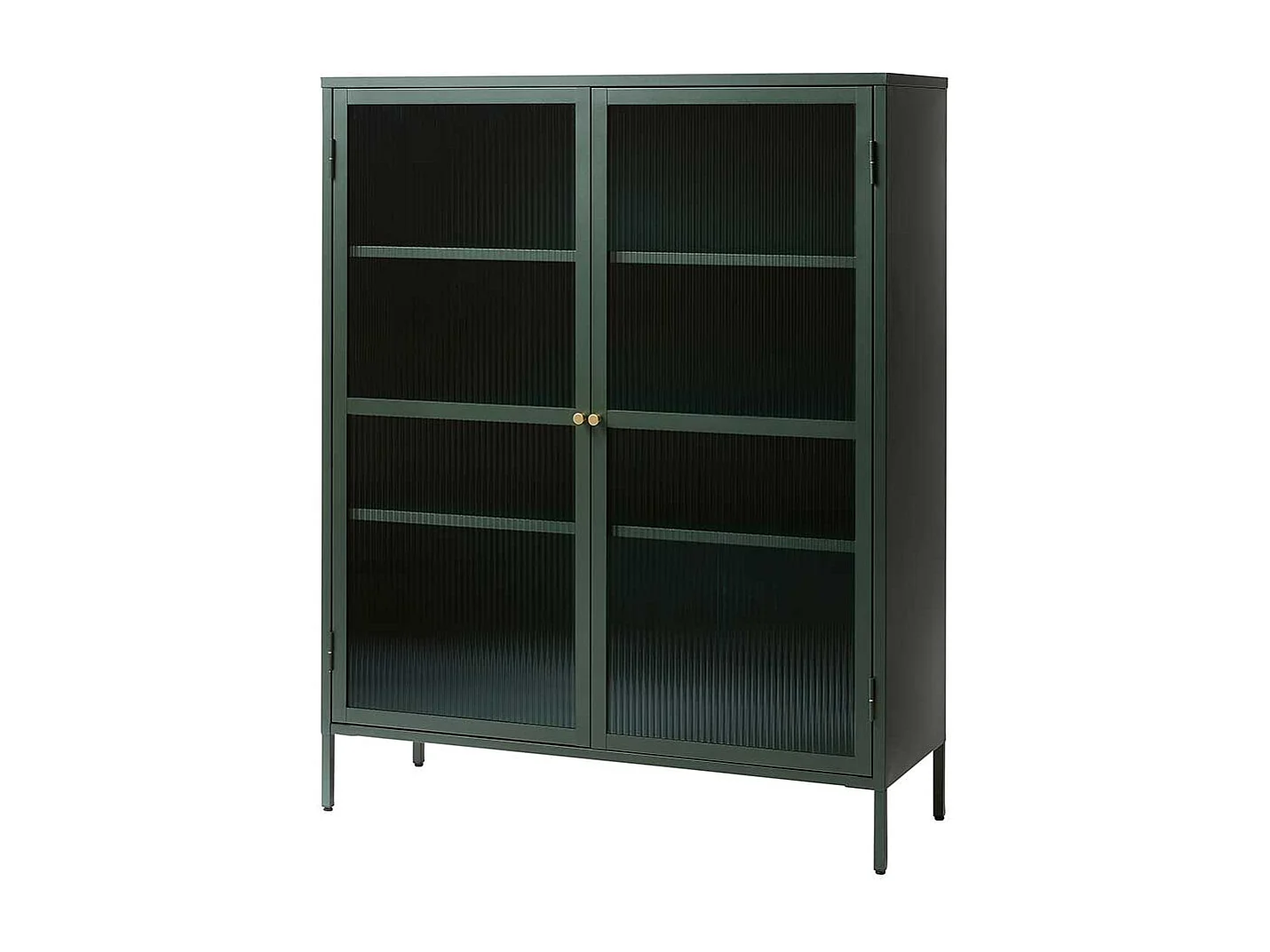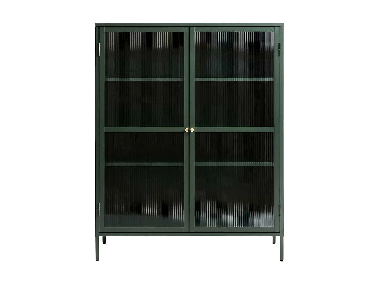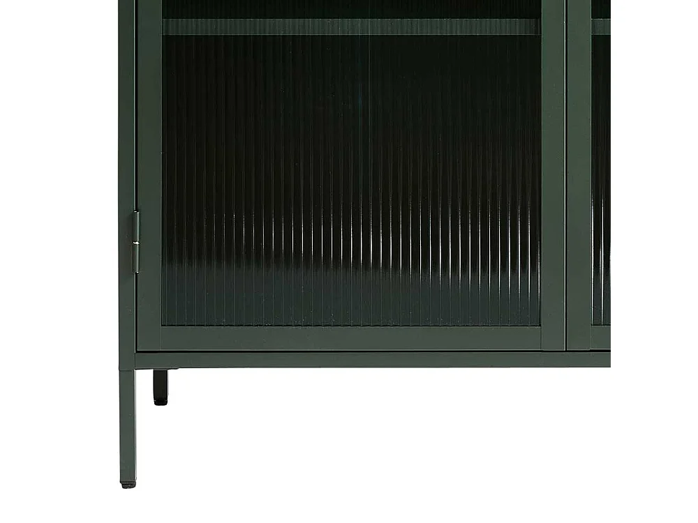 Vitrine Grün mit Rippenglas Türen Metall Oberfläche pulverbeschichtet