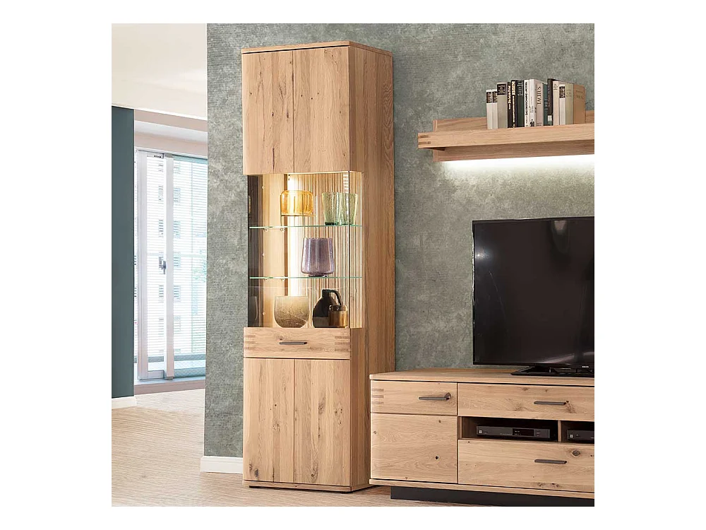 Vitrine in Balkeneiche Bianco furniert 60 cm breit